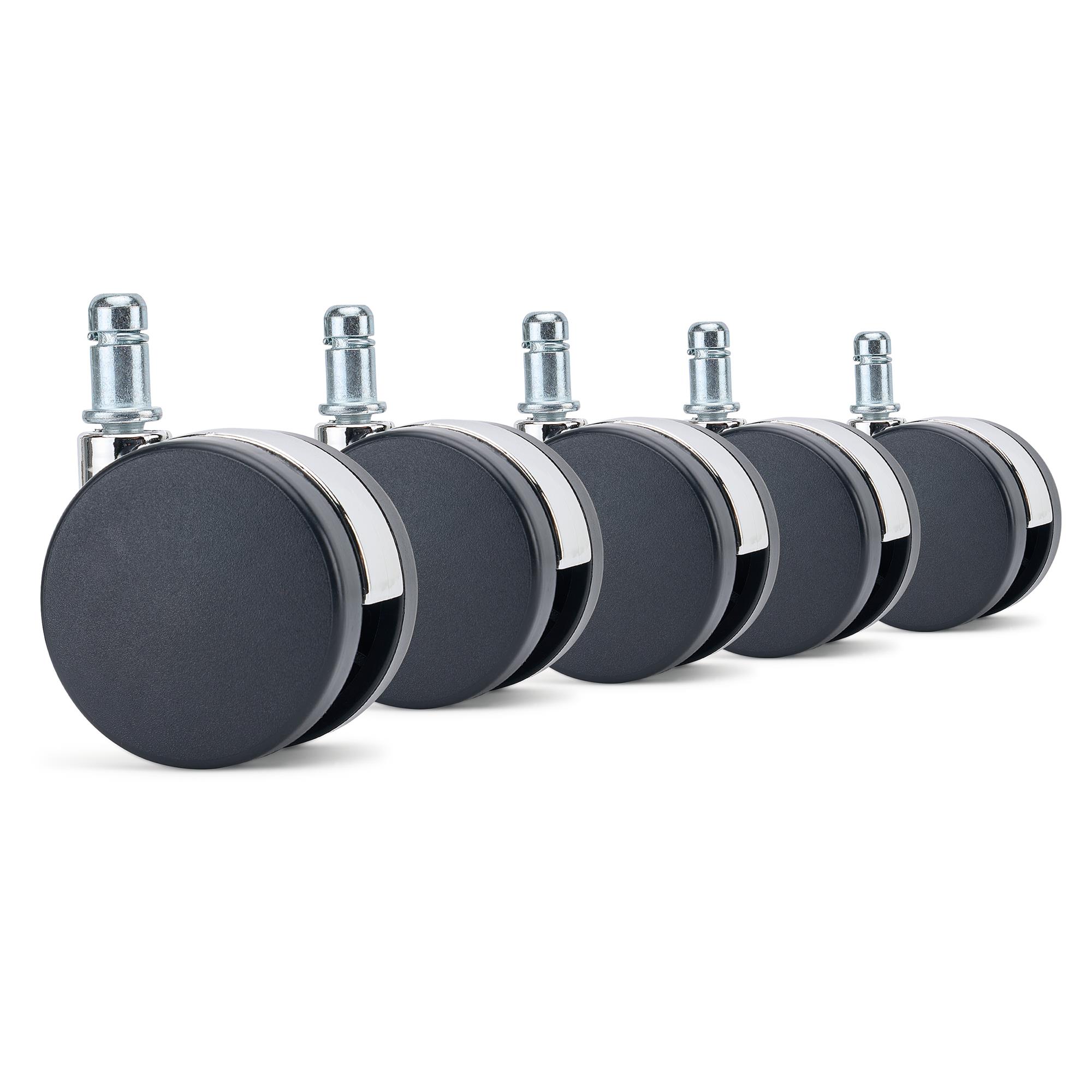 Lote de 5 ruedas para sillas de oficina modelo LYRA, diseño minimalista, sencillas y funcionales. Aptas para todo tipo de suelos gracias a su recubrimiento de goma.
