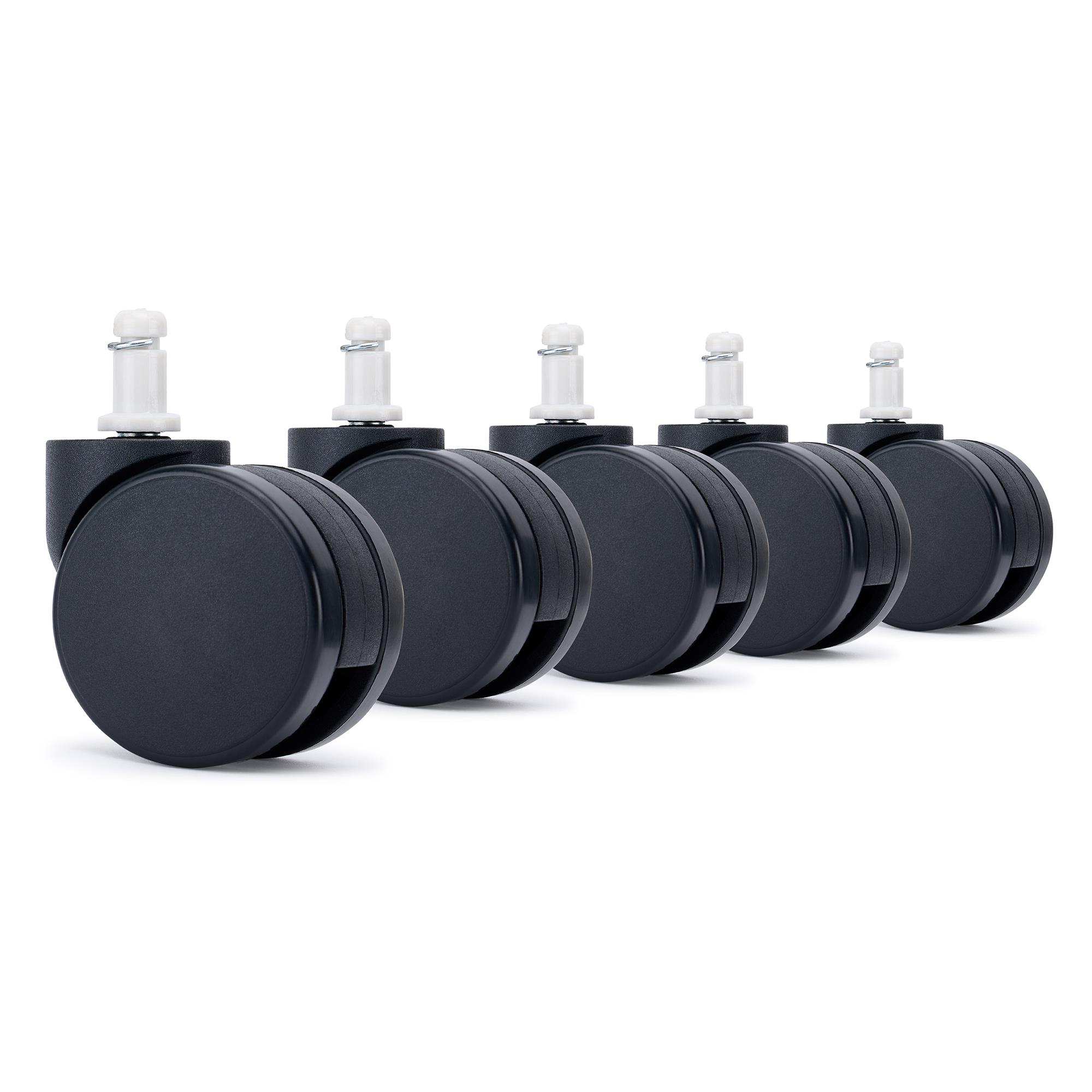 5x Ruedas para Sillas de Oficina SILENT, Pin de Nylon, en Color Negro