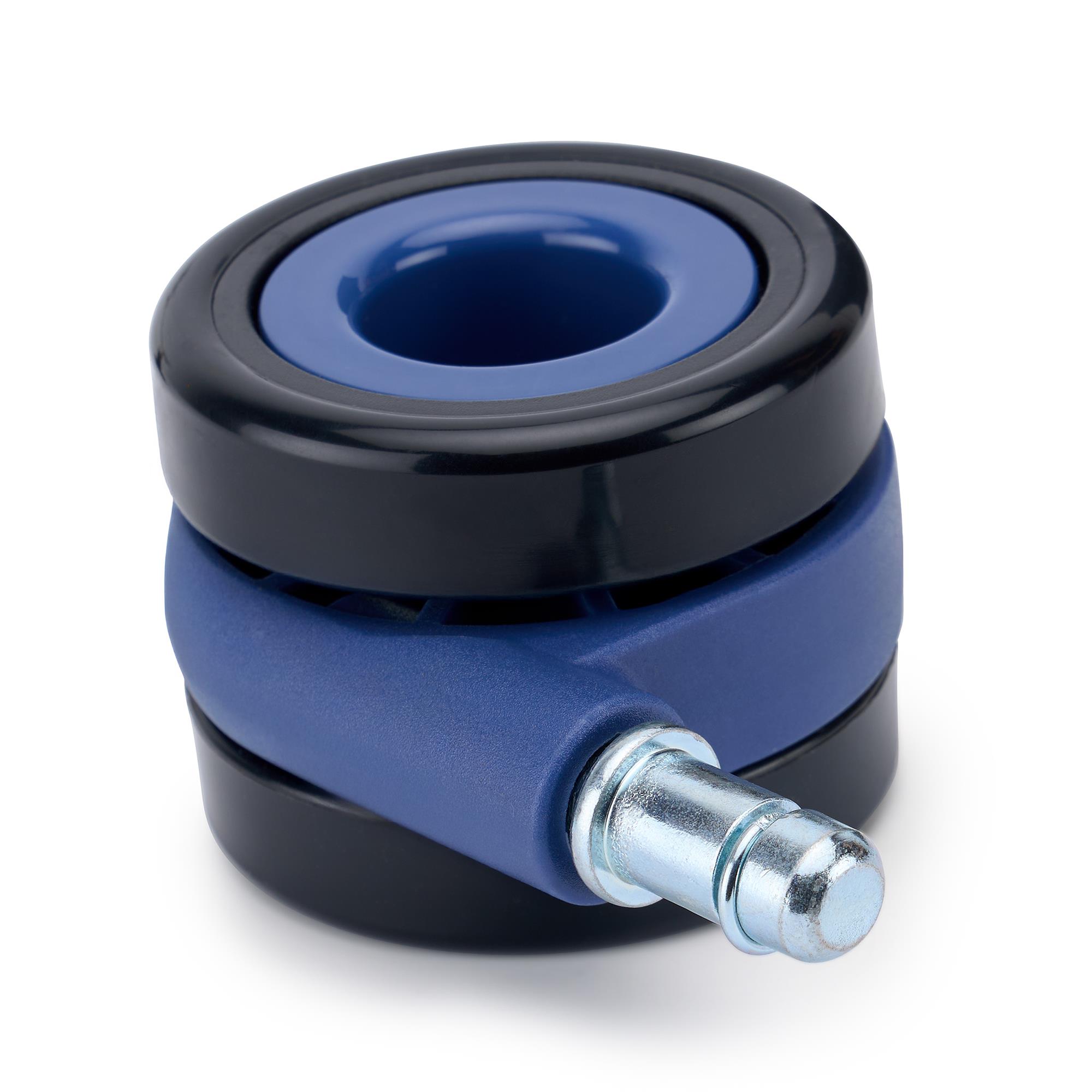El eje central de inserción está fabricado en acero, garantizando una fijación segura y una vida útil prolongada incluso bajo uso intensivo diario. Su instalación es realmente sencilla, sin herramientas. El vástago de inserción a presión es compatible con la gran mayoría de sillas de oficina. Solo tendrás que encajar este eje metálico y listo, en segundos tienes tu silla lista para rodar.