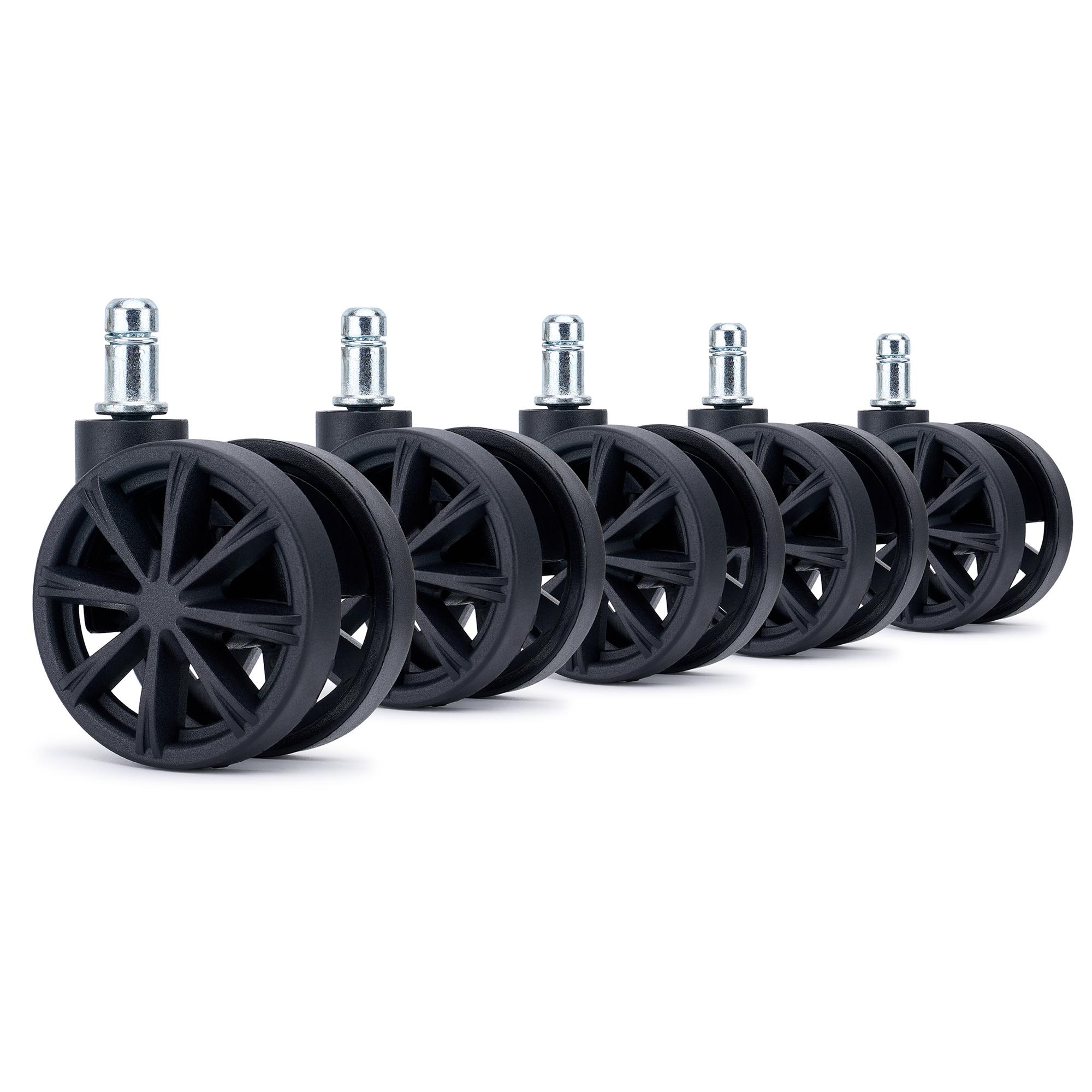 5x Ruedas Sillas Oficina SPOKE, 11x50mm, Estilo Deportivo, Color Negro
