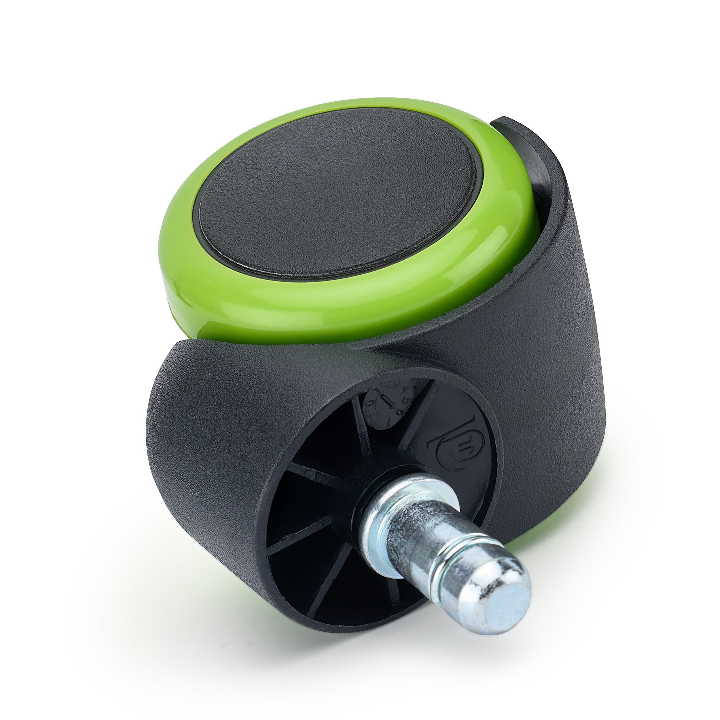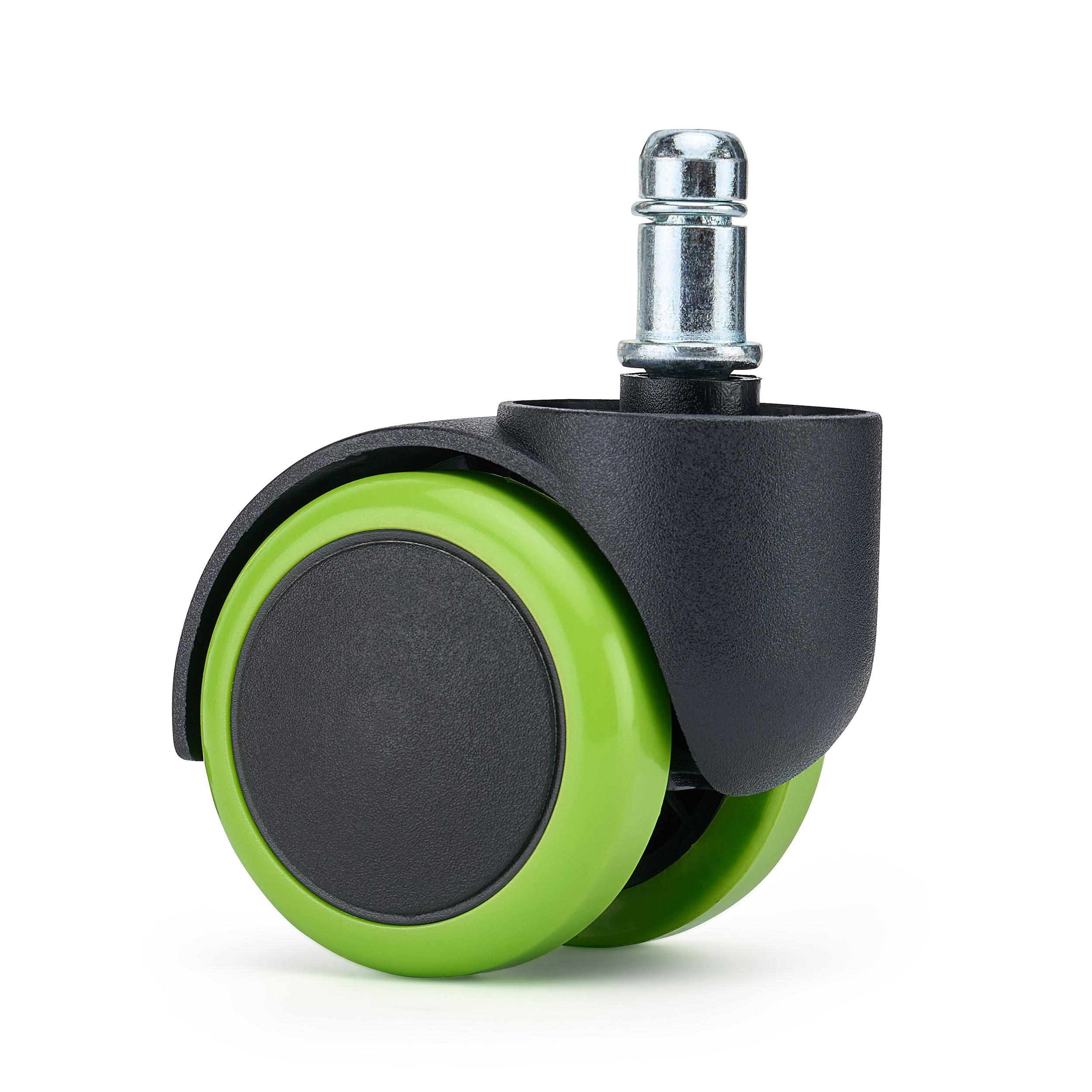 5x Ruedas Sillas Oficina VELO, 11x50 mm, con Recubrimiento de Goma, color Verde