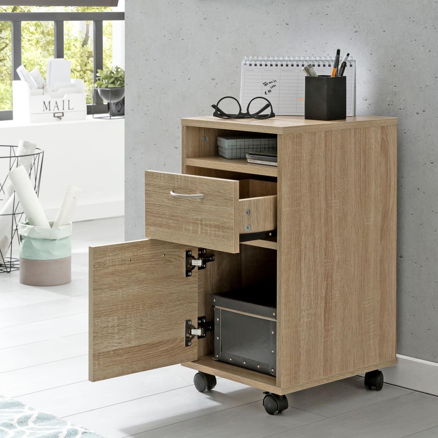 Archivador con Ruedas LEXI, 2 Cajones, 33x38x63 cm, en Madera Color Roble