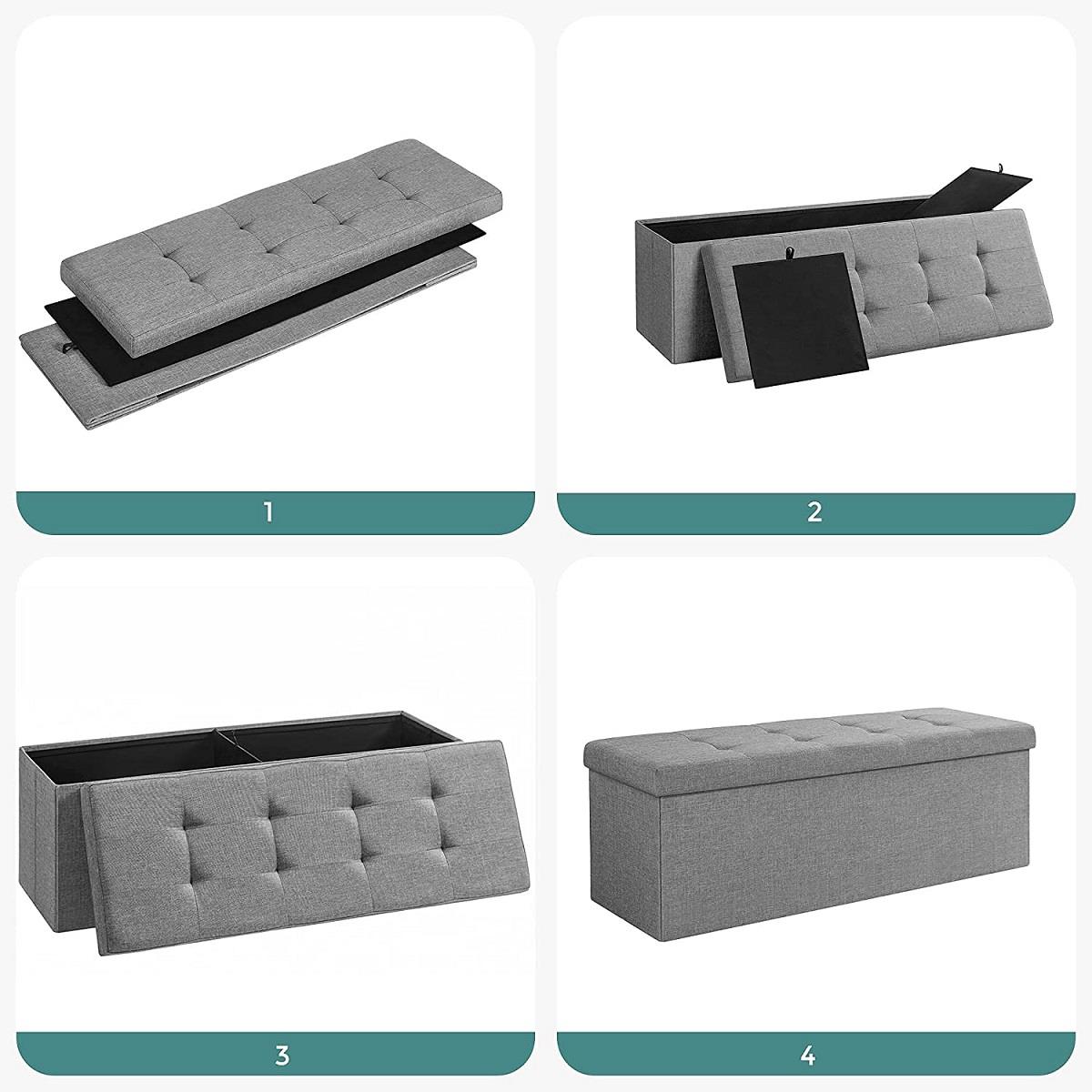 La estructura de este mueble está hecha de madera de MDF y el asiento está acolchado en espuma y tapizado en tela de gran calidad, materiales sólidos y de fácil cuidado. Este práctico mueble ha sido diseñado para durar muchos años y permanecer como el primer día.