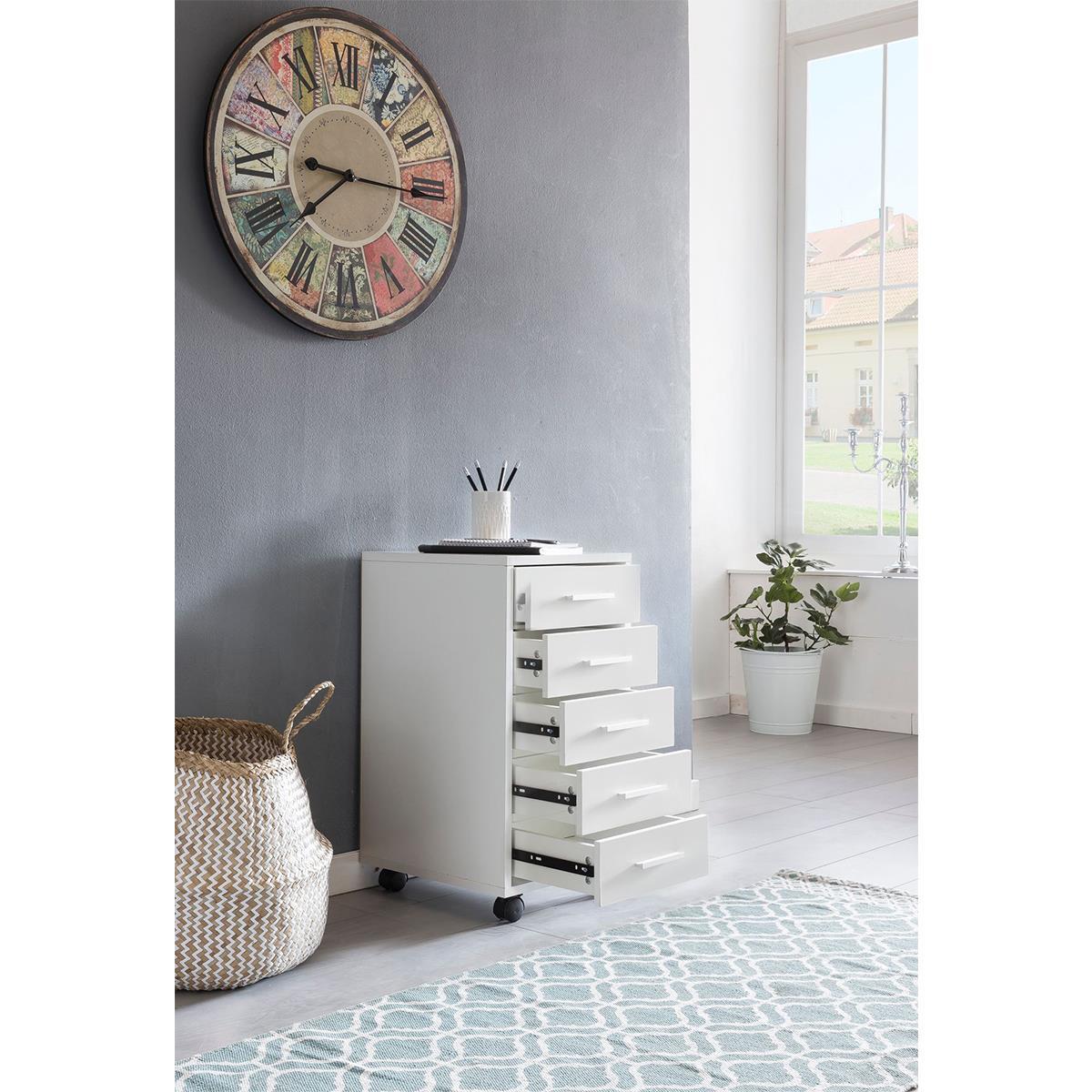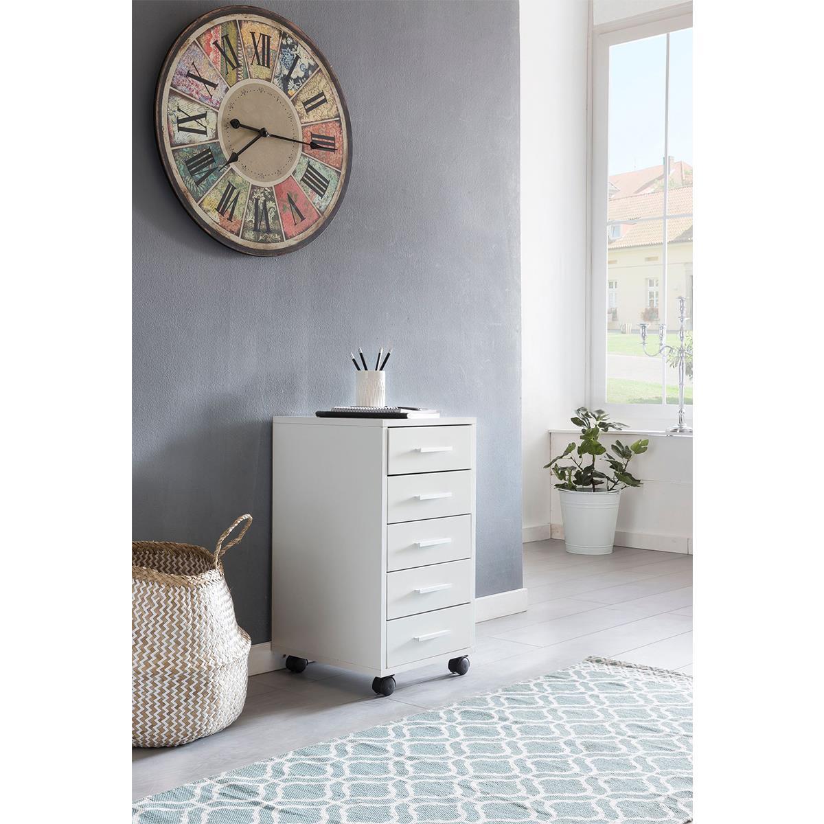 DEMO# Cajonera con Ruedas KLAY, 5 Cajones, 33x38x63 cm, color Blanco