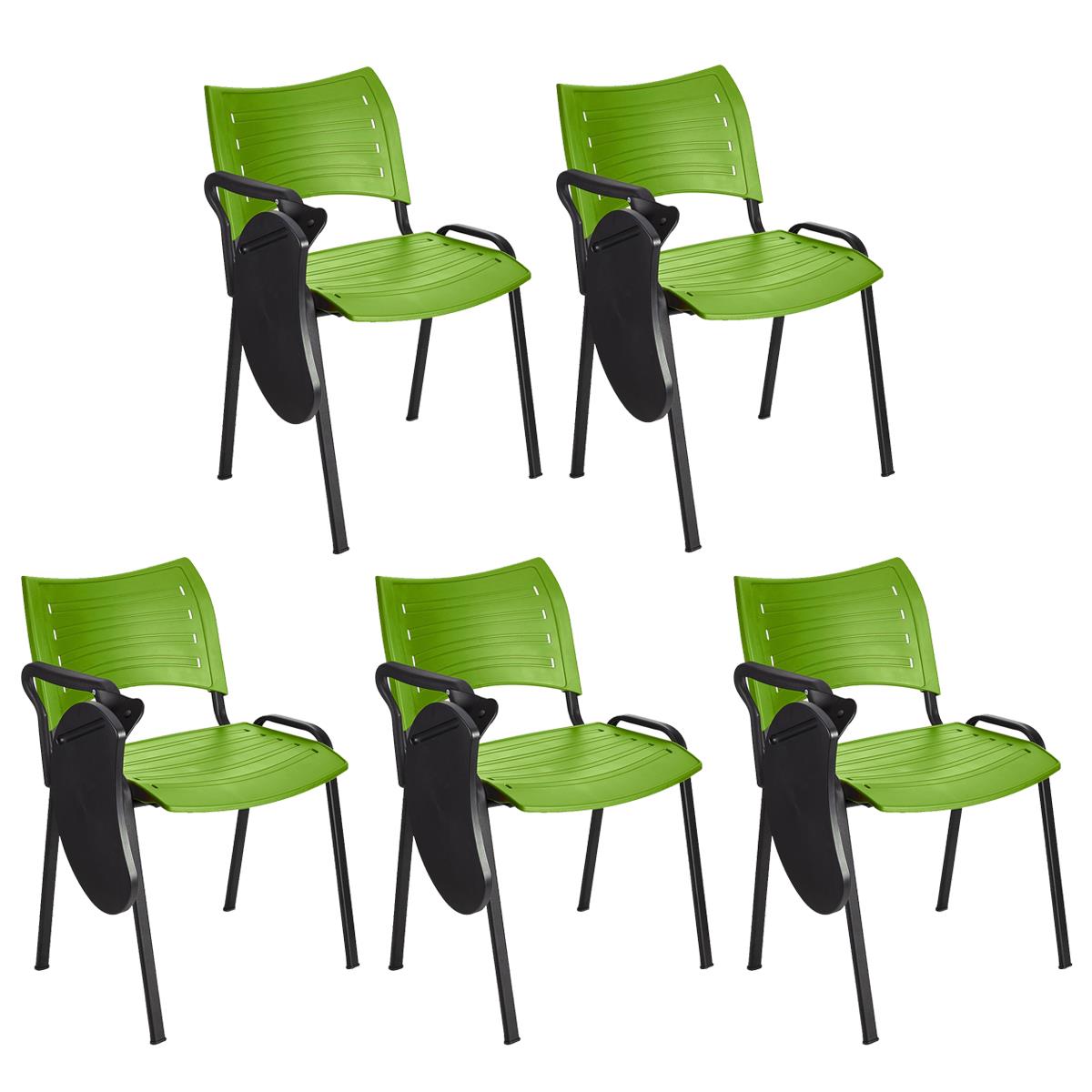 DEMO# Lote de 5 Sillas de Confidente ELVA CON PALA, Apilables y Prácticas, Patas Negras y Color Verde
