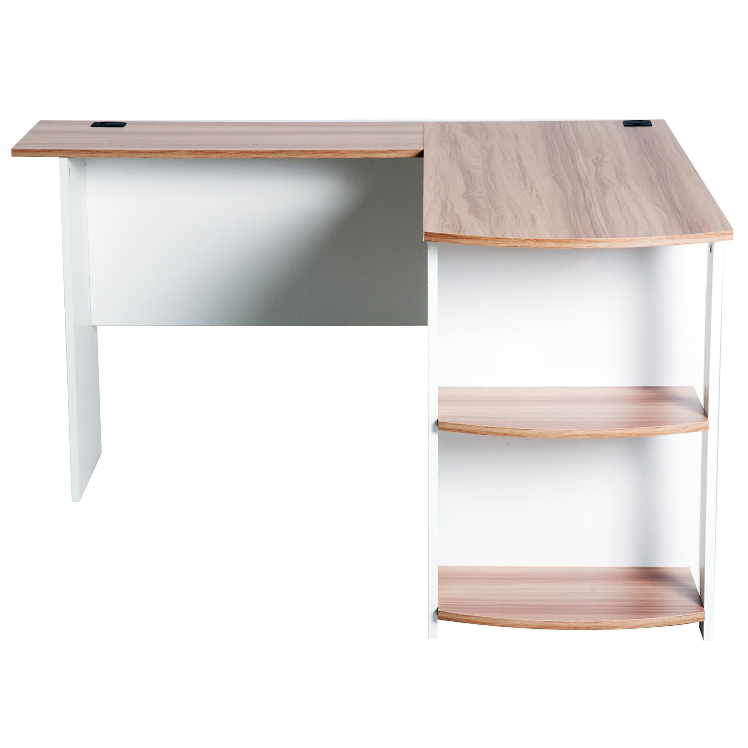 DEMO# Mesa de Oficina DAVEN, 136x130x72 cm, con Estantes, en Madera color Blanco y Nogal