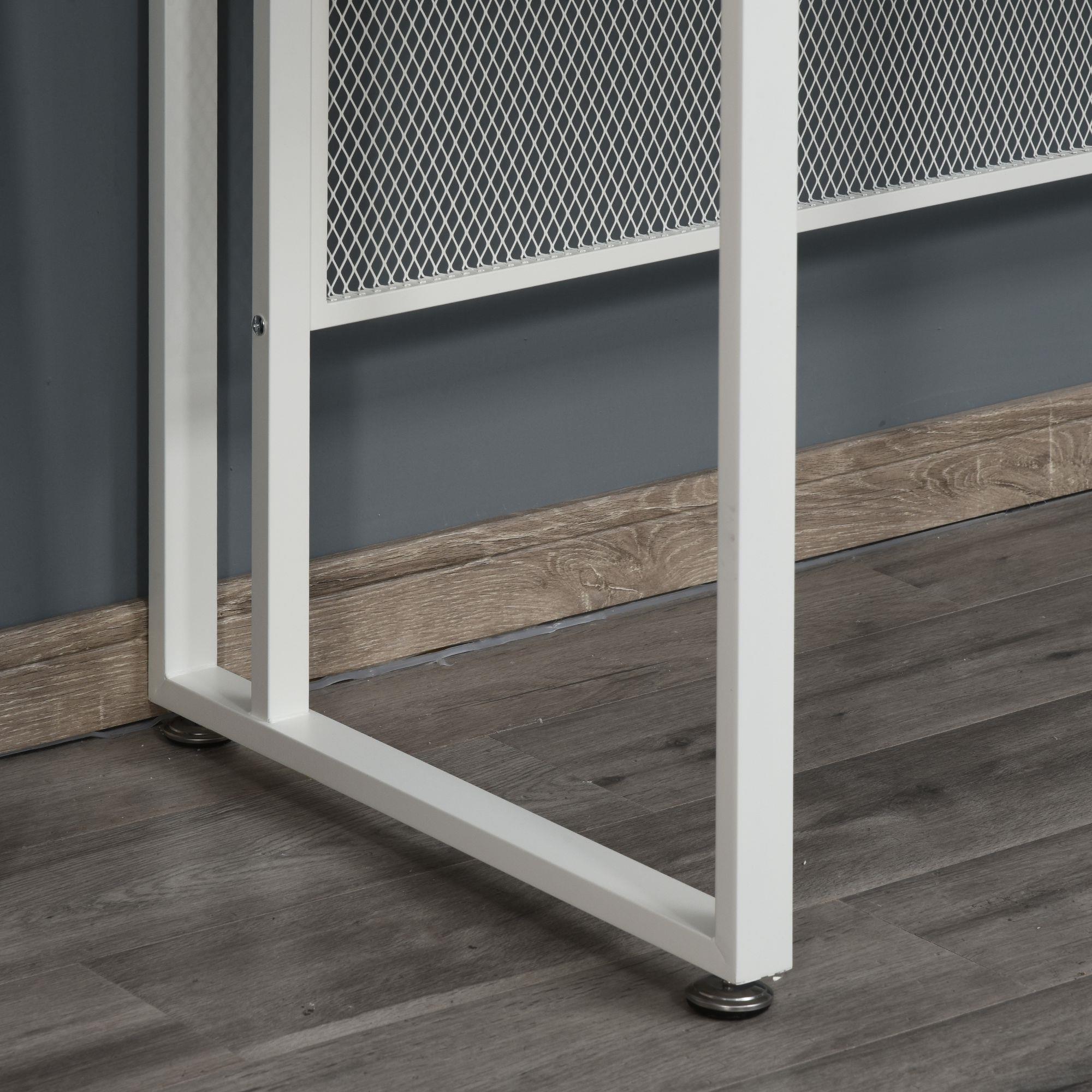 Este escritorio también sobresale por los materiales de primera calidad que se han seleccionado para su fabricación. La superficie de madera de aglomerado es resistente y está recubierta de melamina, un material muy fácil de mantener y limpiar. La estructura metálica que la sostiene proporciona gran robustez y su plancha posterior de rejilla, que a la vez de resultar decorativa, refuerza la estructura de la mesa dándole más estabilidad. Sus patas regulables en altura hacen que la mesa se mantenga estable incluso en suelos irregulares y protegen el suelo de desgaste y rayones.