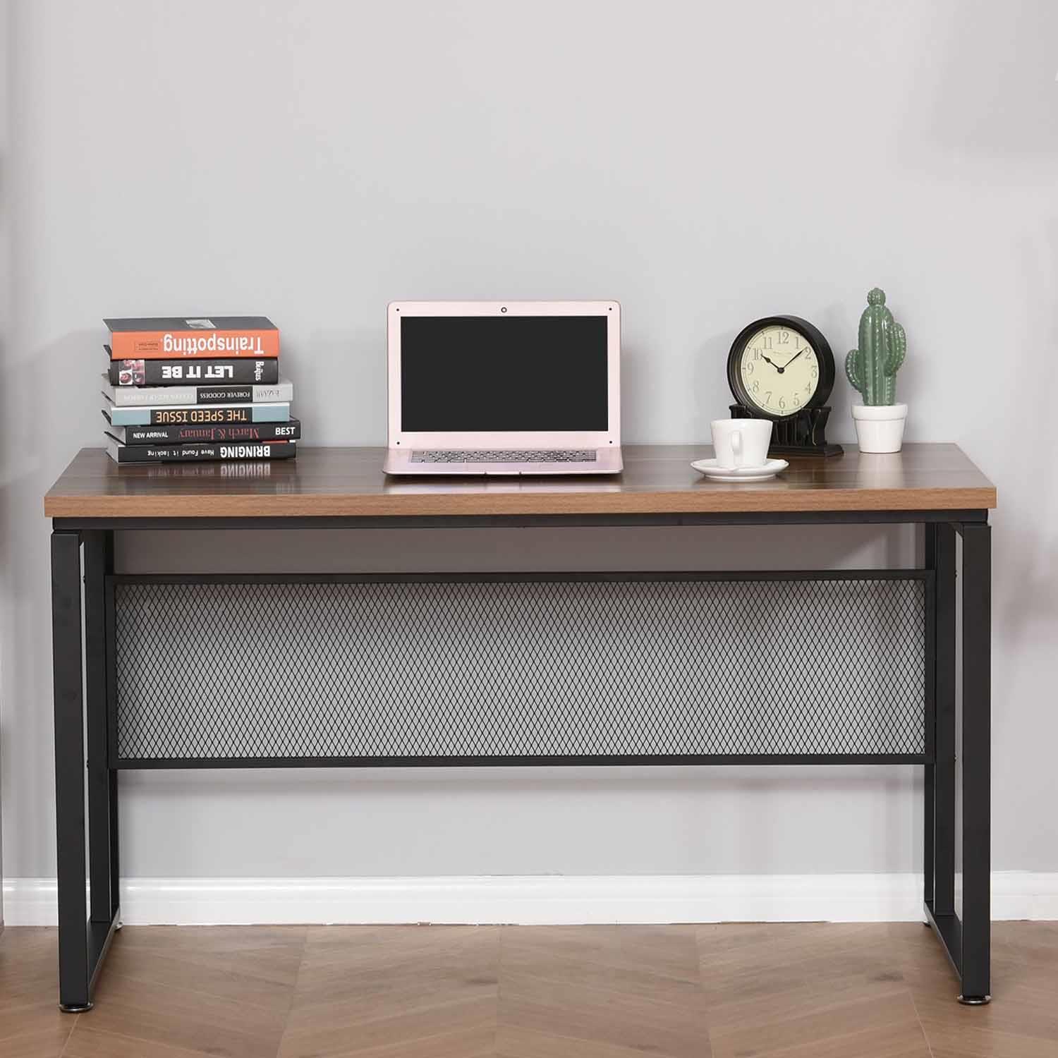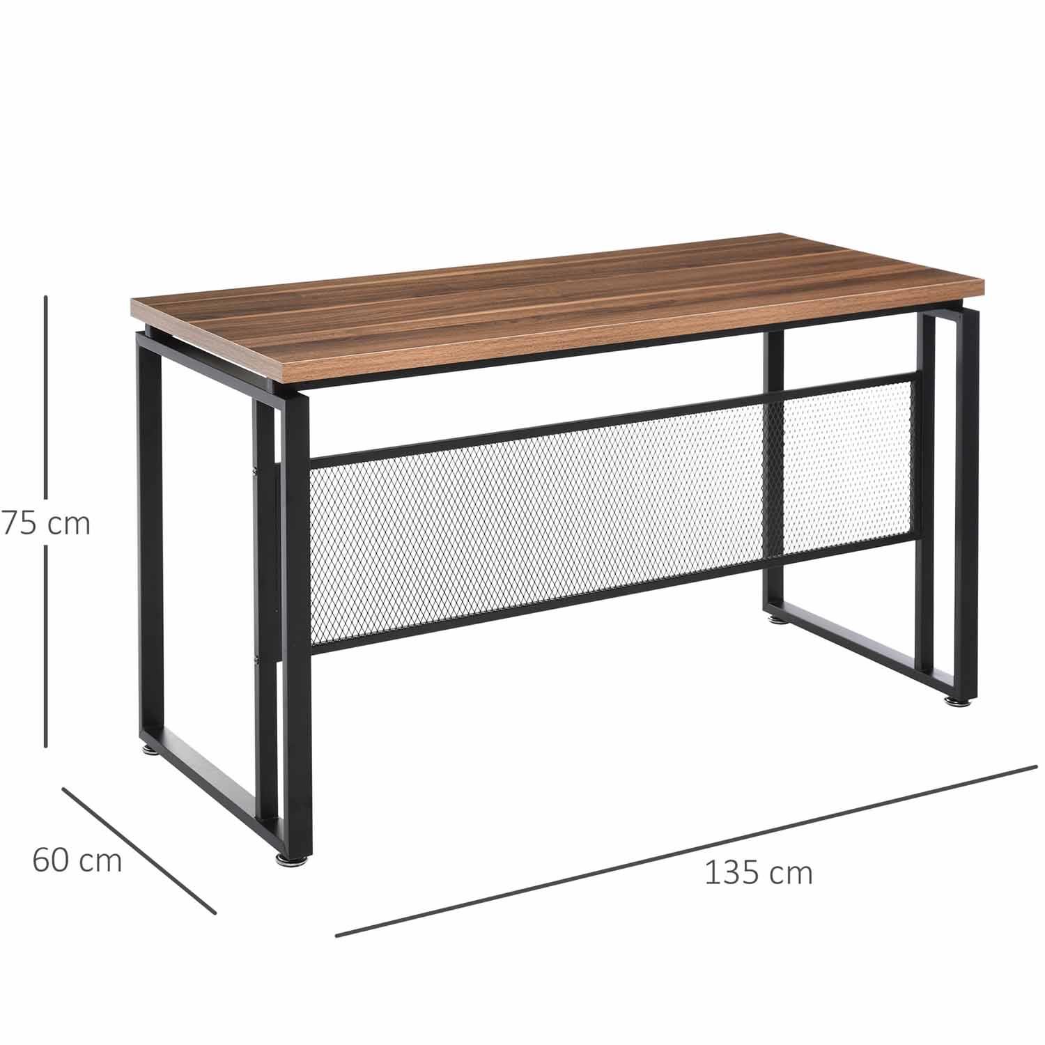 DEMO# Mesa de Oficina FESANI, 135x60x75 cm, en Metal y Madera, color Negro y Nogal