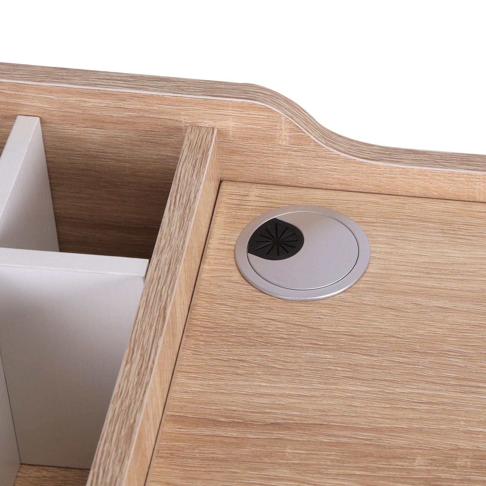 También dispone de un diversos espacios para almacenaje y así podrás organizar los objetos necesarios para el día a día. Tiene 1 cajón con tirador integrado para guardar las cosas que quieras tener ocultas. Gracias a esta mesa, conseguirás mantener el orden en tu espacio de trabajo.