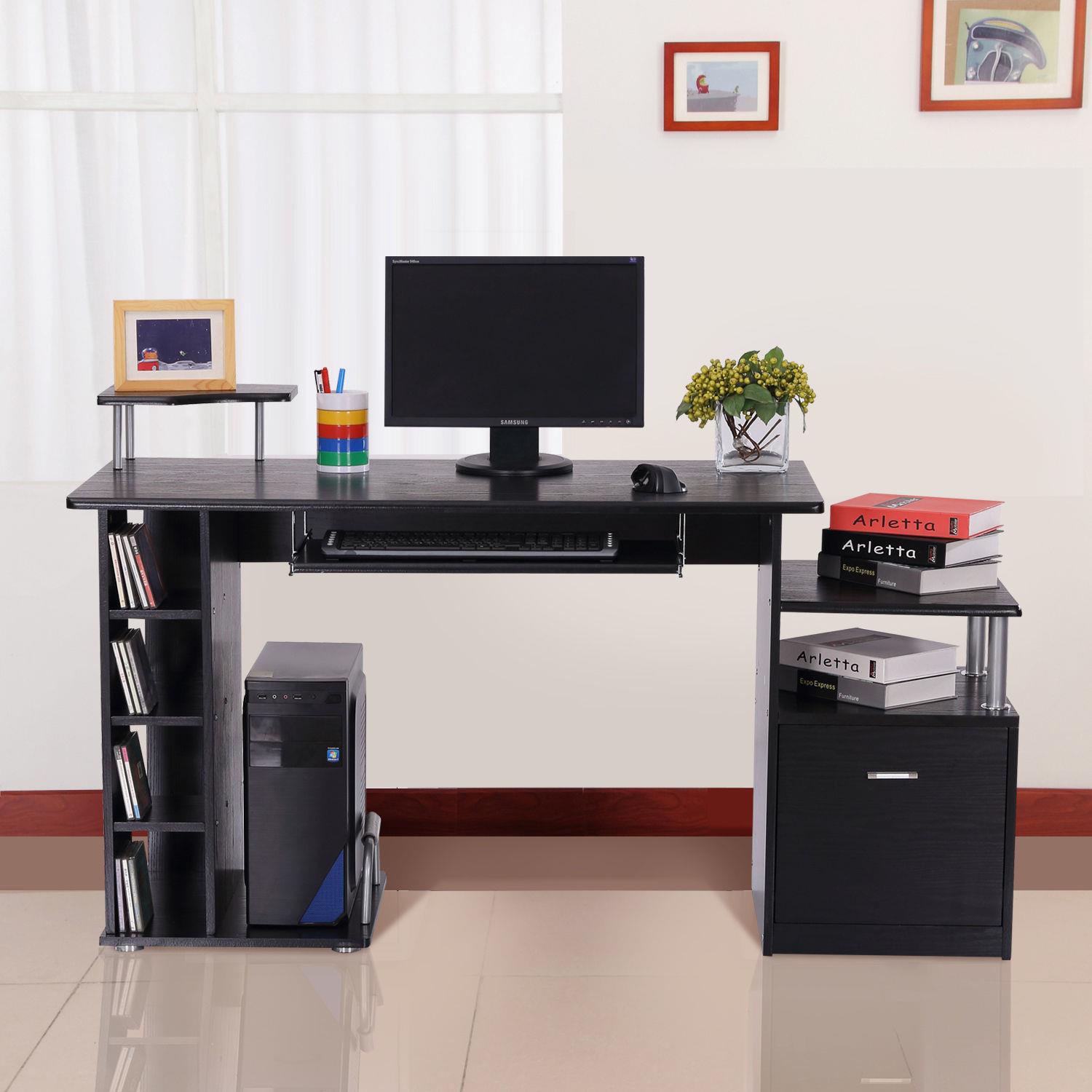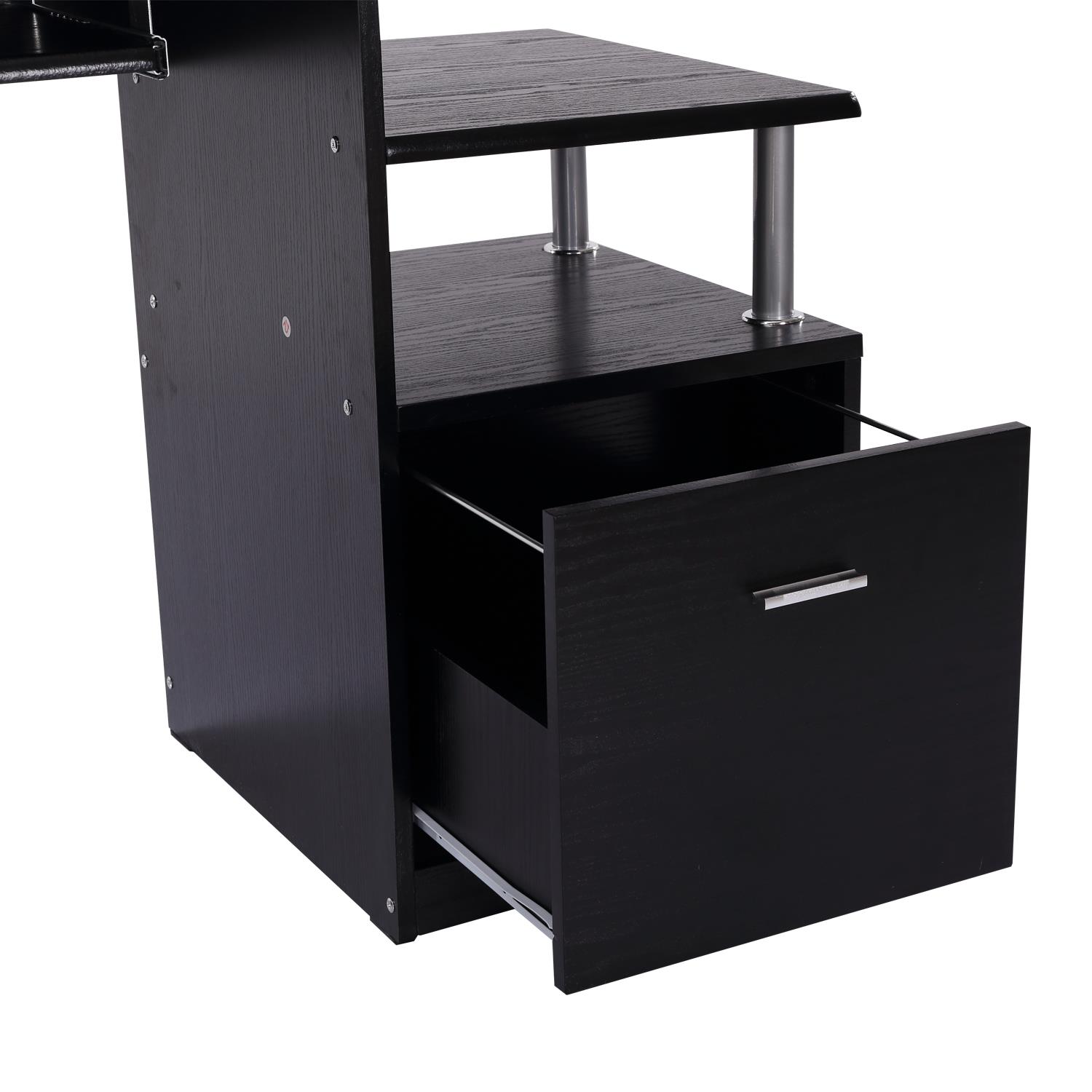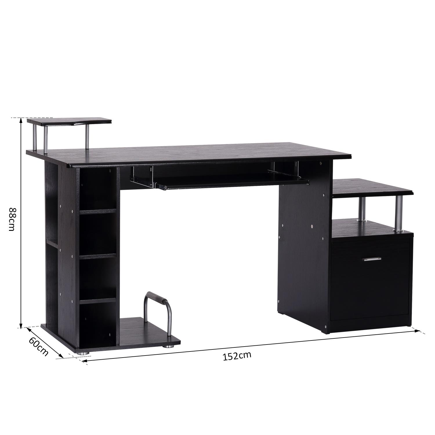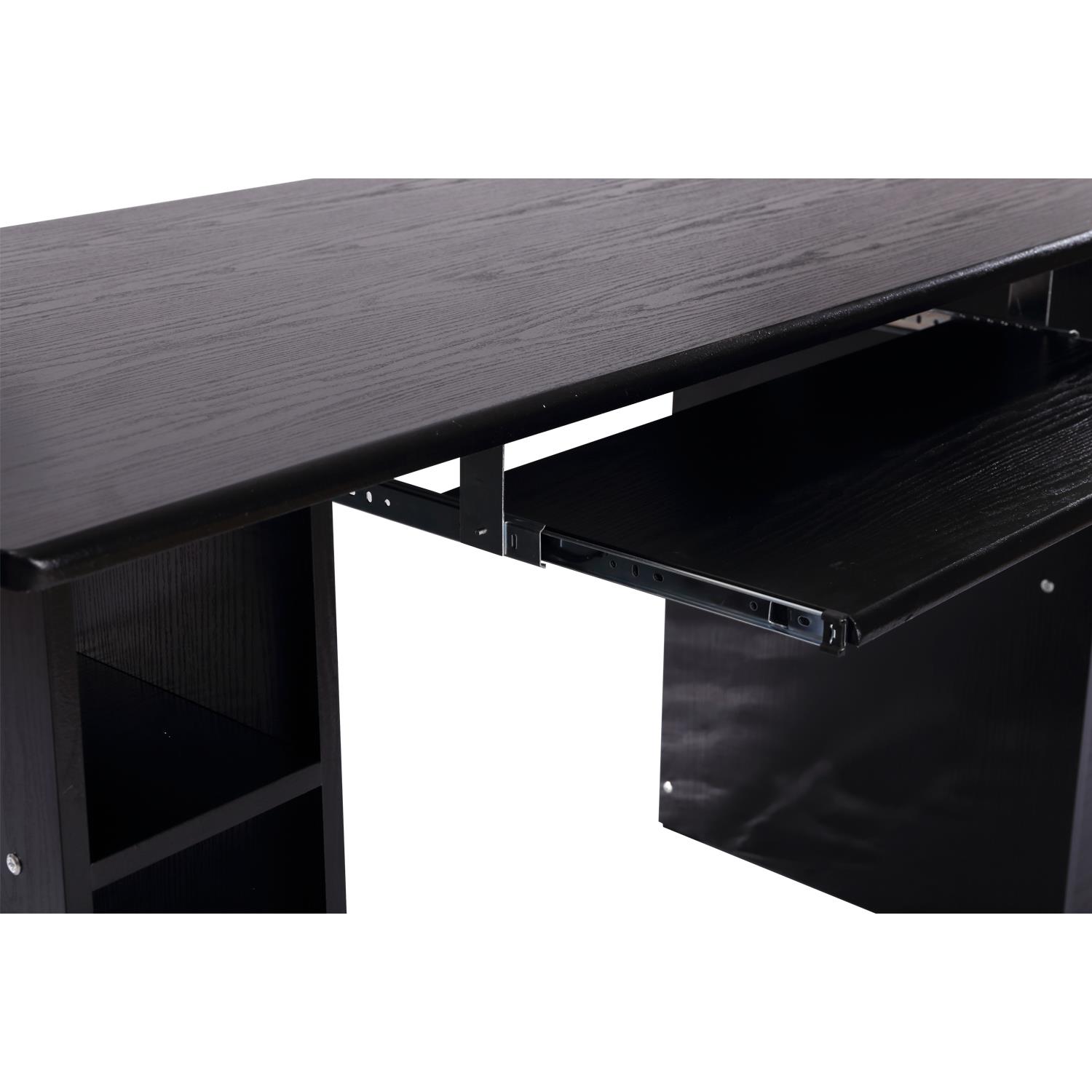 DEMO# Mesa para ordenador PLANET, con Estantes y Bandeja para Teclado, 152x60x80 cm, en Madera color Negro