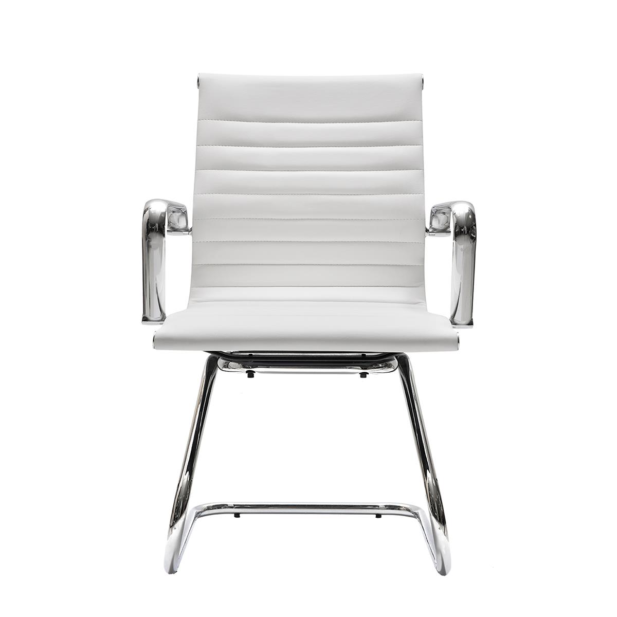 DEMO# Silla de Confidente DORIS V, Estructura Metálica Cromada, Elegante Diseño, En Piel Blanca