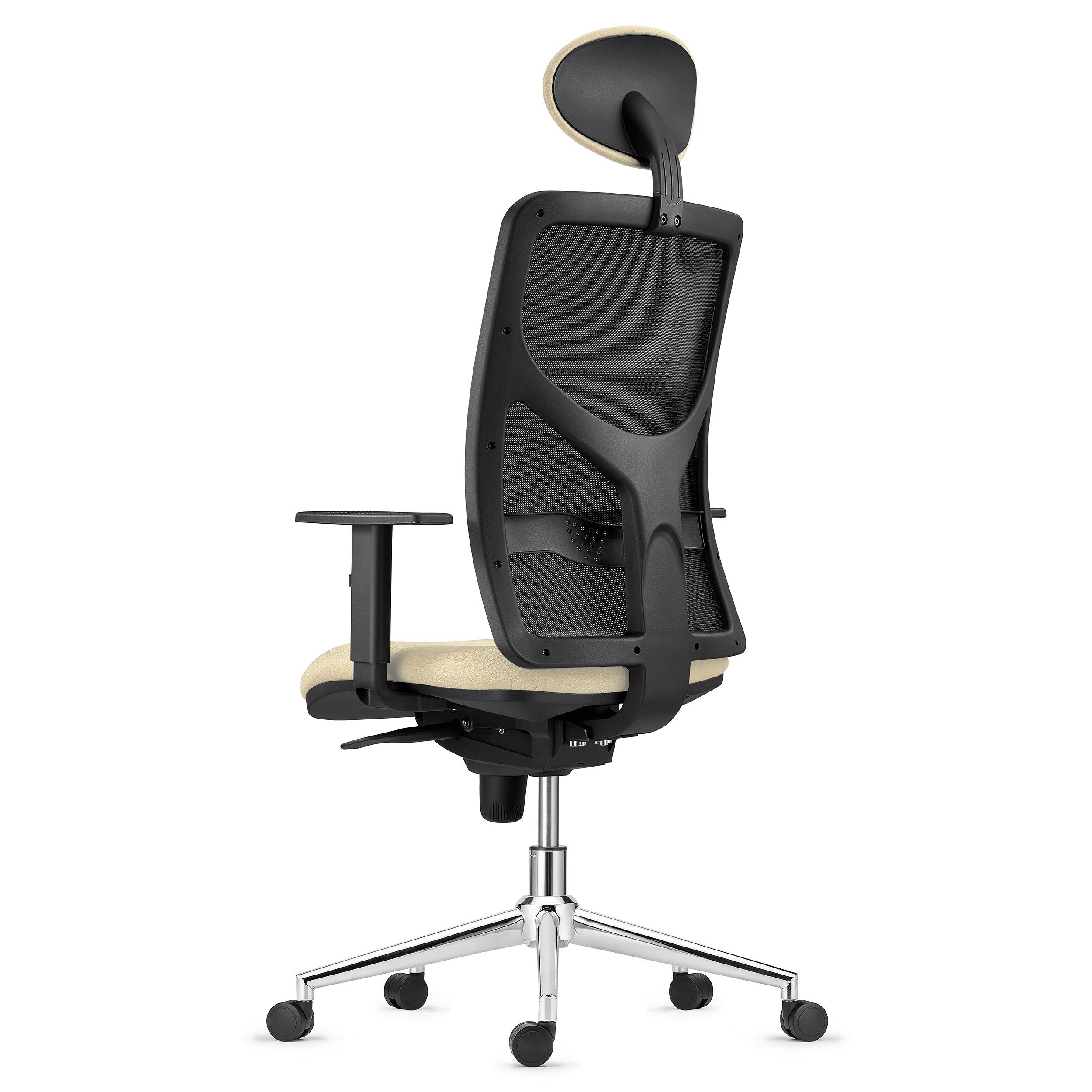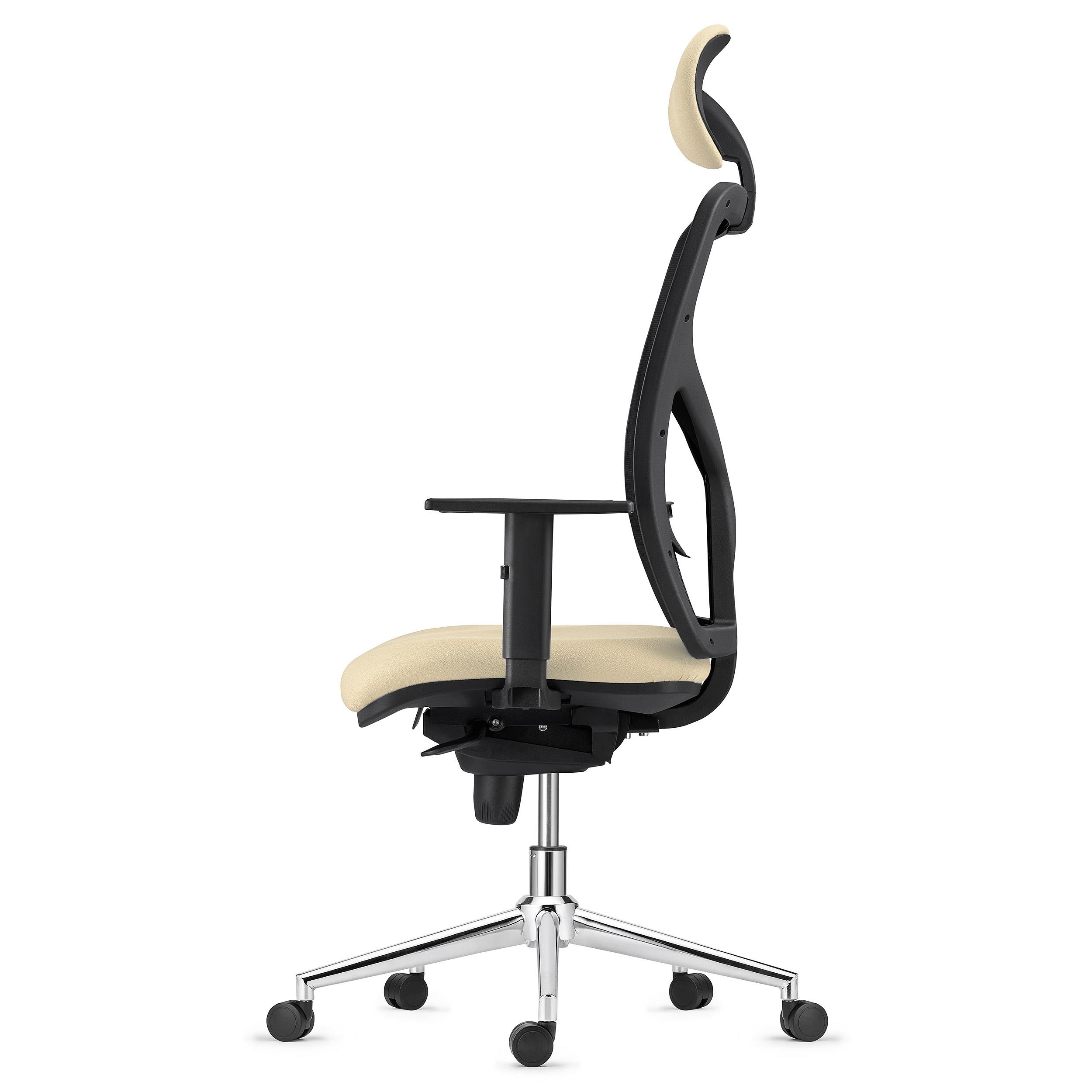 DEMO# Silla de Oficina BAIKAL, Base Metálica, Brazos Ajustables, Soporte Lumbar, en Tela color Crema