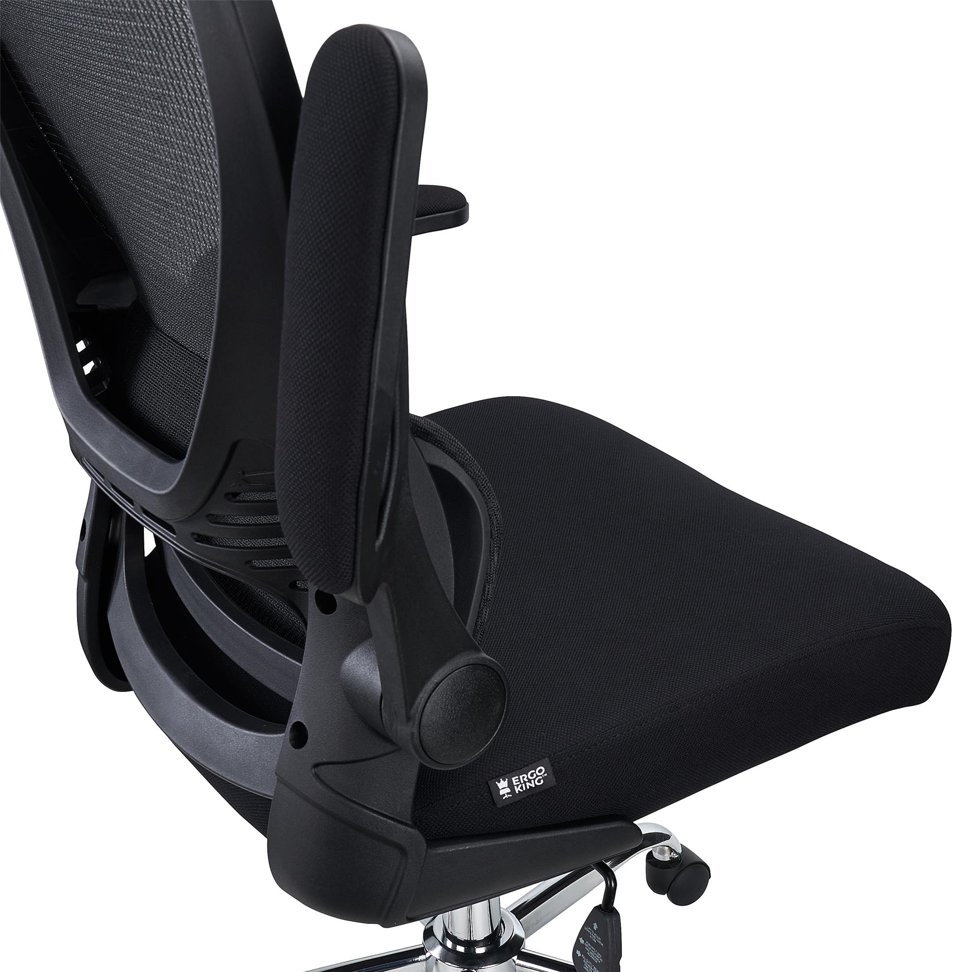 La ergonomía de esta silla hace que esté adaptada para uso intensivo de 8 horas. Al margen del confort que esto supone, los reposabrazos abatibles son su esencia. Funcionan como los de un avión, se pueden abatir hacia arriba y dejarlos fijados en cualquier posición. Además, tienen un acolchado en su parte superior.