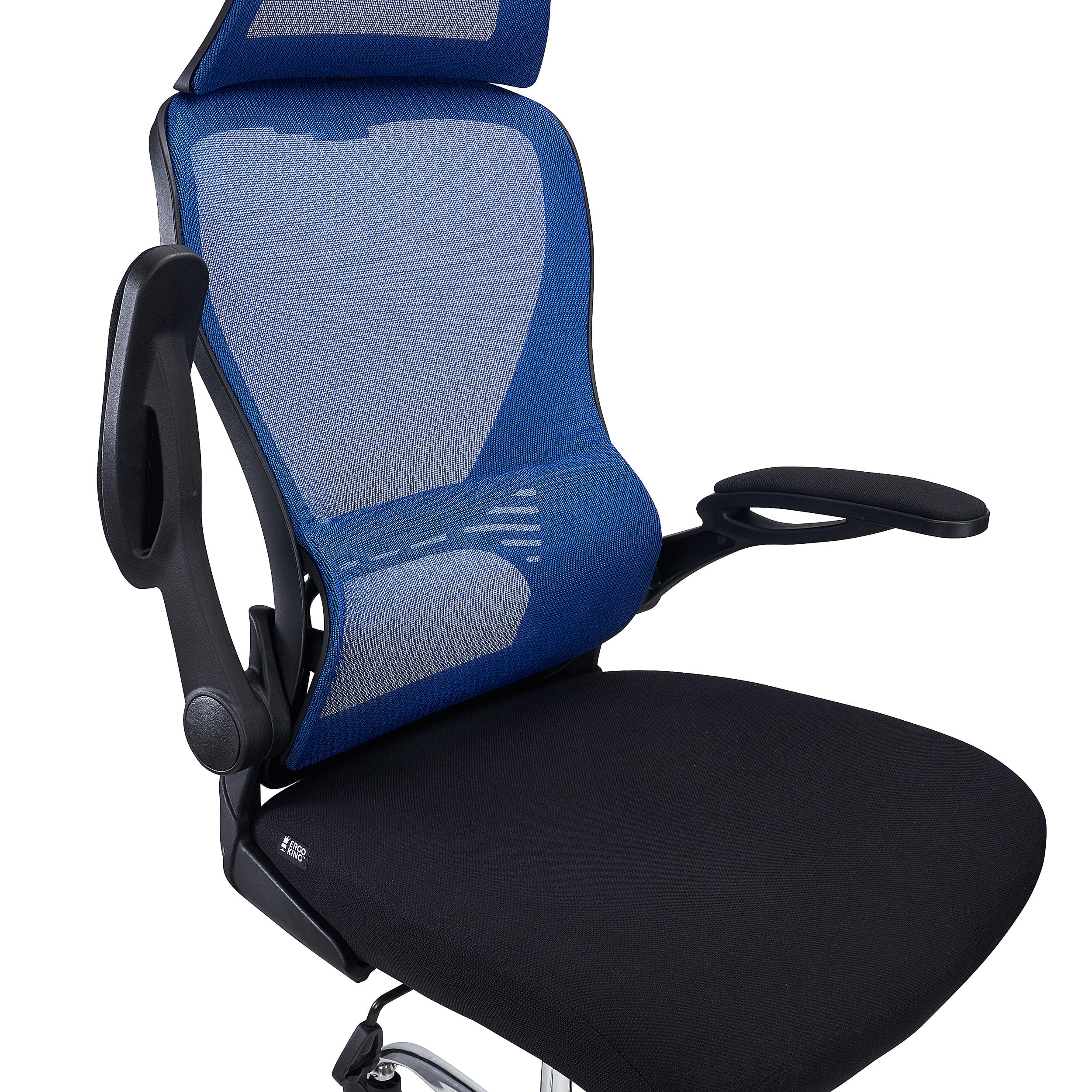 Lo más destacable de su respaldo es el soporte lumbar integrado. Gracias a la malla transpirable y su flexibilidad la silla se adapta totalmente a tu espalda. En este caso estamos ante la versión con reposacabezas, integrado con el diseño del respaldo, actuando incluso como prolongación del mismo.