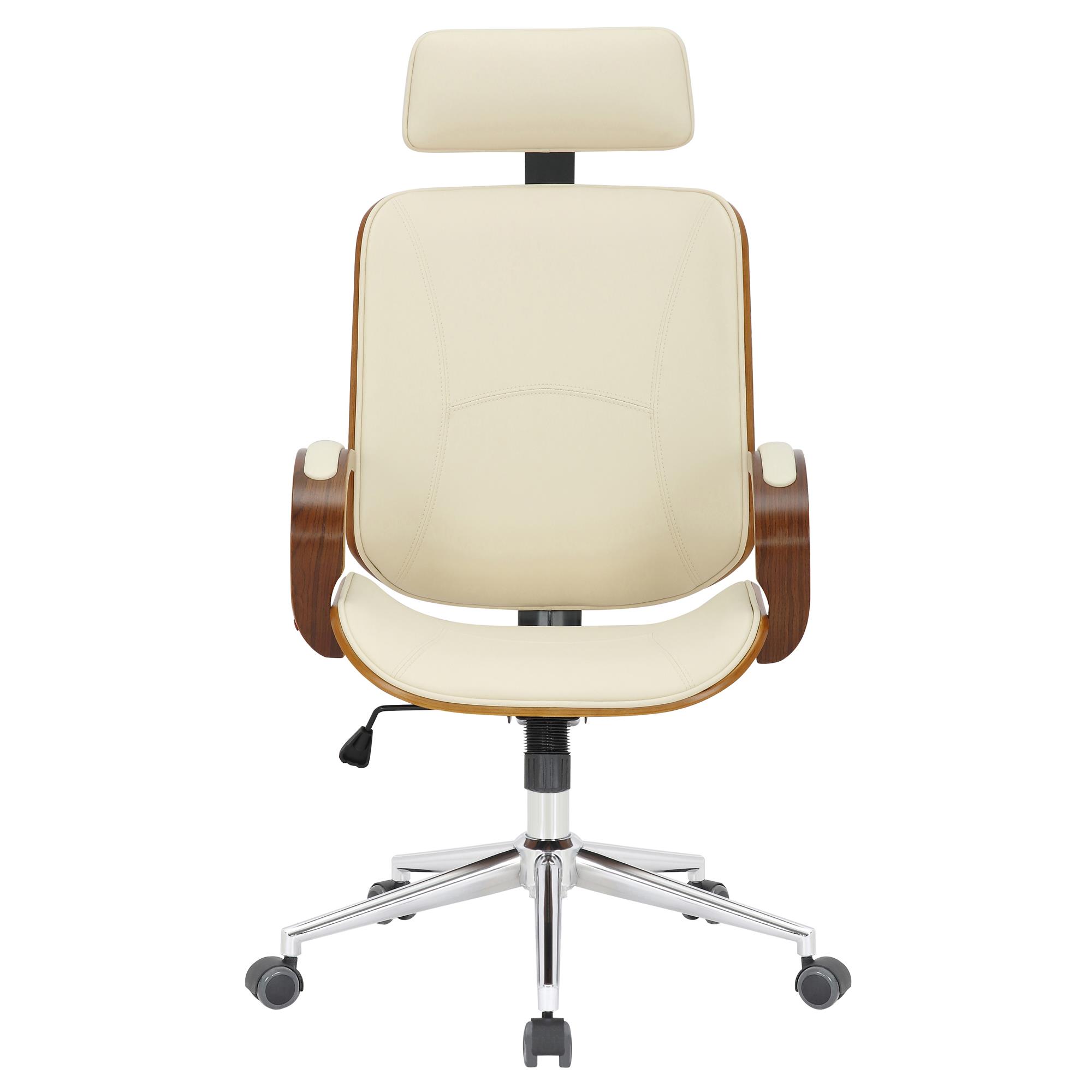 DEMO# Silla de Oficina JUTTA, Gran Acolchado, Elegante Diseño en Madera y Piel color Crema