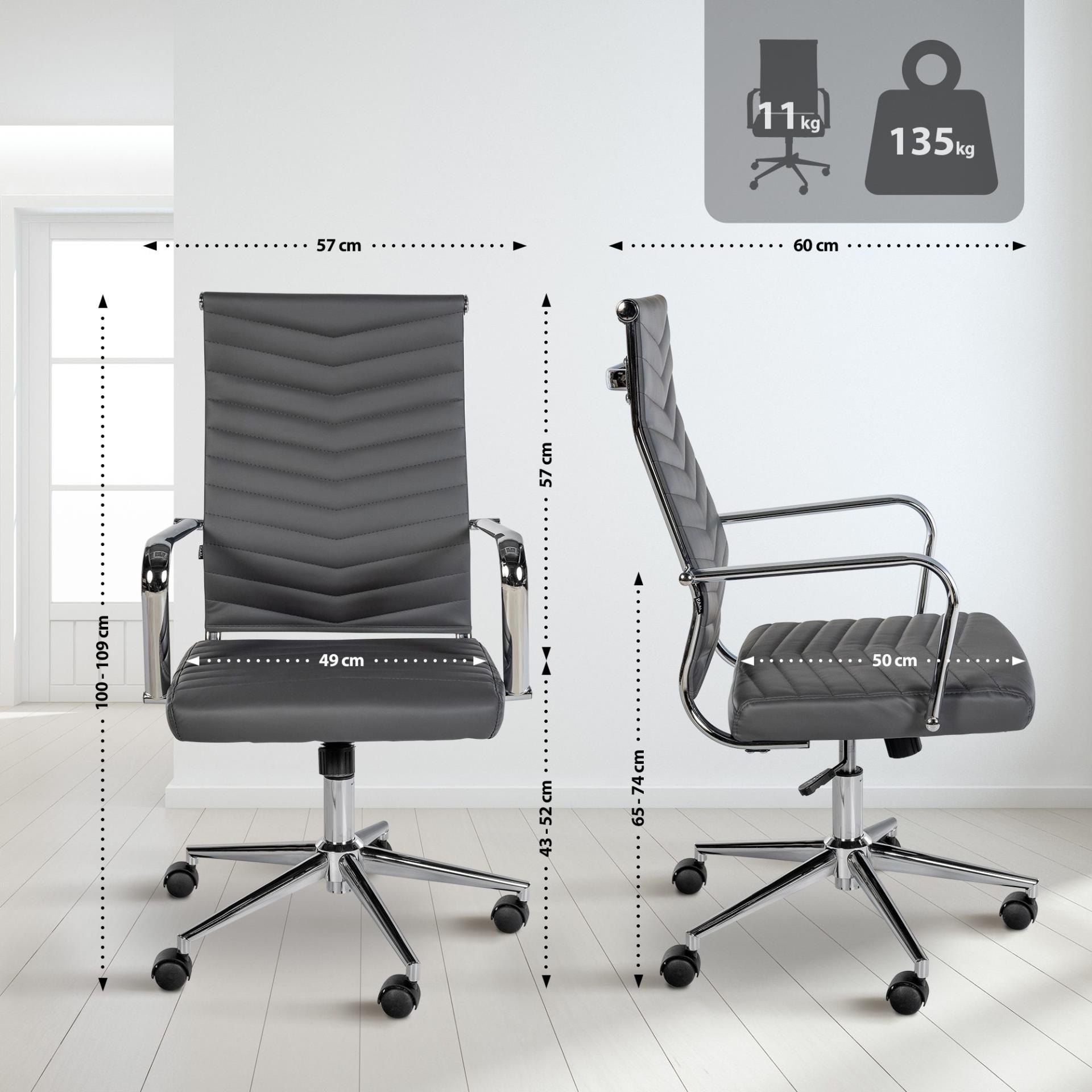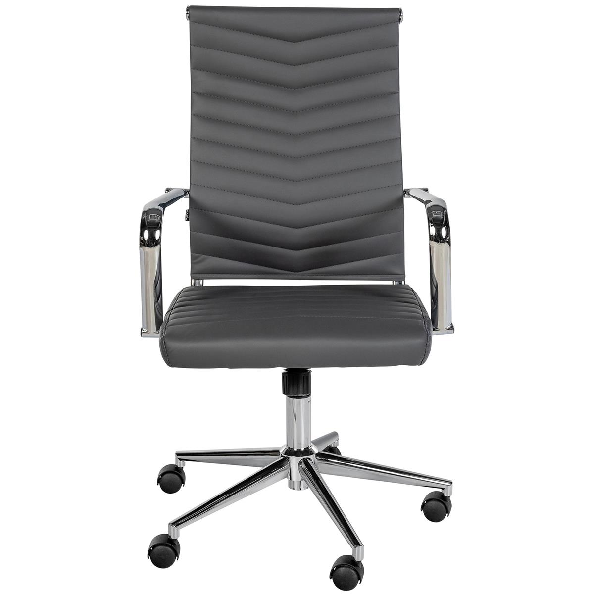 DEMO# Silla de Oficina KOBE, Diseño con Elegantes Costuras, Base Metálica, en Piel color Gris