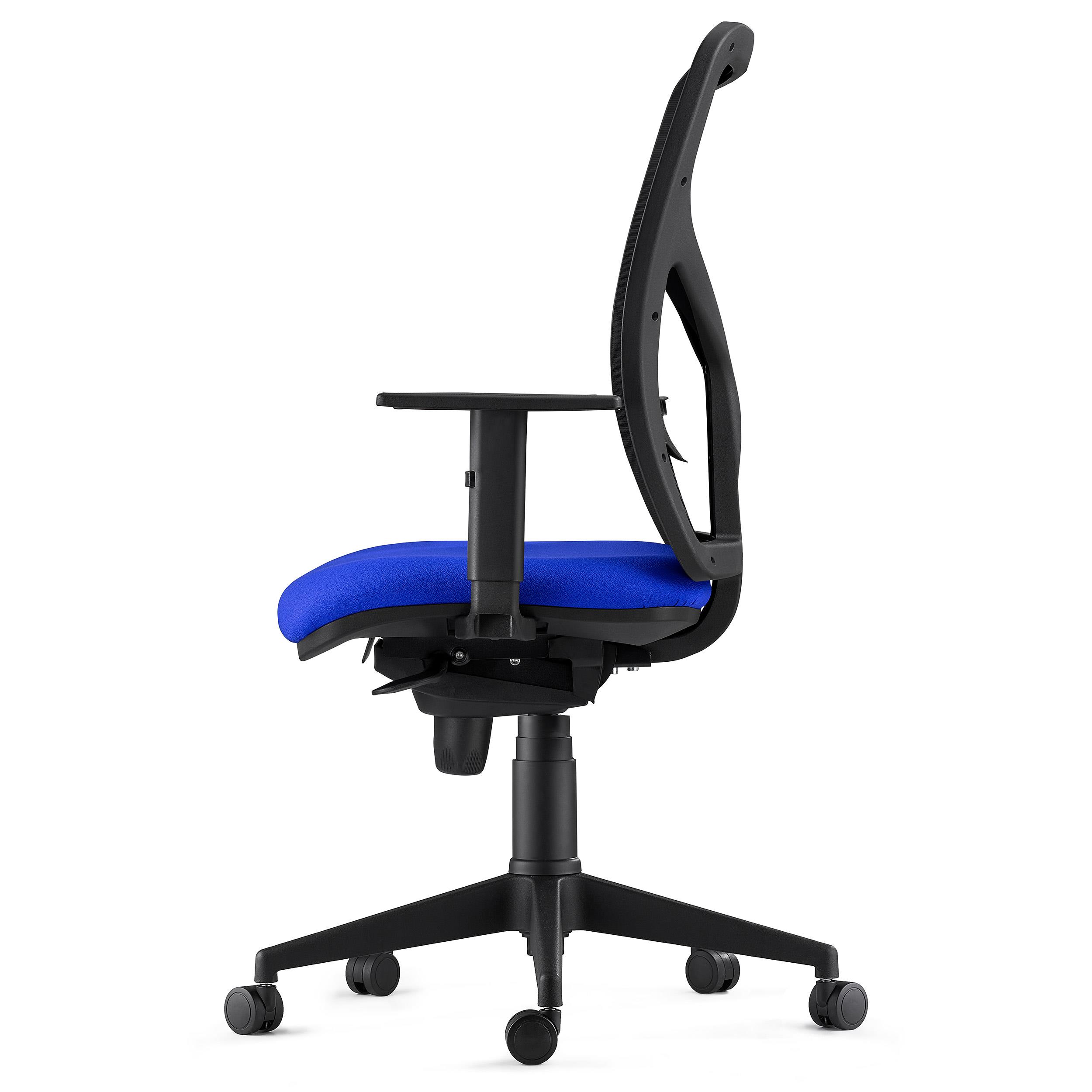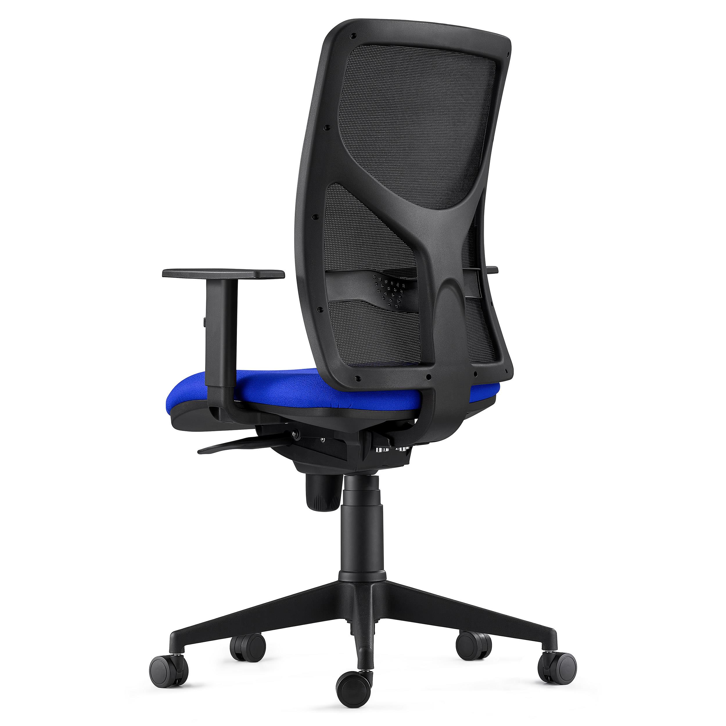 Además, sus brazos ajustables en altura, permiten que cada usuario pueda colocarlos en la posición deseada y su mecanismo sincronizado de balanceo, un útil y práctico sistema para reclinar el respaldo a tu antojo, hace que pueda fijarse el respaldo en varias posiciones. Todo ello hace que este modelo sea apto para uso intensivo de 8 horas/día, por lo tanto es ideal para uso diario profesional.