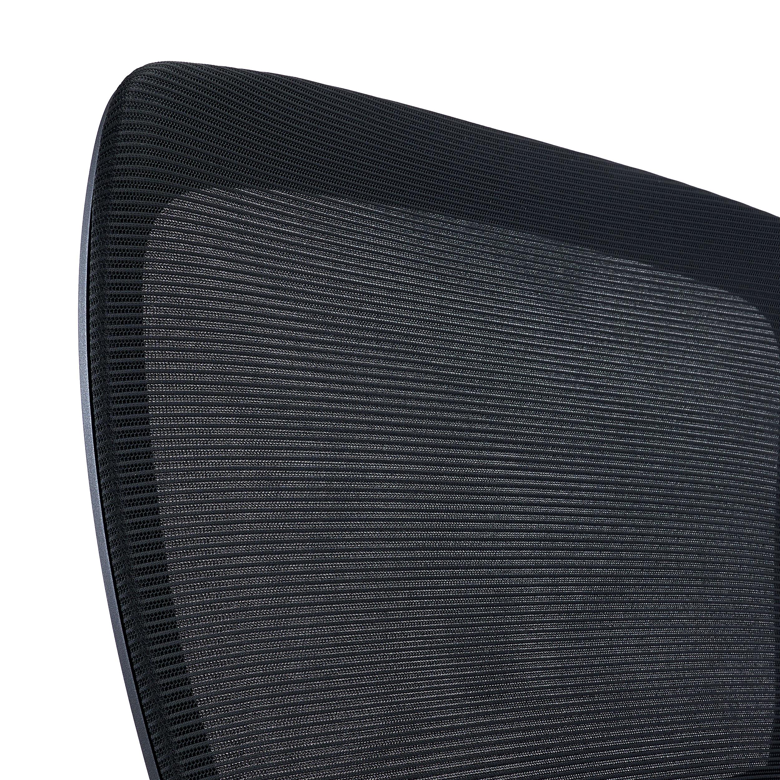 El respaldo presenta una curvatura ergonómica. Esta característica es importante, ya que posibilita una higiene postura óptima, siendo más habitual diseños más planos en esta gama. El soporte lumbar es ajustable en altura: de nuevo una característica de nivel superior que marca la diferencia.