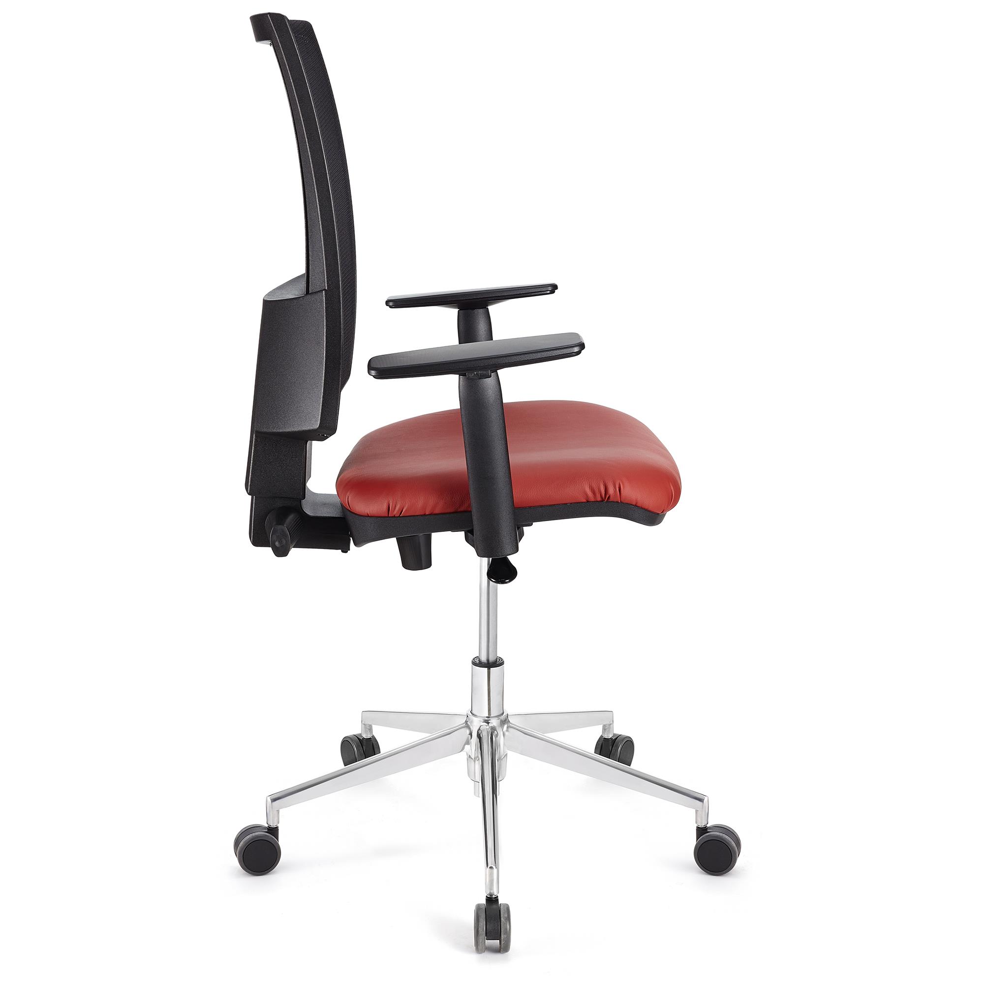 La base es de acero cromado. Se trata de un modelo que brilla por su robustez, soportando perfectamente el trato exigente gracias a la calidad de sus materiales. Por su parte los reposabrazos ajustables en altura son un plus en ergonomía que facilitan lograr la mejor postura.