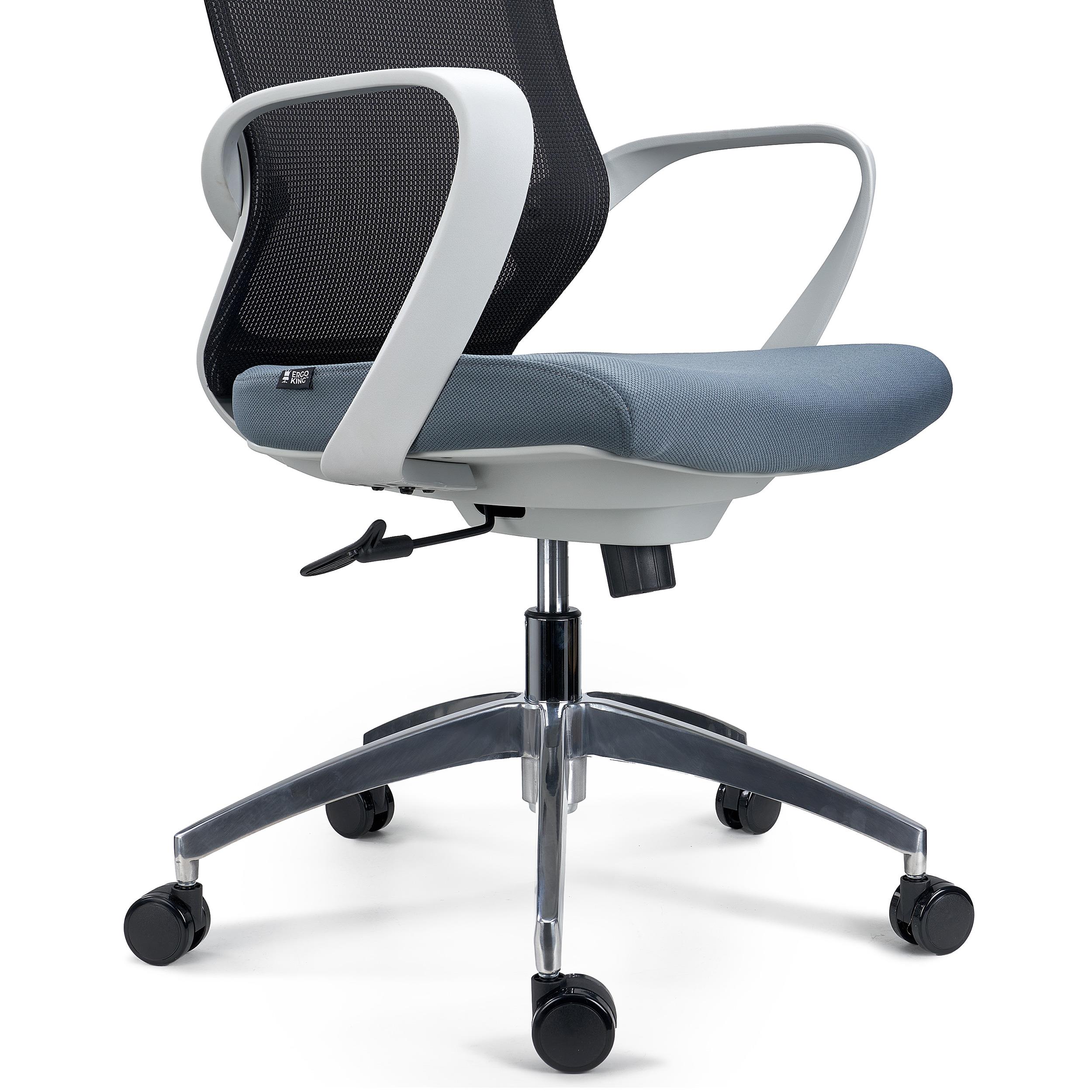 Destaca pricipalmente por su respaldo medio tapizado en malla transpirable. Este material es resistente y duradero, se adapta perfectamente a la postura del usuario. Está diseñado con formas ergonómicas para mantener una postura adecuada durante una jornada intensiva.