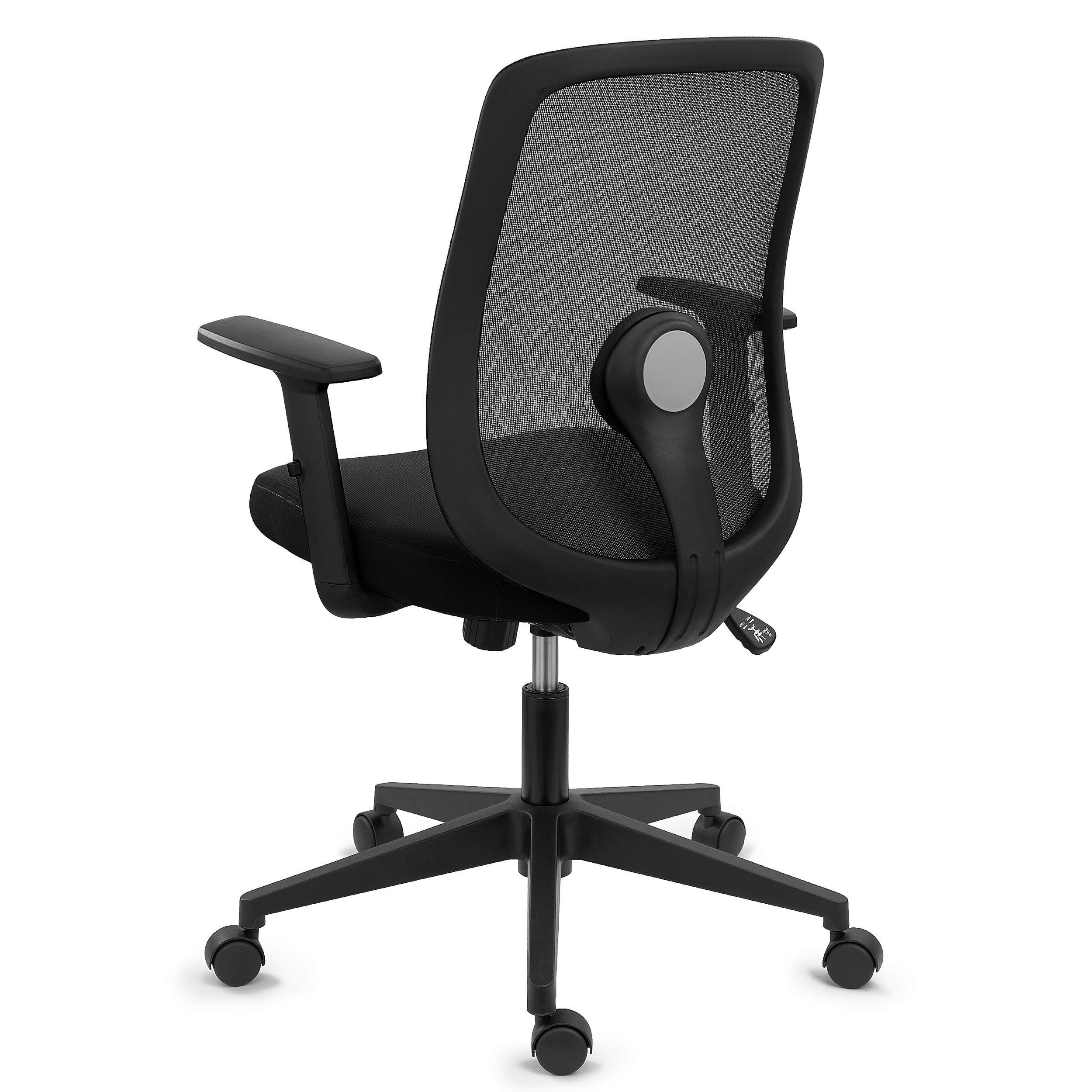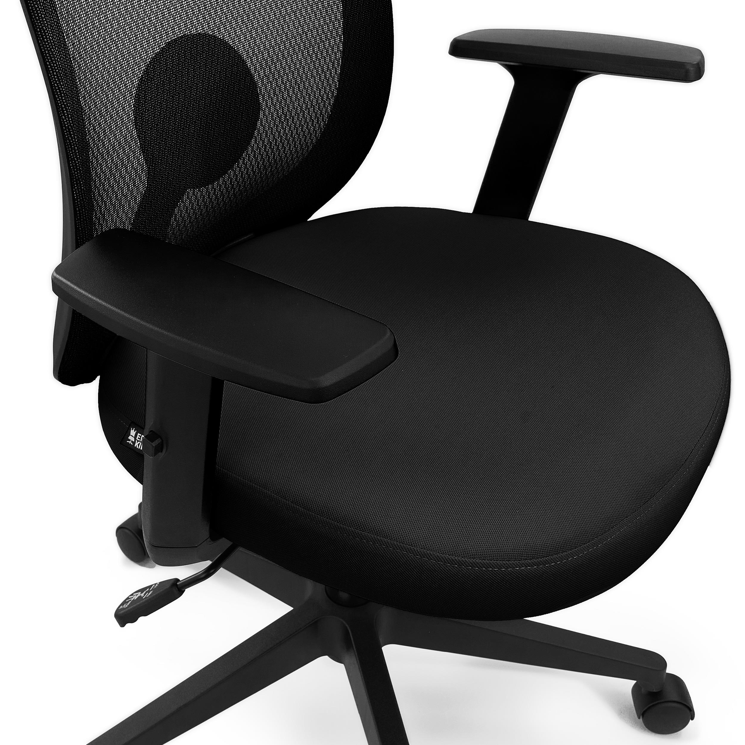 El original diseño del soporte lumbar del respaldo es su seña de identidad. Es acolchado y muy agradable, gracias a su forma circular ofrece sujeción para la parte baja de la espalda, pero a su vez con el equilibrio perfecto entre firmeza y suavidad. El tapizado en malla transpirable del respaldo es muy cómodo, resistente y de fácil limpieza.