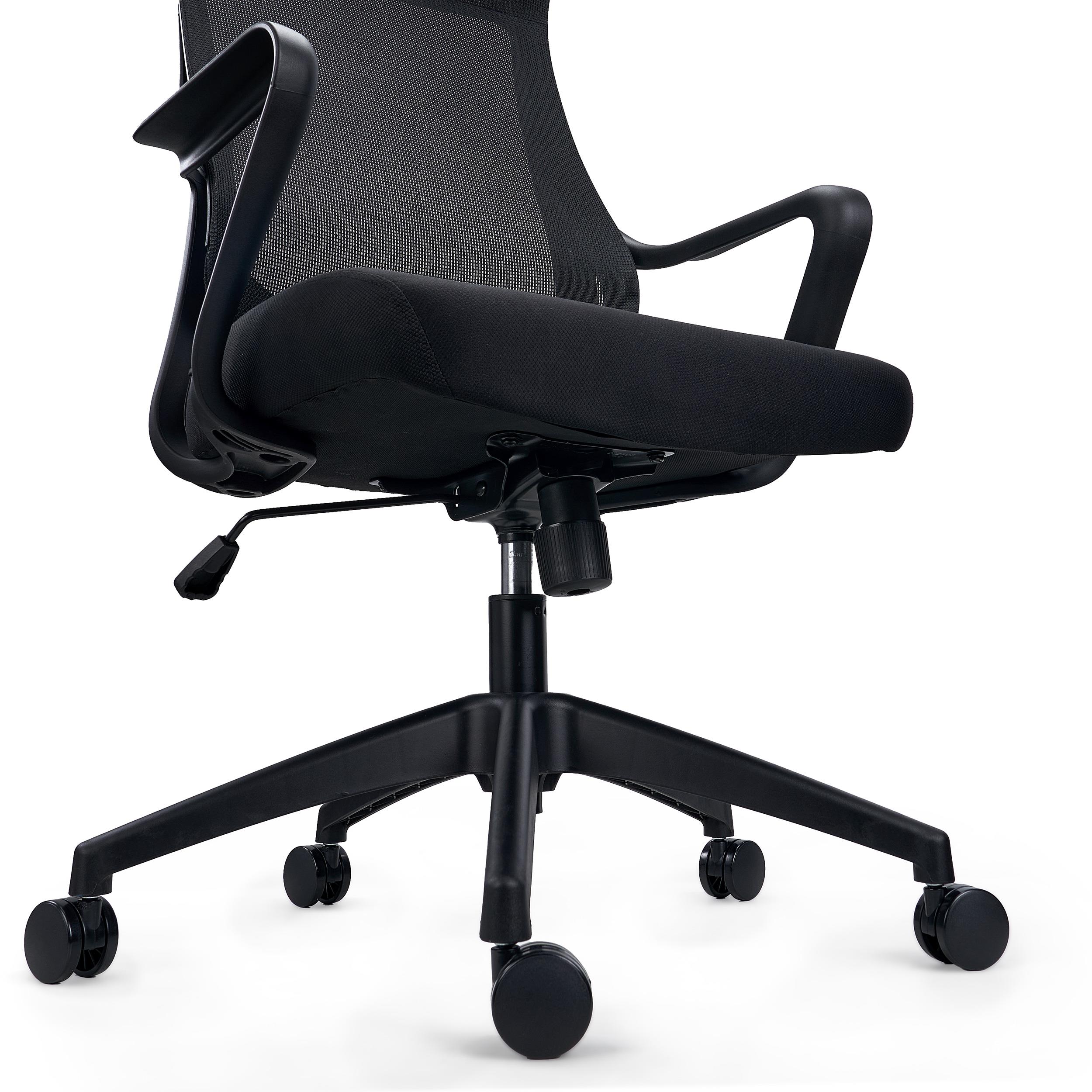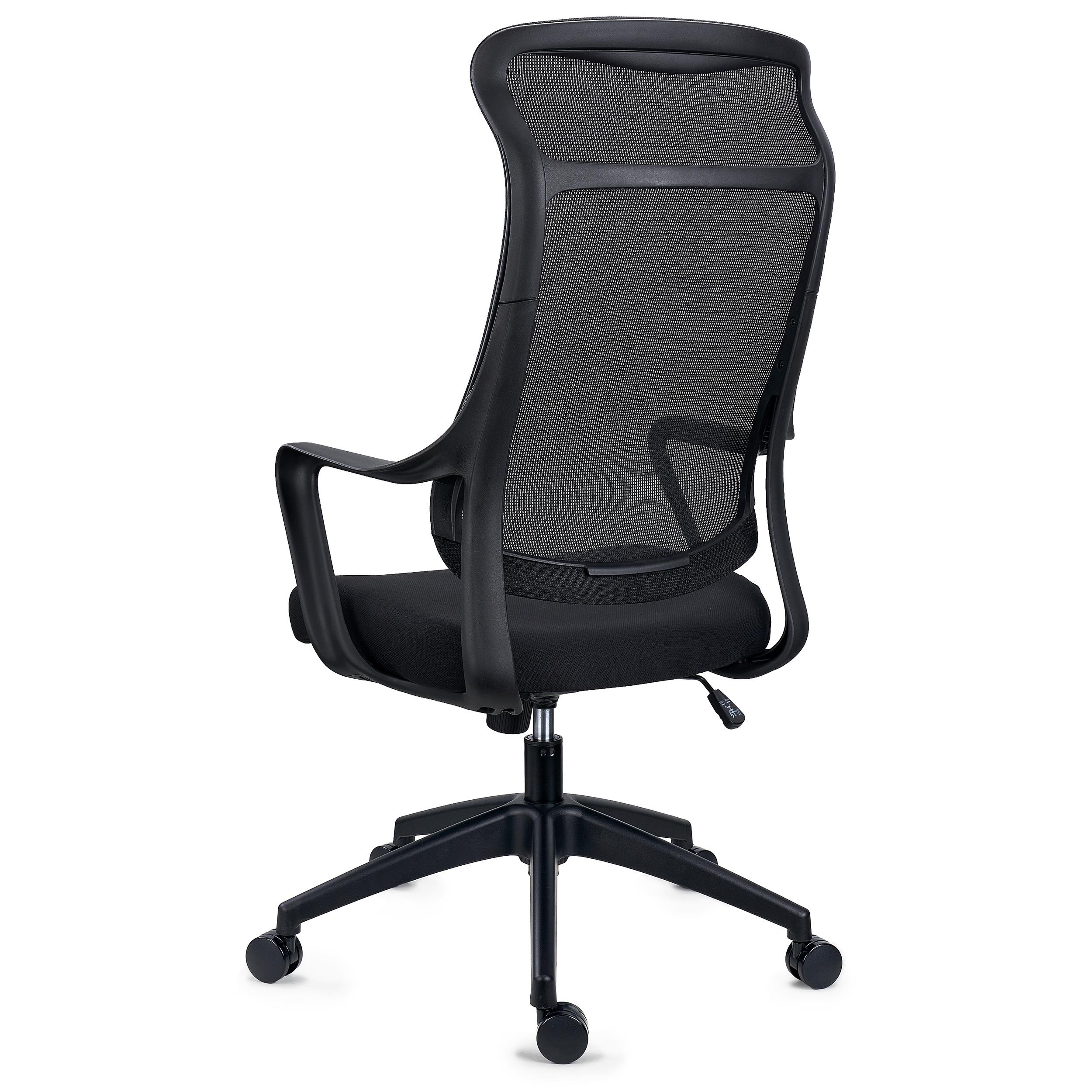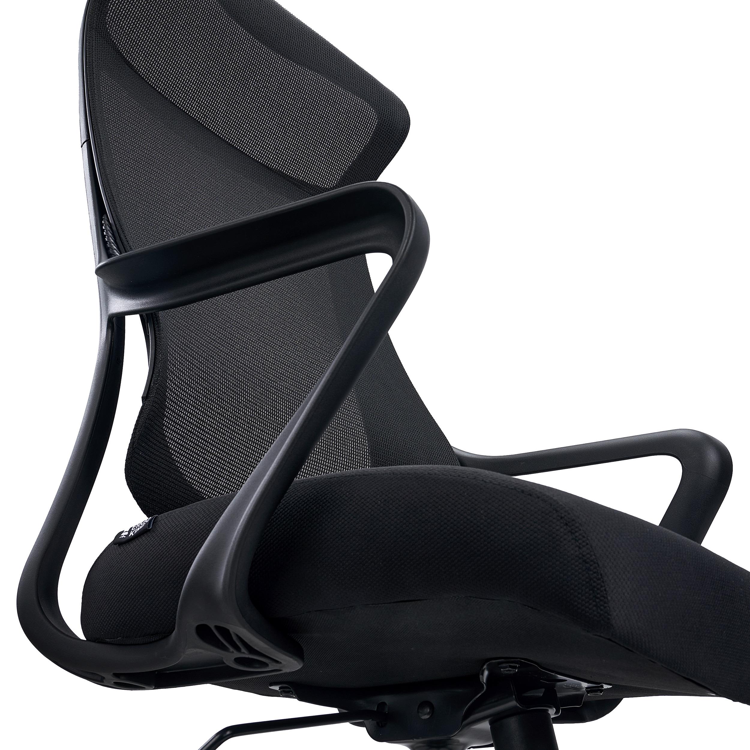 Destaca su elevado respaldo ergonómico con reposacabezas integrado, adecuado para personas de prácticamente todas las estaturas y permite un uso continuado con total comodidad. El tapizado del respaldo es de malla transpirable, un material que combina una óptima ventilación con la mayor resistencia.
