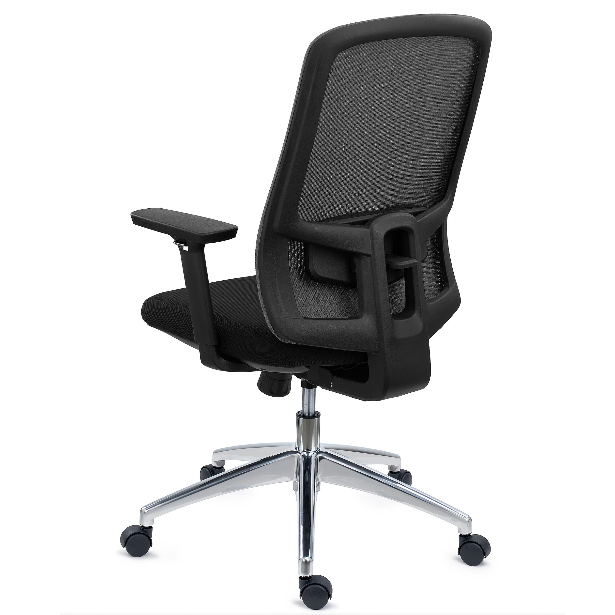 El respaldo, en malla transpirable, tiene soporte lumbar ajustable en altura. Otra de las características clave de este modelo, ya que la parte baja de la espalda es una de las más sensibles. Su curvatura y estudiadas formas hacen que la espalda tenga un óptimo apoyo, imprescindible para un uso intensivo con seguridad.