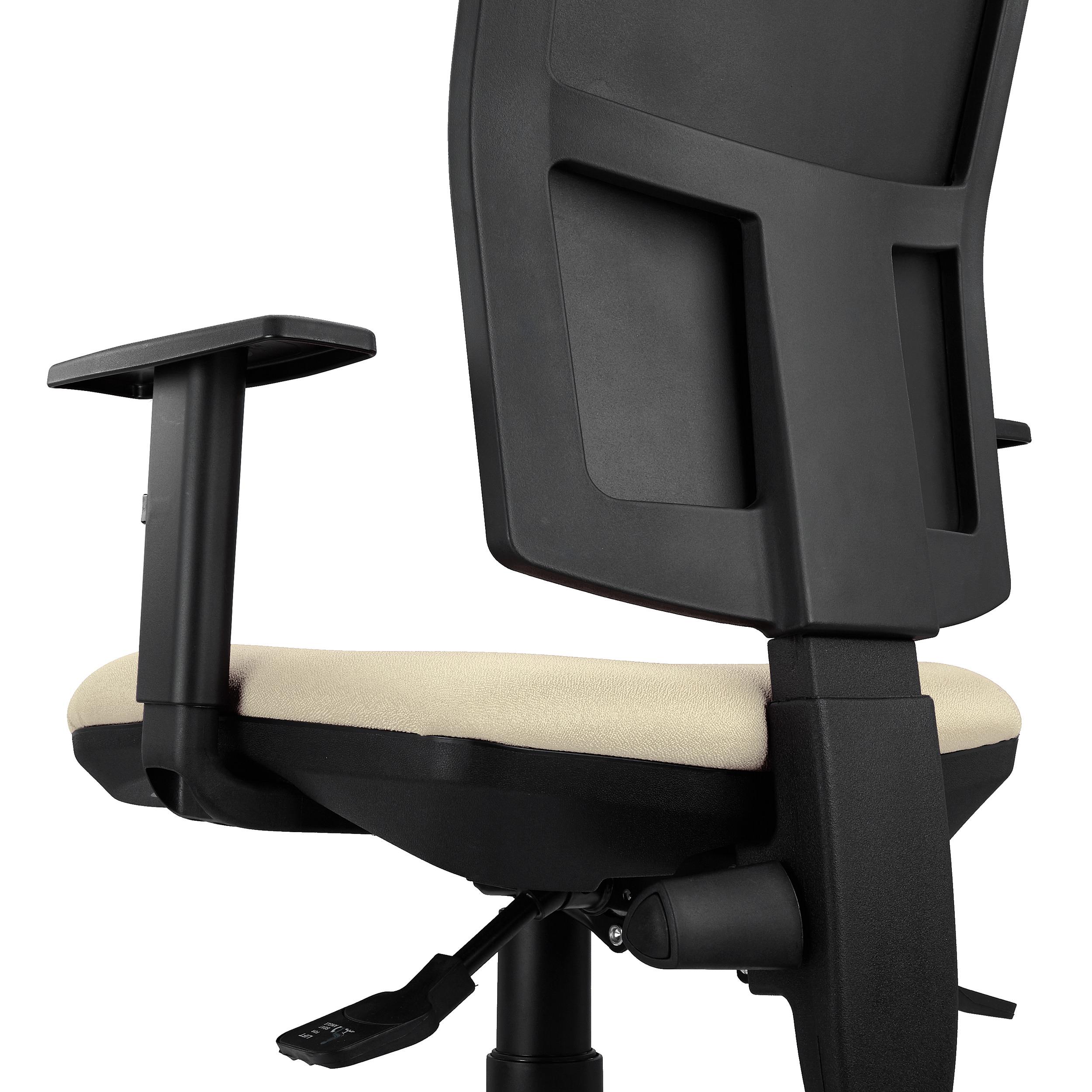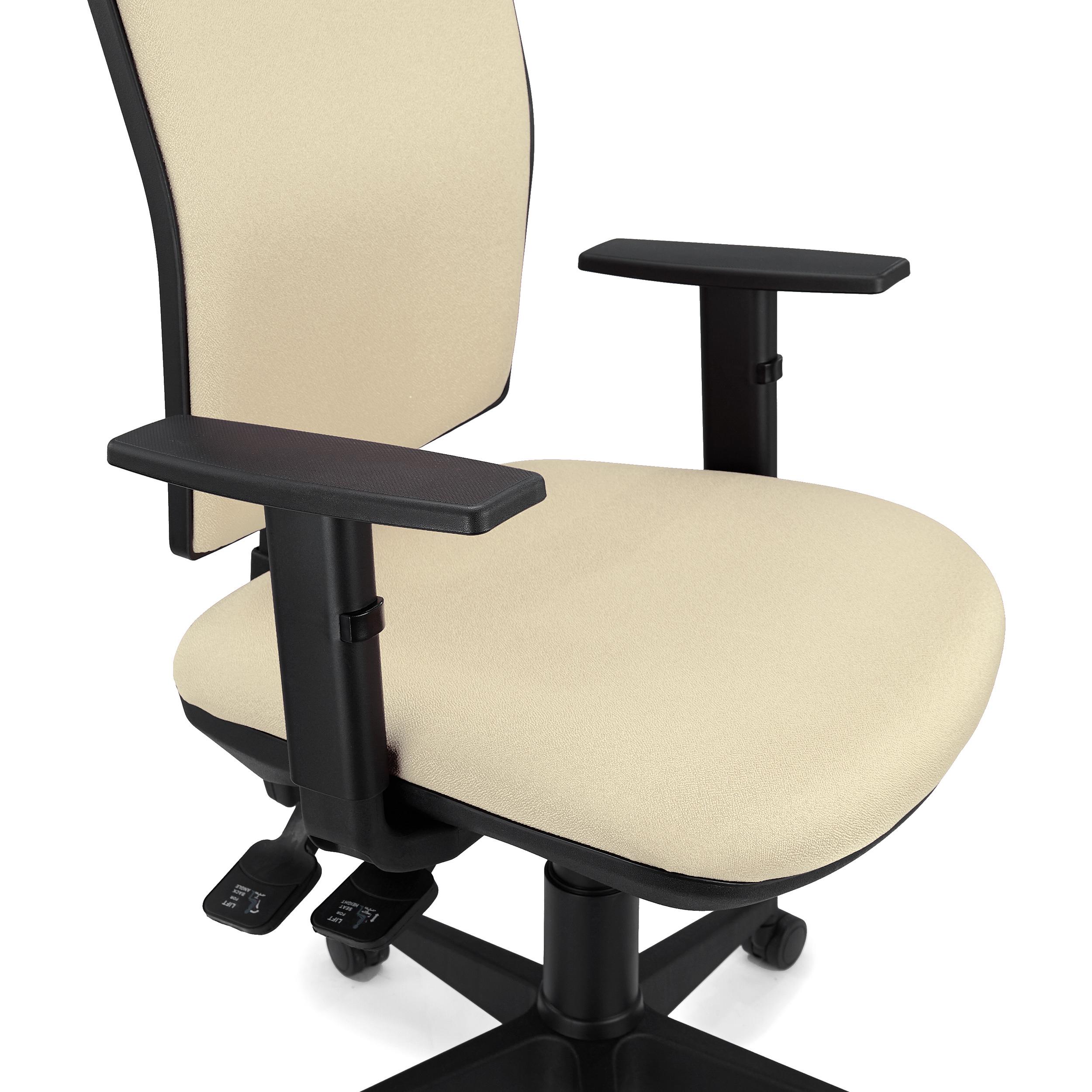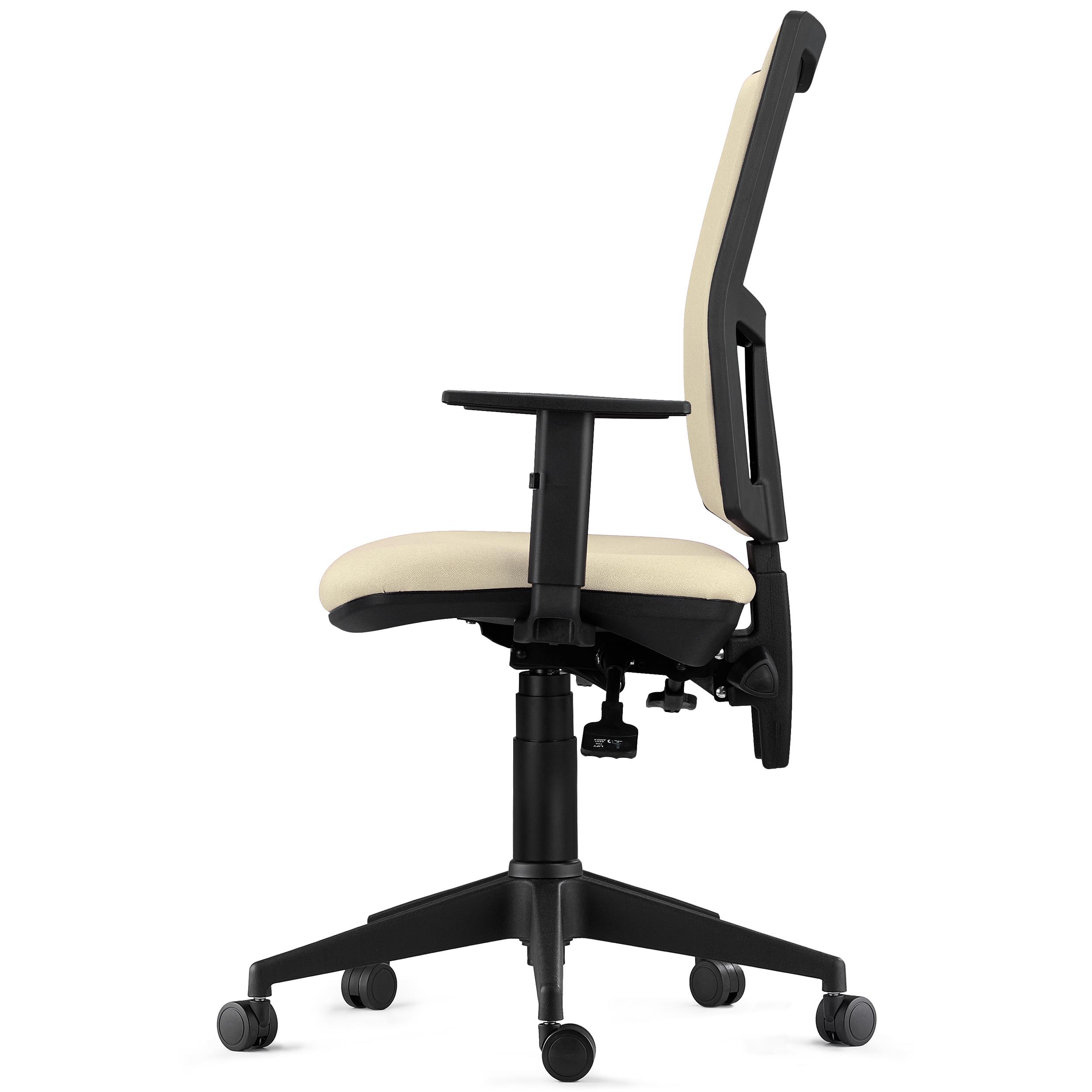 Además, también dispone de respaldo regulable en altura mediante el giro de un pomo situado a la izquierda del mecanismo. La ergonomía, los ajustes y el confort que ofrece este modelo la convierten en una silla apta para uso intensivo de 8 horas/día, perfecta para el uso diario en la oficina.
