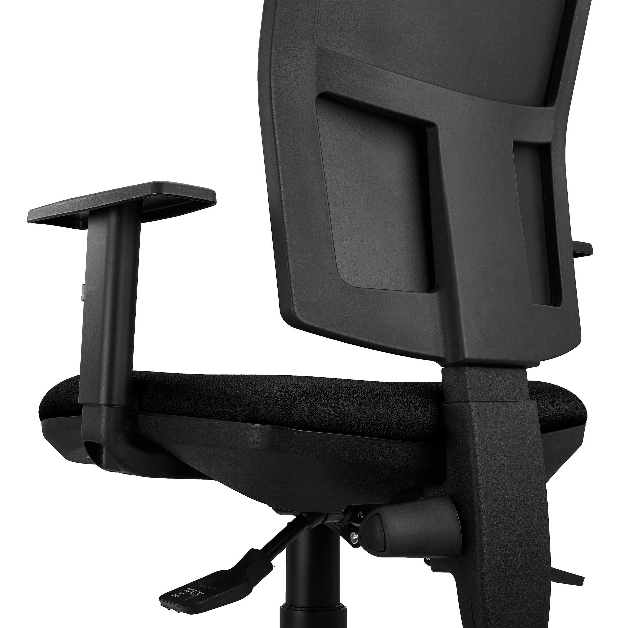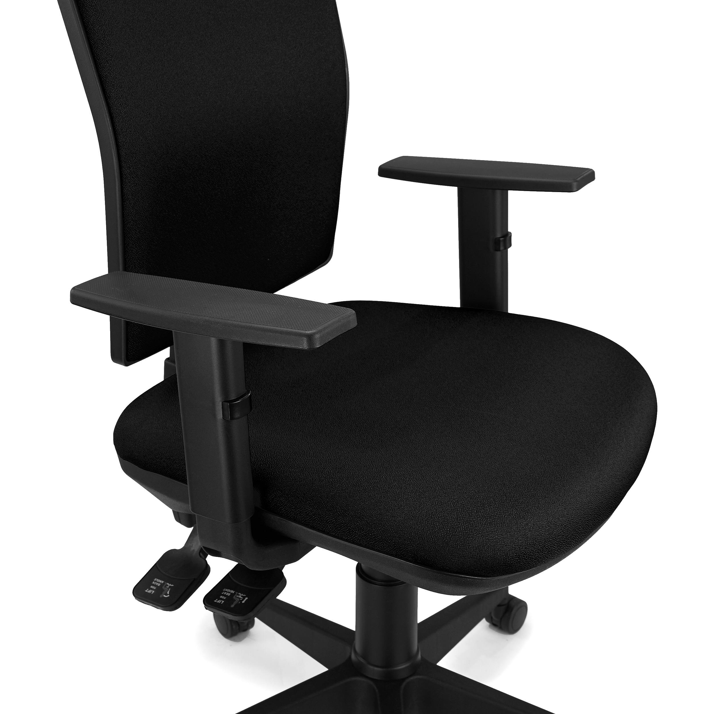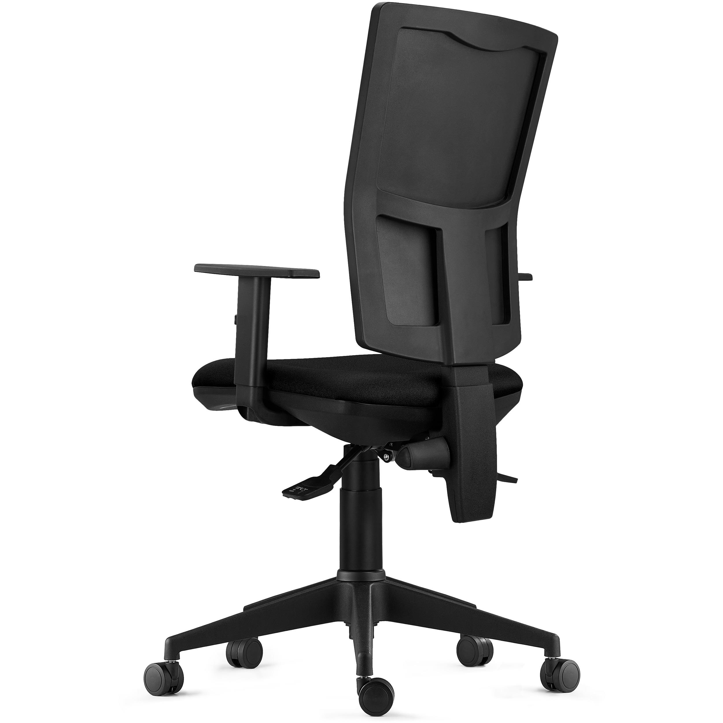 Además, también dispone de respaldo regulable en altura mediante el giro de un pomo situado a la izquierda del mecanismo. La ergonomía, los ajustes y el confort que ofrece este modelo la convierten en una silla apta para uso intensivo de 8 horas/día, perfecta para el uso diario en la oficina.