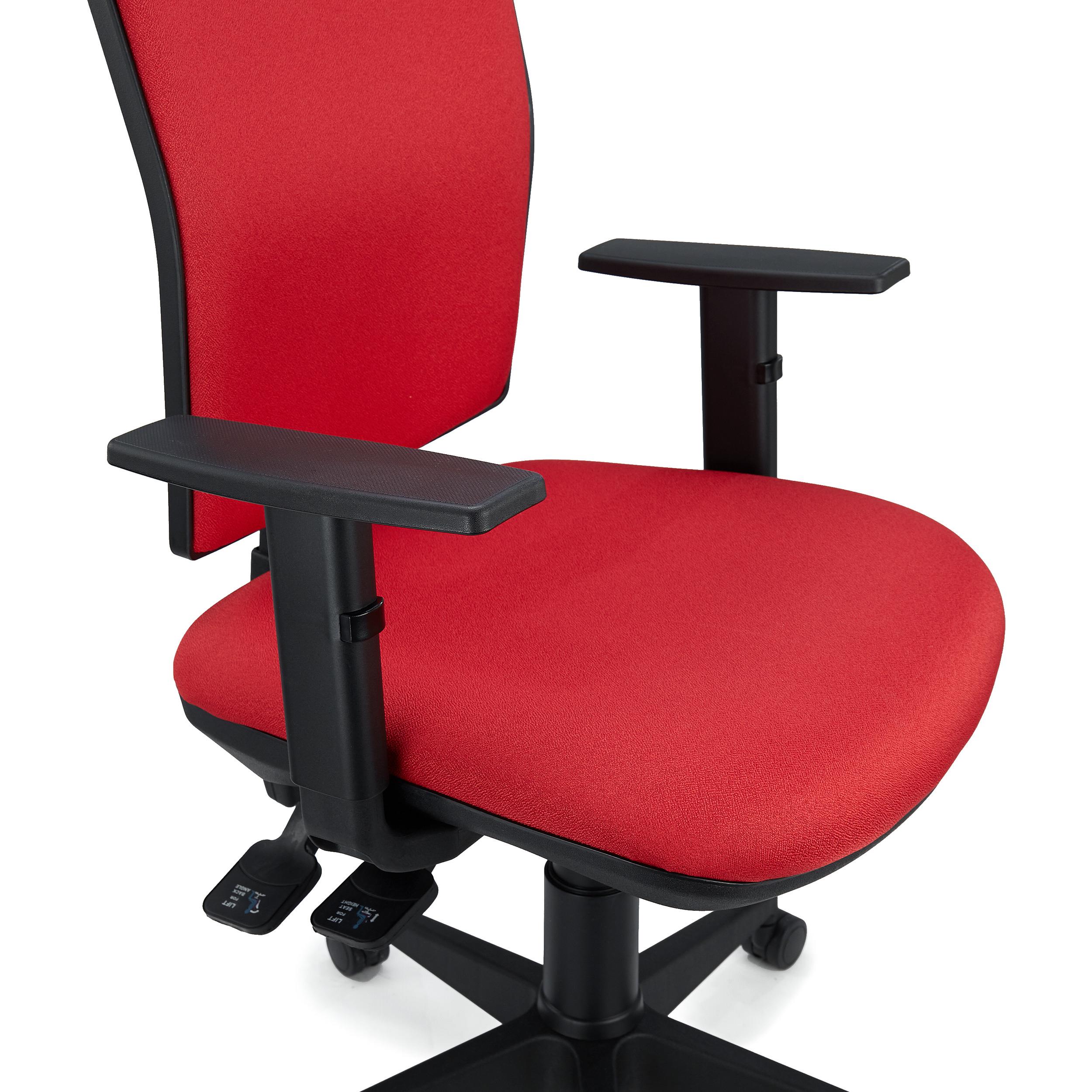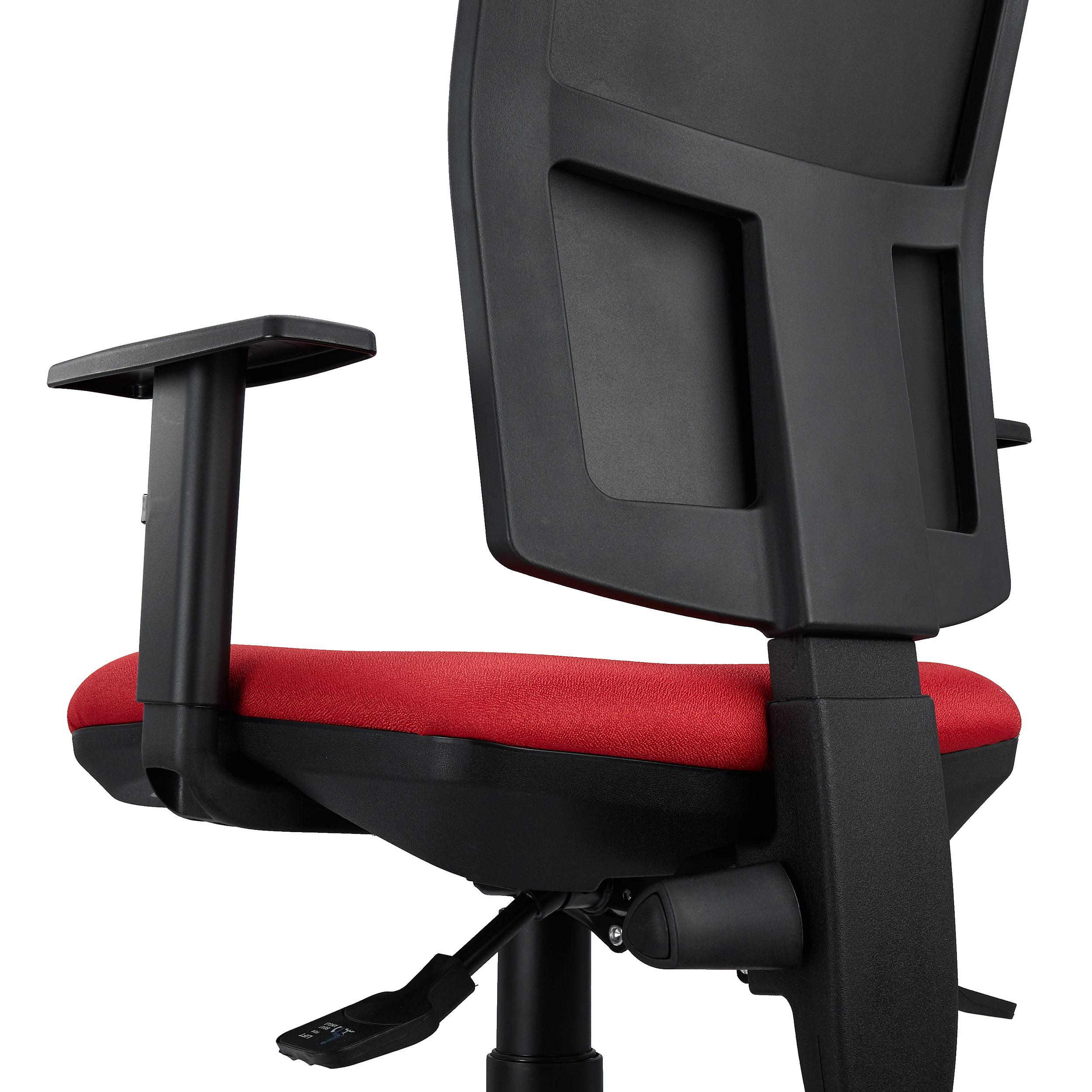 Además, también dispone de respaldo regulable en altura mediante el giro de un pomo situado a la izquierda del mecanismo. La ergonomía, los ajustes y el confort que ofrece este modelo la convierten en una silla apta para uso intensivo de 8 horas/día, perfecta para el uso diario en la oficina.