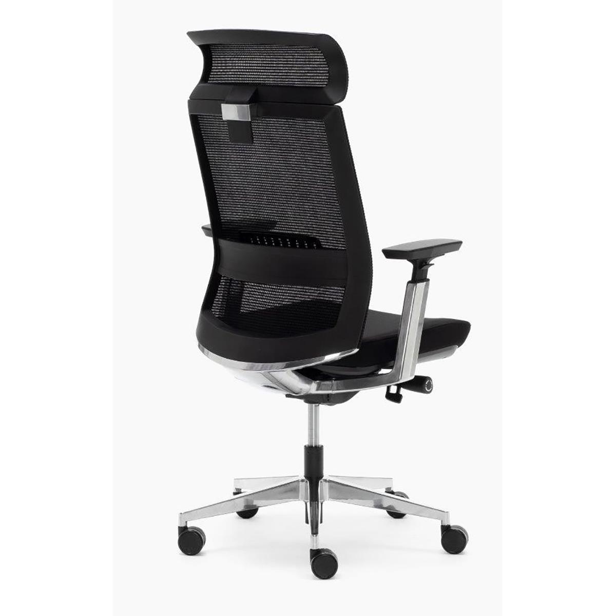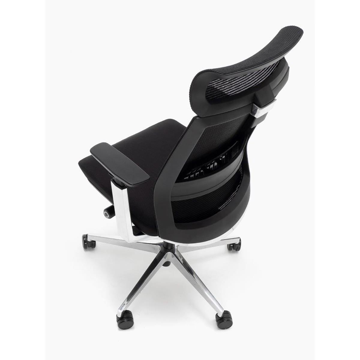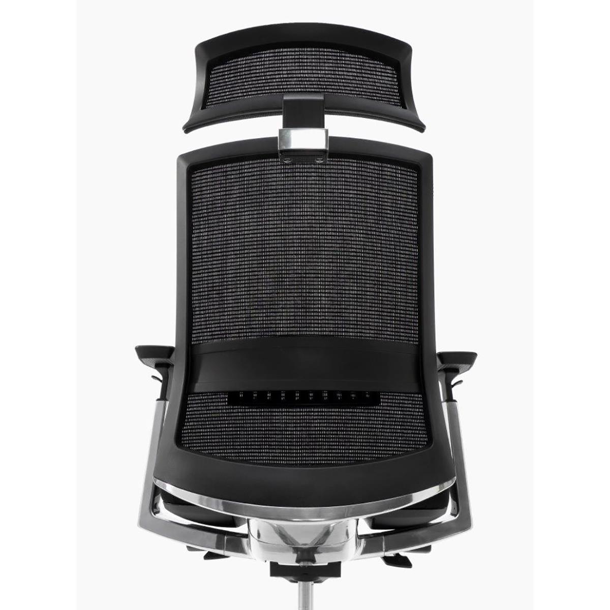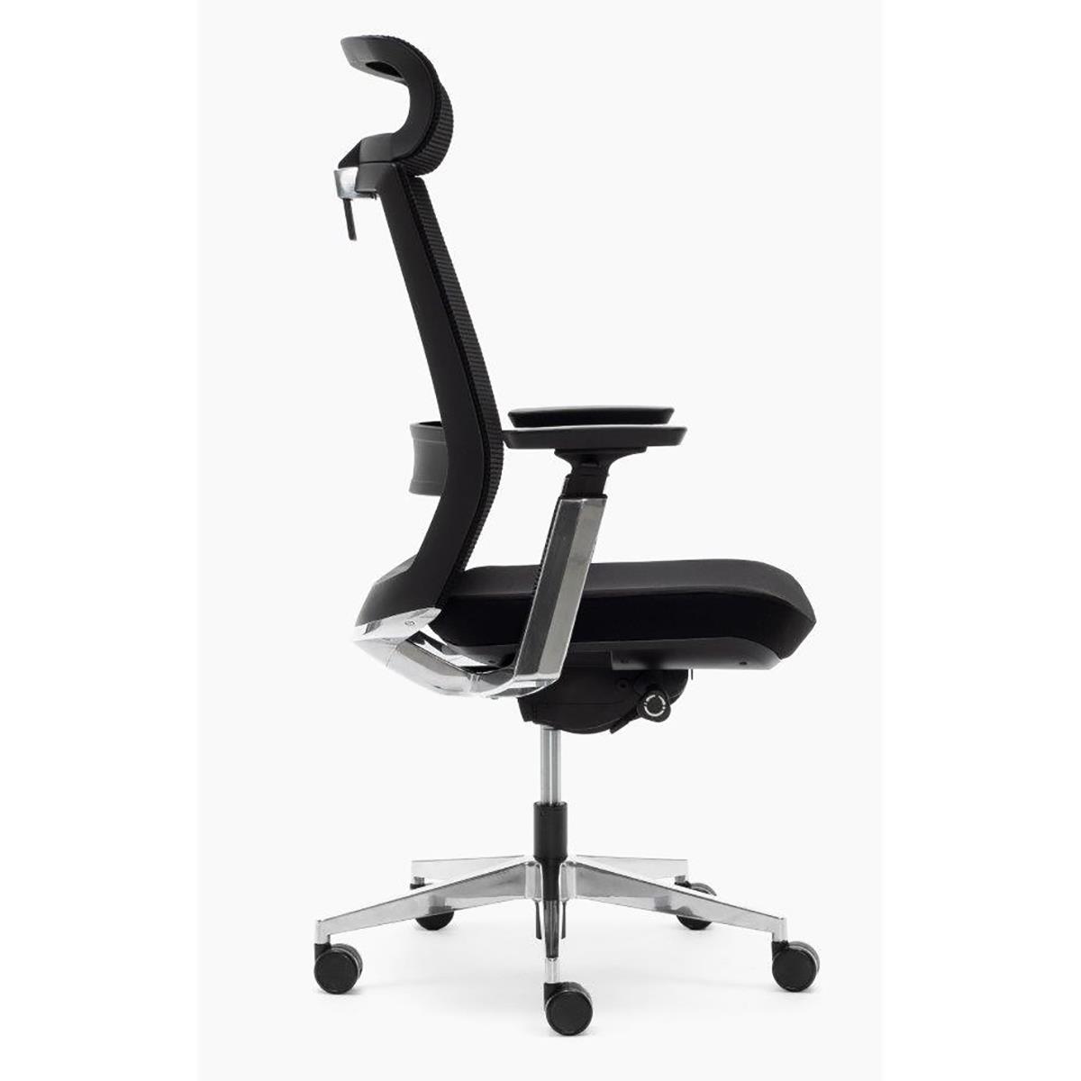 Siguiendo con más elementos adaptables, el reposacabezas tiene regulación en altura y los reposabrazos ajuste 2D (altura y profundidad) con suaves almohadillas. Todas estas regulaciones hacen que está silla esté adaptada para uso intensivo profesional de 8 horas diarias o incluso más.