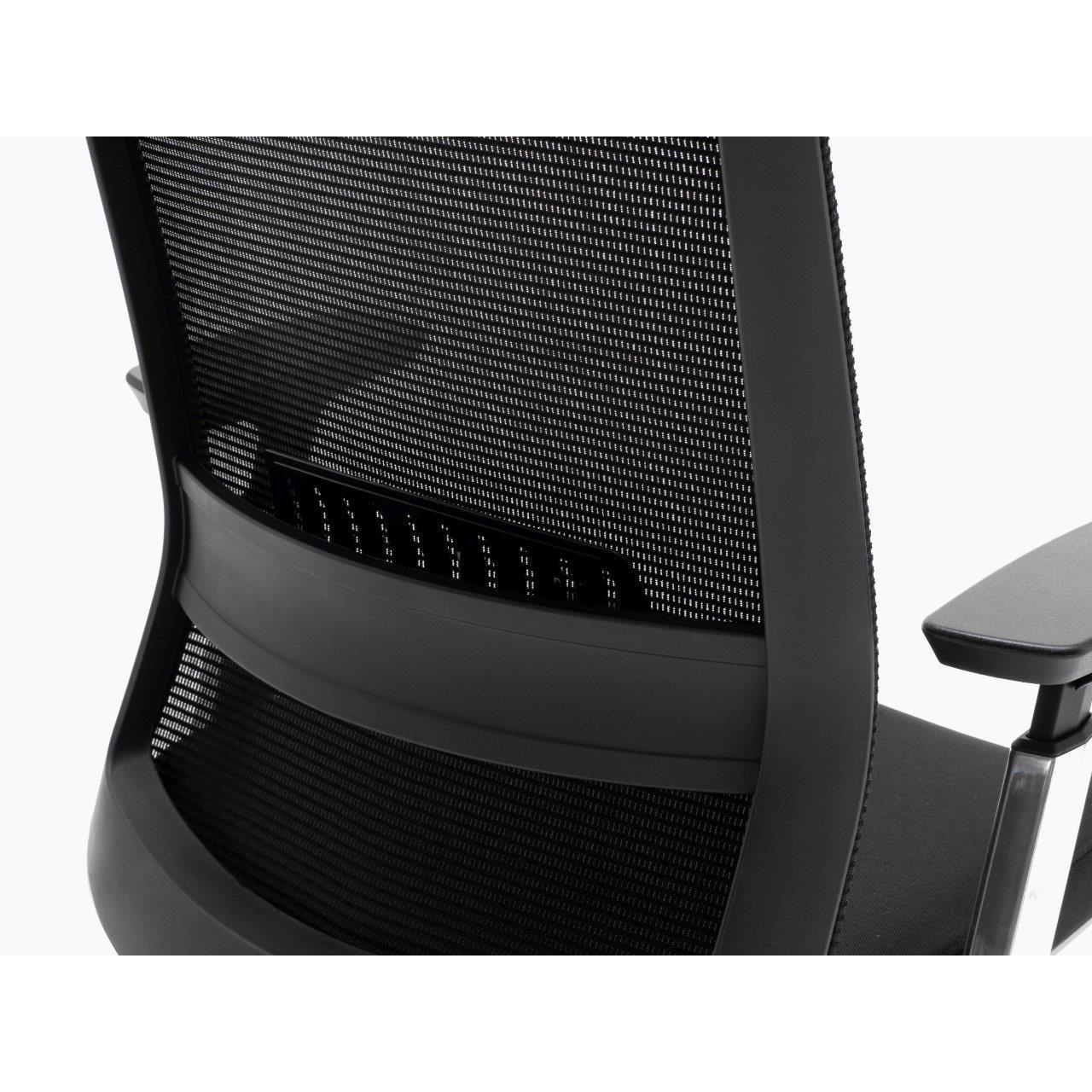 Destaca su amplio y alto respaldo, que incluye un reposacabezas ajustable en altura. Una característica muy interesante si buscas una silla que cubra bien la espalda y cabeza. Las formas ergonómicas están enfocadas a lograr una postura perfecta, algo a lo que contribuye su soporte lumbar, el cual es ajustable en altura.