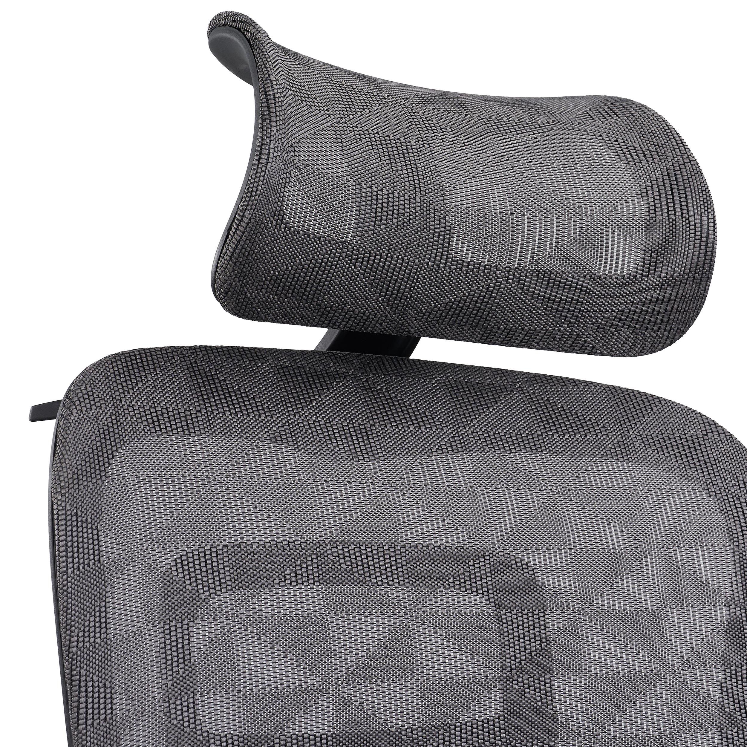 Los reposabrazos con ajuste 3D (altura, profundidad y ángulo) son cómodos, prácticos y tienen suaves almohadillas de goma en la parte superior. El reposacabezas, que destaca por su amplitud, actúa casi como una prolongación del respaldo. Un detalle exclusivo de este modelo es que tiene una percha para colgar una chaqueta en la parte trasera, integrada en la estructura del reposacabezas.