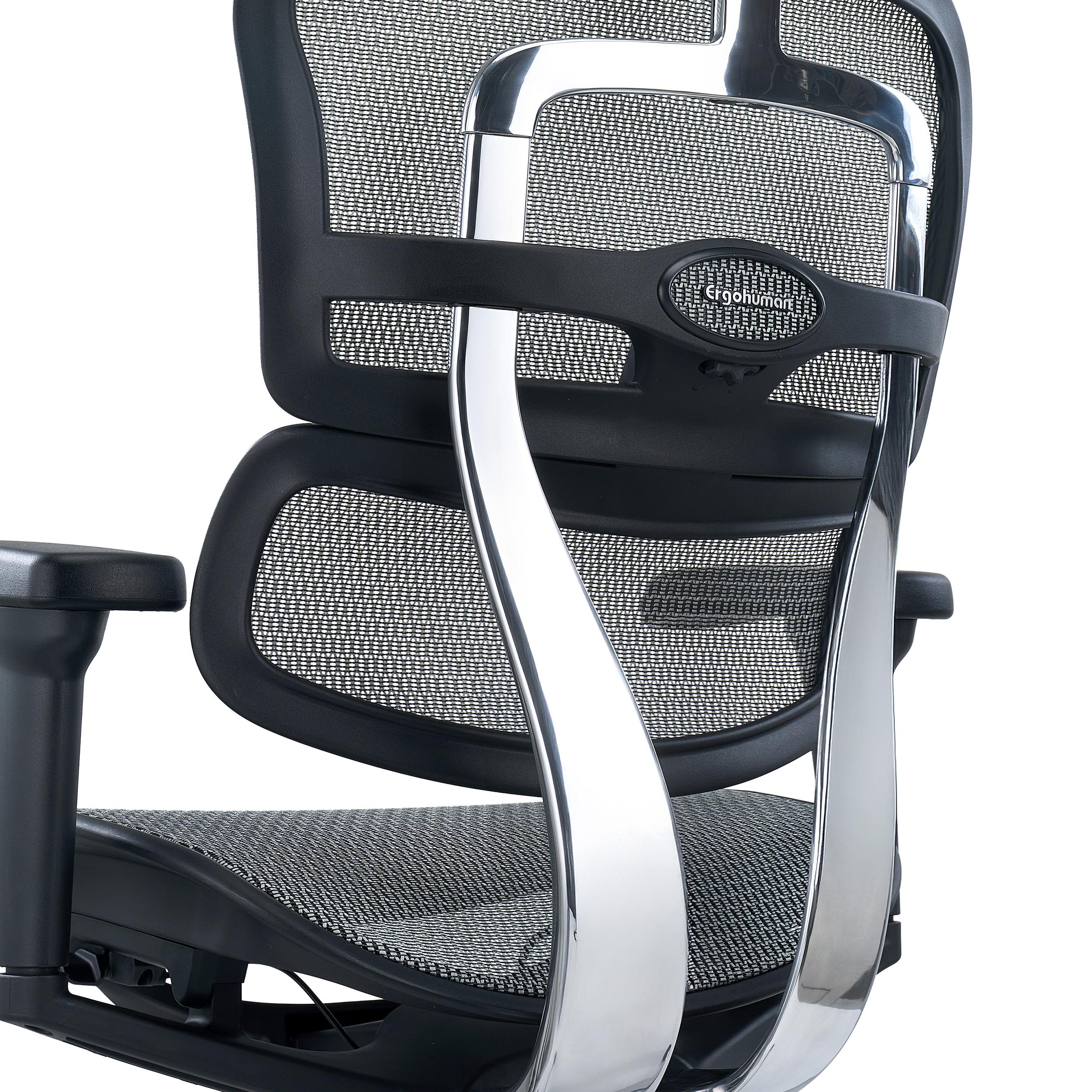 El respaldo es totalmente ergonómico, ajustable en altura y con soporte lumbar. El bastidor del mismo está realizado en aluminio pulido, lo que aporta un acabado exclusivo y una solidez y durabilidad de máximo nivel. Tiene 6 posiciones de altura, por lo que se adapta perfectamente a la talla del usuario.