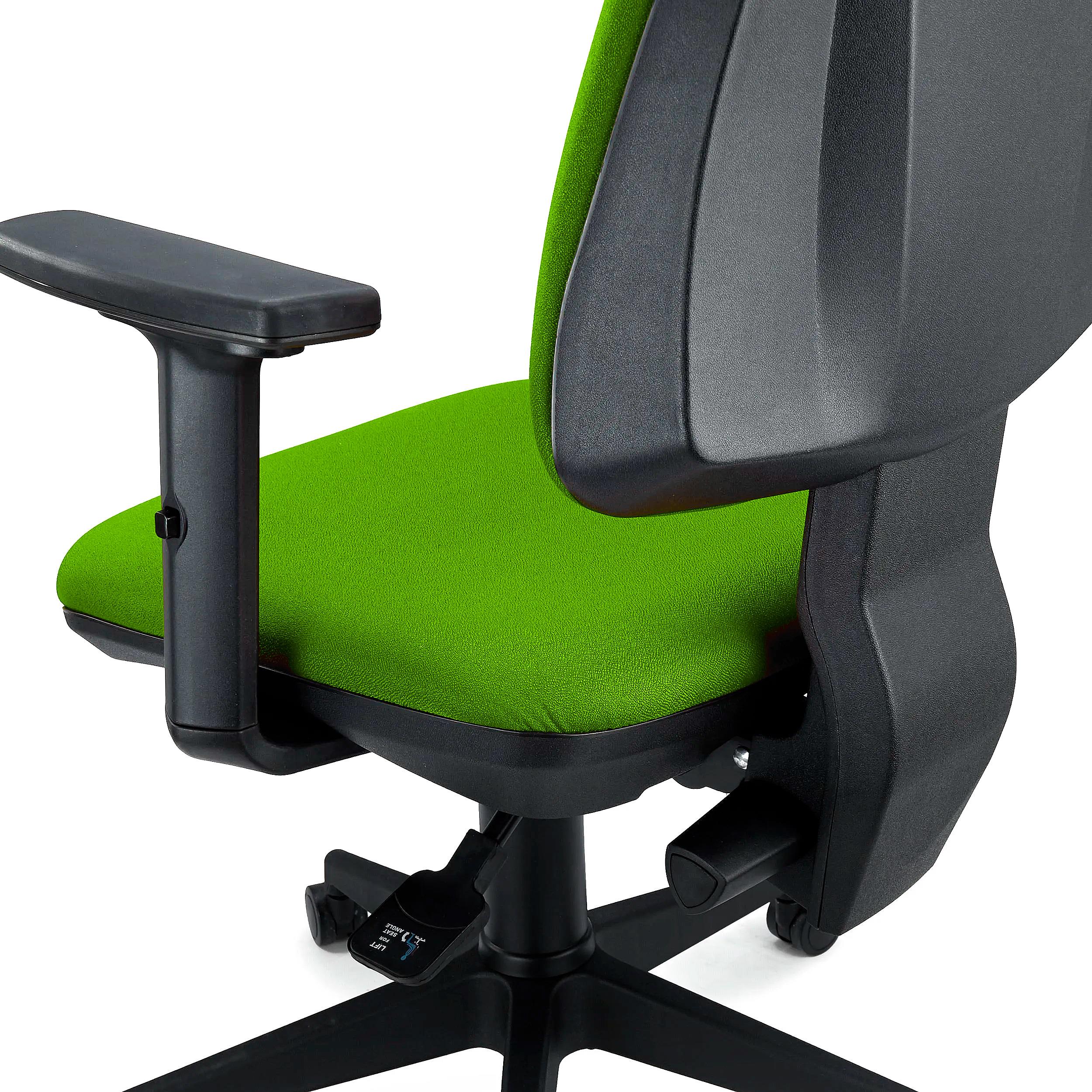 Cabe destacar también que el respaldo es ajustable en altura, para poder colocar en la posición más apropiada para cada usuario. El confort, la ergonomía y los citados ajustes hacen que ésta sea una silla apta para uso intensivo de 8 horas/día, perfecta para uso profesional tanto en la oficina como en casa.