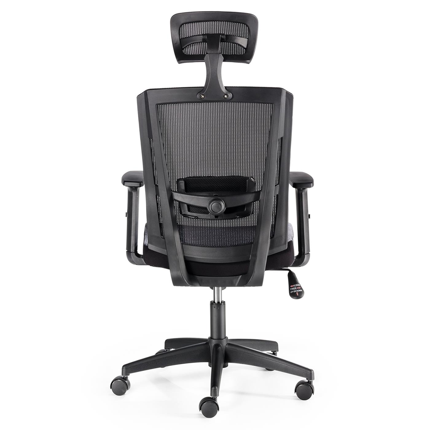 Estamos ante una silla que a primera vista destaca por su diseño de líneas modernas, pero también sobresale por el confort que ofrece al usuario. El respaldo ergonómico asegura una saludable postura y el soporte lumbar ajustable  permite un mejor apoyo en la parte baja de la espalda. El agradable tapizado en malla transpirable aumenta la sensación de confort.