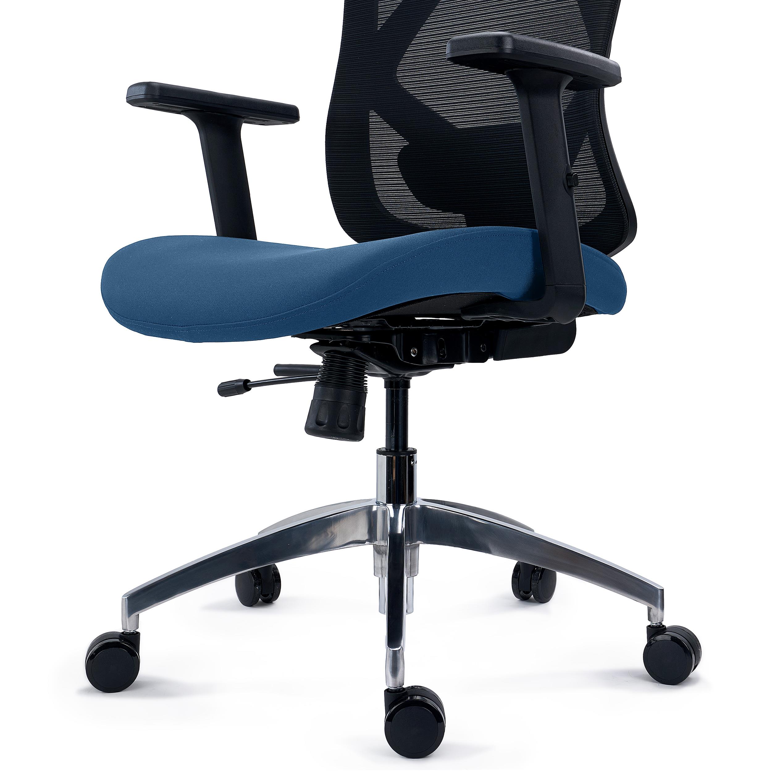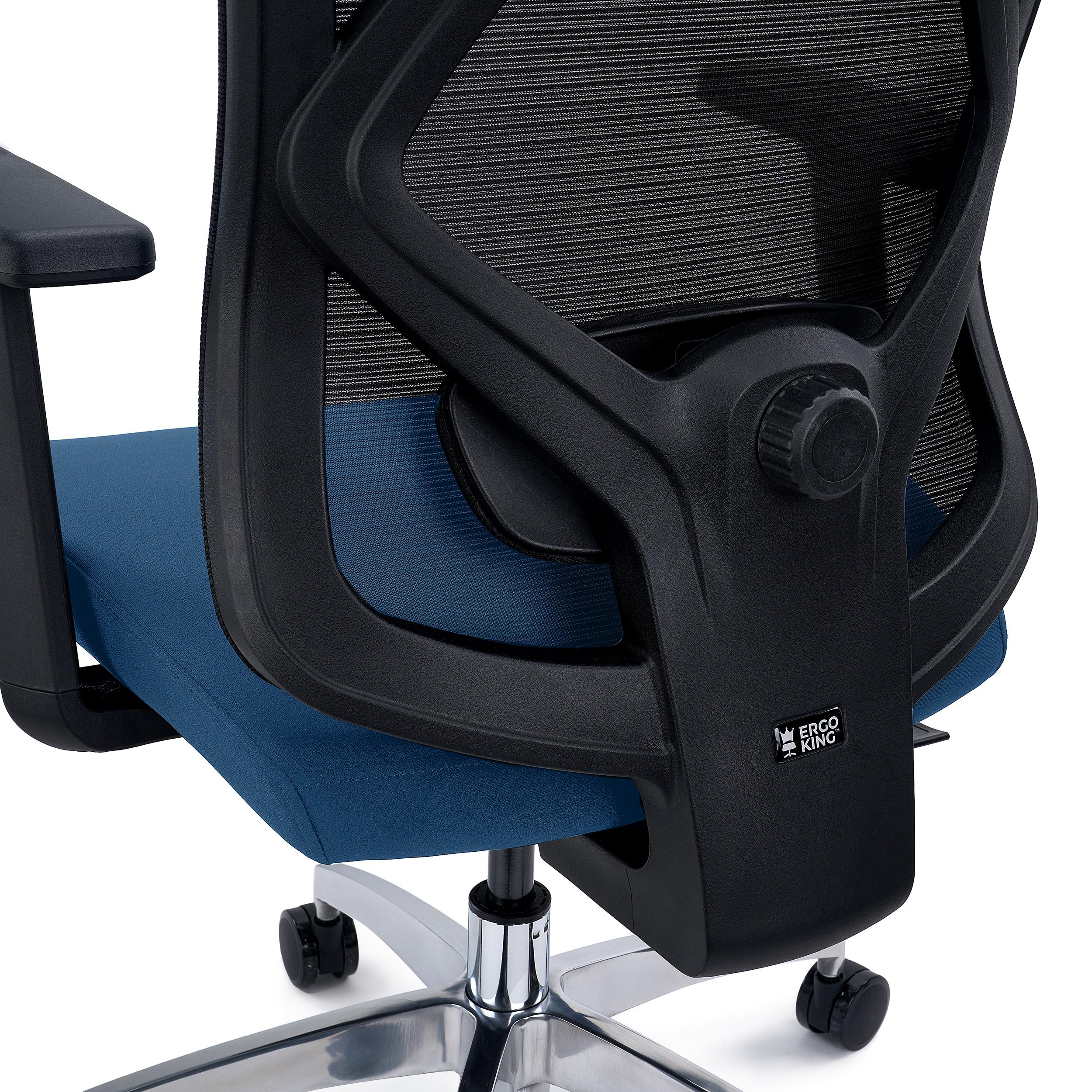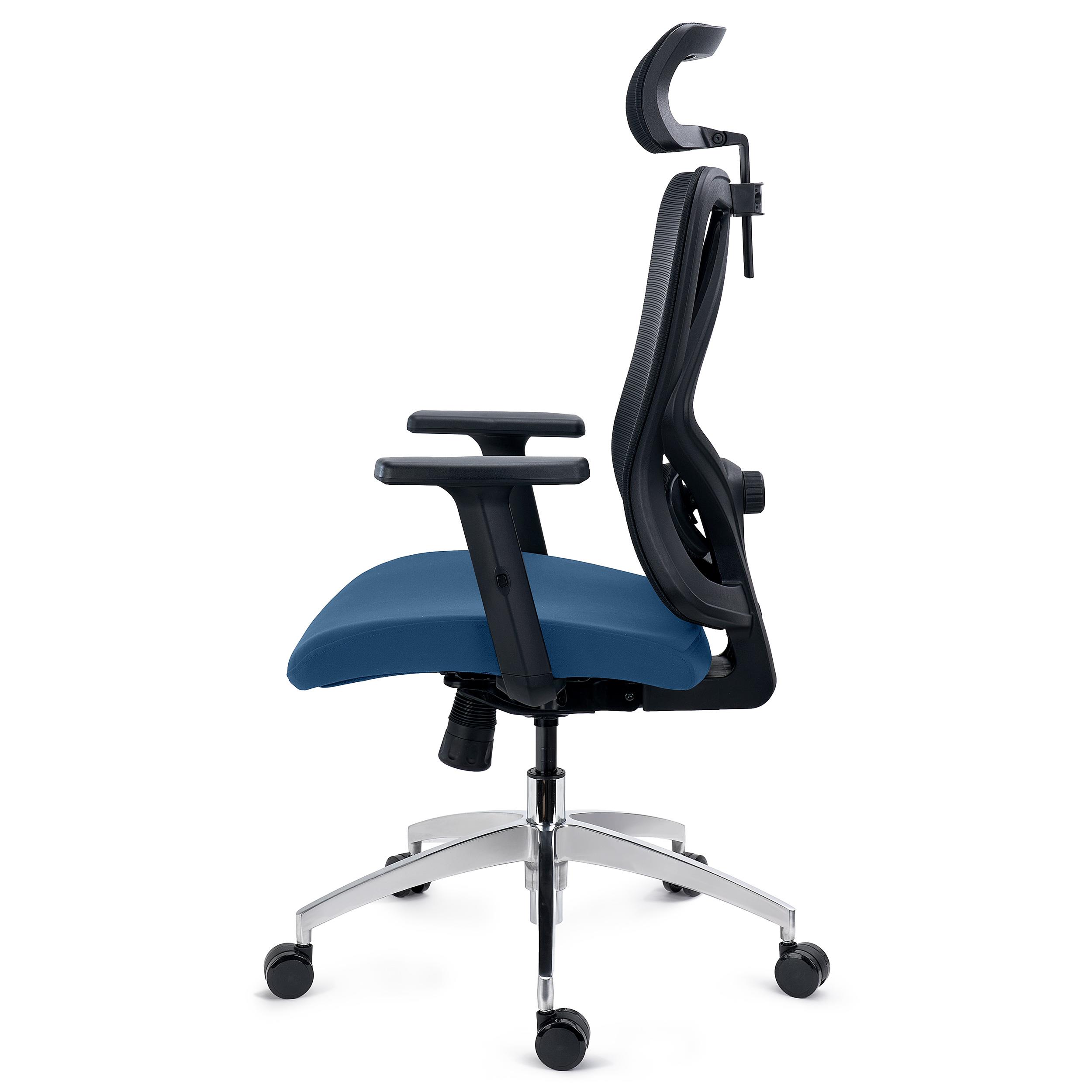 Su respaldo es ergonómico, tapizado en malla 100% transpirable con un elegante patrón de líneas horizontales. El soporte lumbar que incluye es exclusivo, ya que es ajustable en profundidad, ángulo y altura. Estos ajustes permiten un óptimo refuerzo de la espalda baja, lo que se traduce en mayor confort. imprescindible en largas jornadas de trabajo.