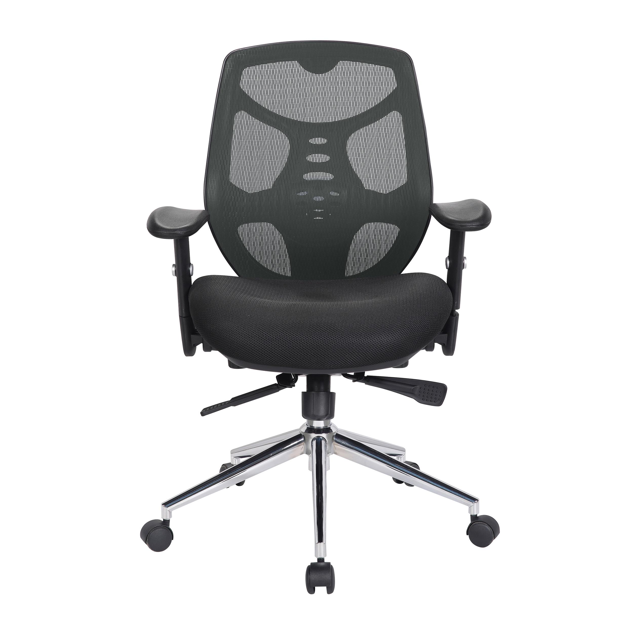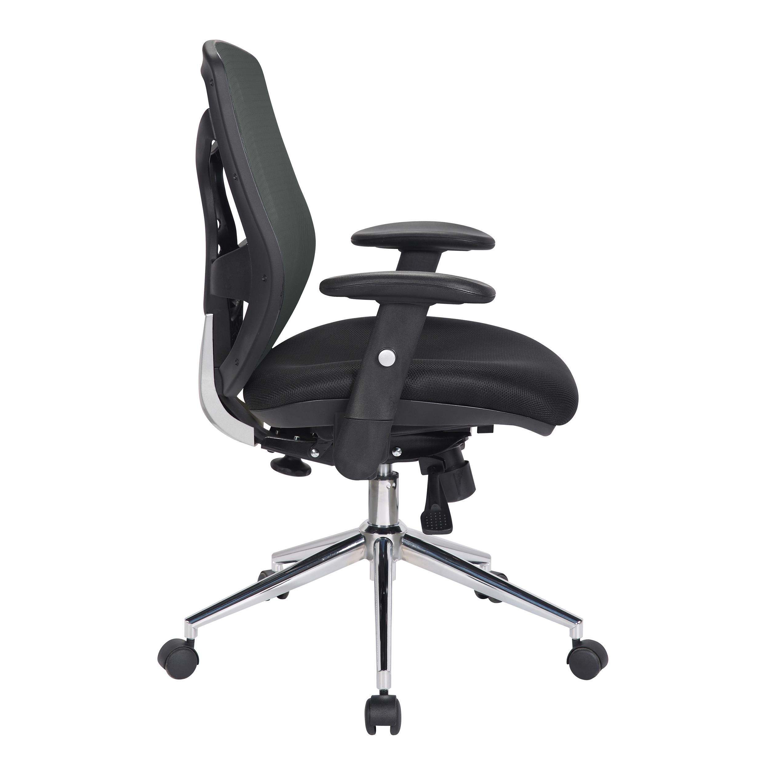 El respaldo sin duda es uno de los puntos clave: su sofisticado diseño esconde una comodidad superior. Es ergonómico, tiene soporte lumbar y está tapizado en malla transpirable resistente. Notarás la diferencia desde el primer instante, ya que se consigue adoptar una correcta postura para trabajar cómodamente durante horas.