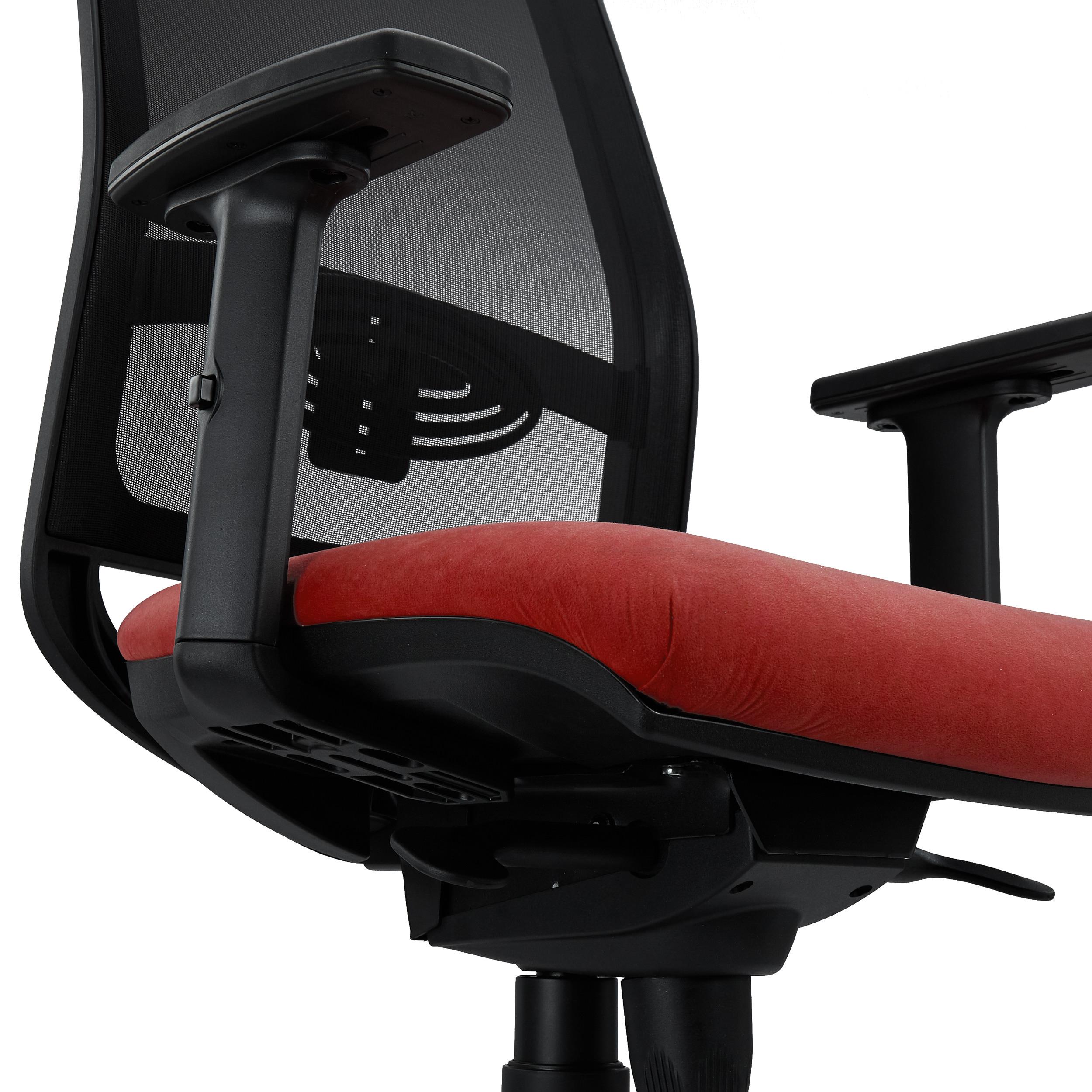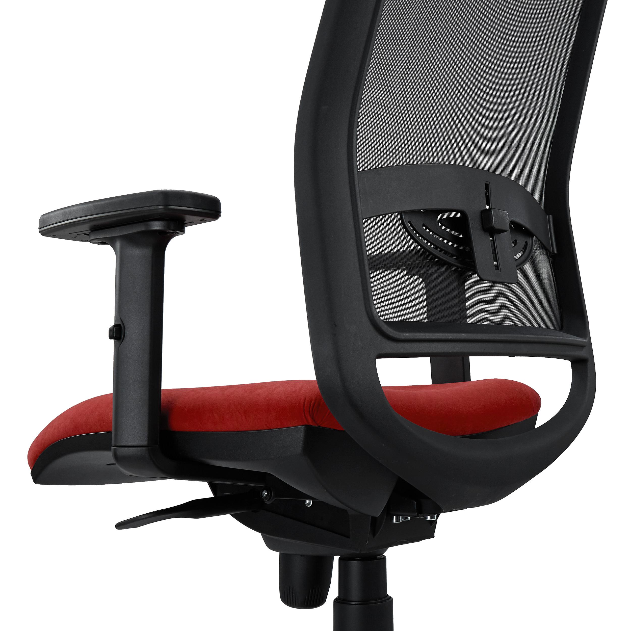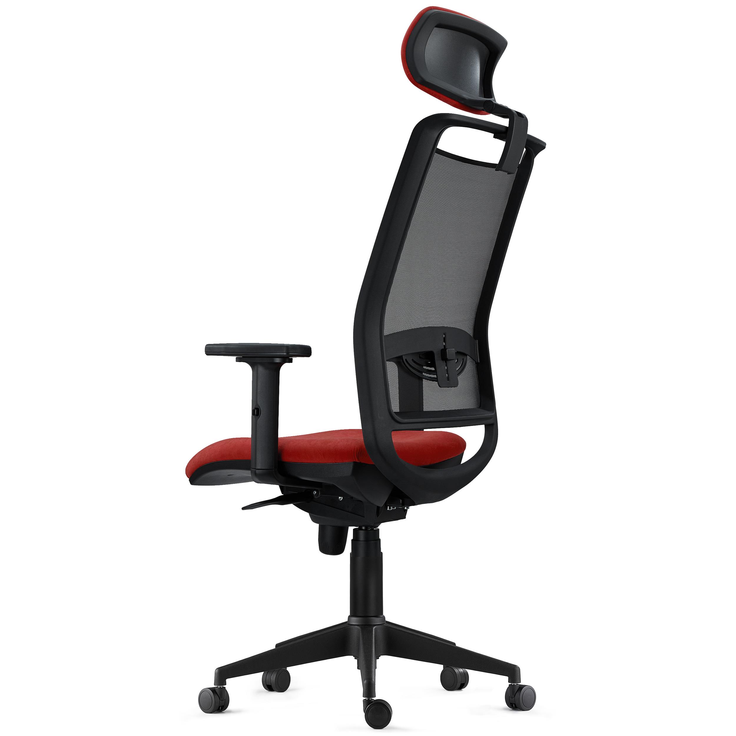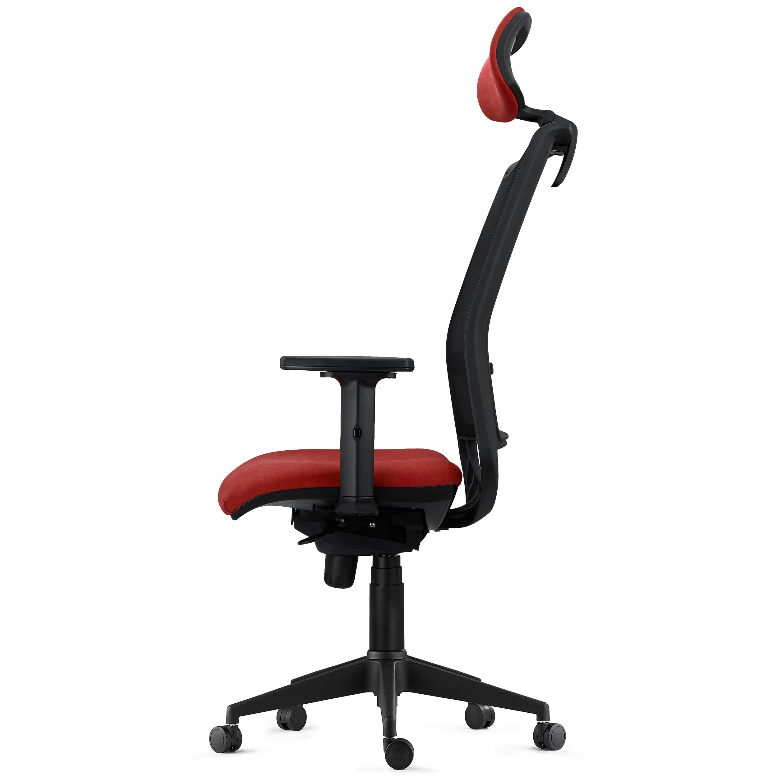Sobresale también en el campo del confort. Su estudiado diseño ergonómico es uno de los factores clave de esta silla, pues procura que el usuario mantenga en todo momento una postura saludable. El grueso acolchado de alta densidad del asiento (30 kg/m3) y el soporte lumbar ajustable en altura confieren al usuario una alta dosis de confort. Además, sus brazos ajustables en altura ofrecen un buen punto de apoyo y tambíen dispone de reposacabezas tapizado regulable en altura e inclinación.