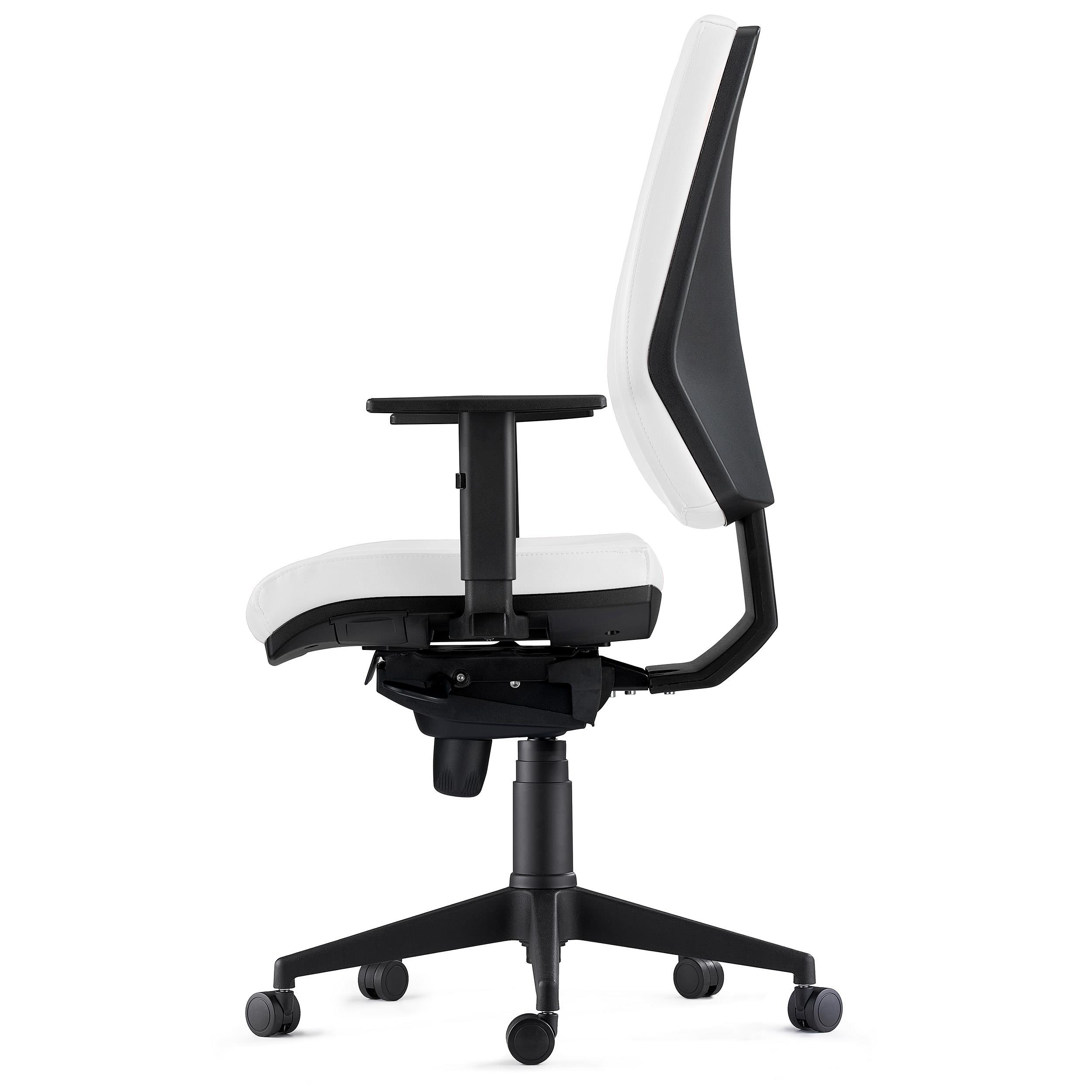 DEMO# Silla Ergonómica OLIVER, Piel Real Blanca, Uso 8 Horas, Grueso Acolchado