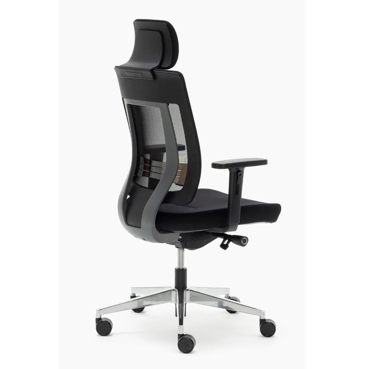Se ha puesto especial cuidado en la fabricación y materiales de este exclusivo modelo. La base en aluminio pulido aporta un punto estético diferencial, además de lograr una excelente solidez y resistencia. Lo mismo ocurre con la malla transpirable del respaldo y la tela del asiento, diseñados para soportar un uso muy exigente. Las ruedas tienen recubrimiento de goma para utilizarlas con total tranquilidad.