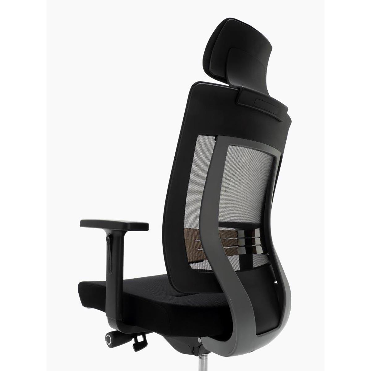 Su respaldo ergonómico en malla transpirable es realmente cómodo. Perfecto para lograr la postura perfecta teniendo en cuenta que tiene soporte lumbar ajustable en altura. Como podrás ver, estamos hablando de una silla orientada a un uso exigente.