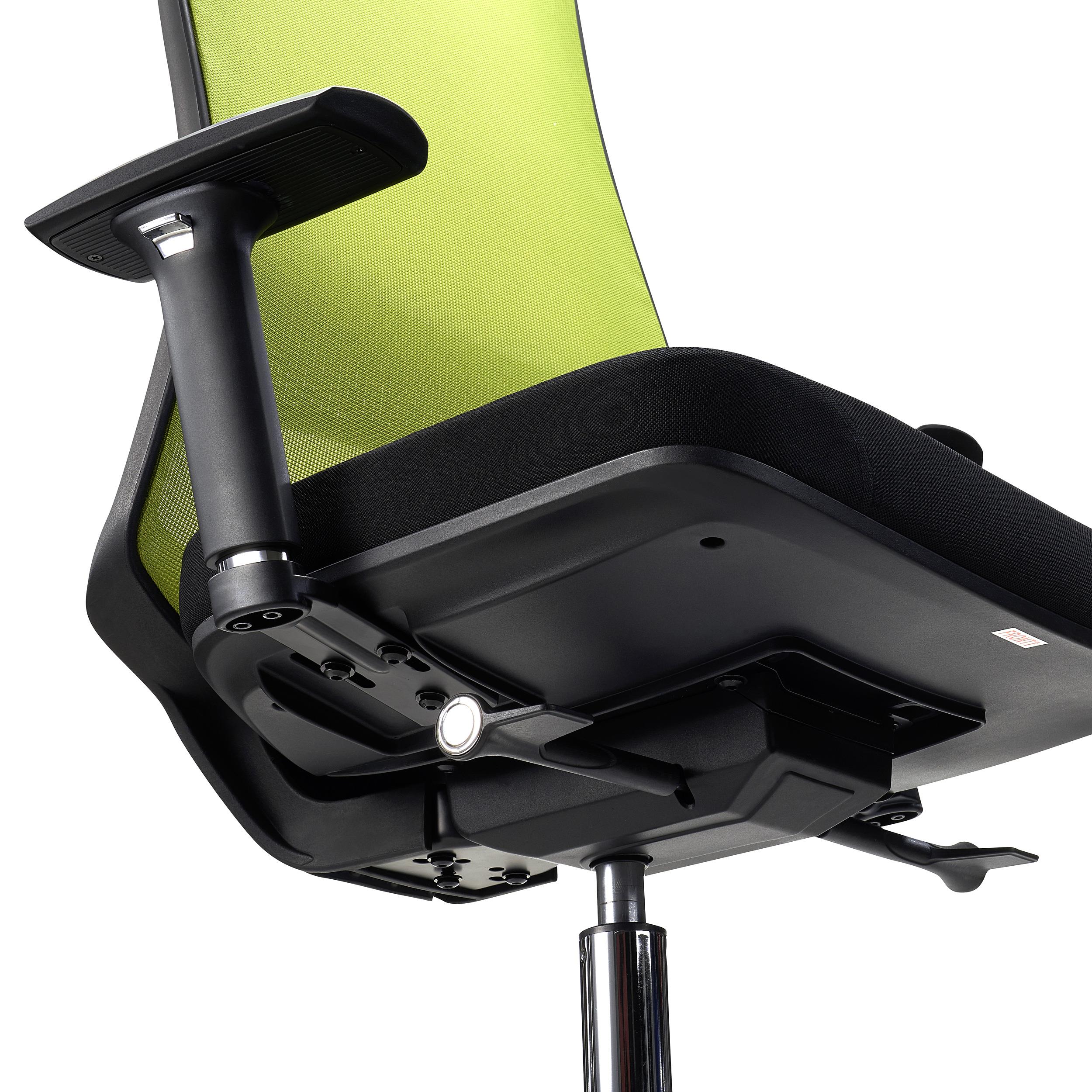 Su respaldo en malla 100% transpirable, con formas ergonómicas y soporte lumbar convierten a esta silla en un modelo especialmente cómodo. Esta parte ha sido especialmente diseñada para que la espalda tenga un óptimo apoyo, destacando en este sentido su apoyo lumbar ajustable en altura.