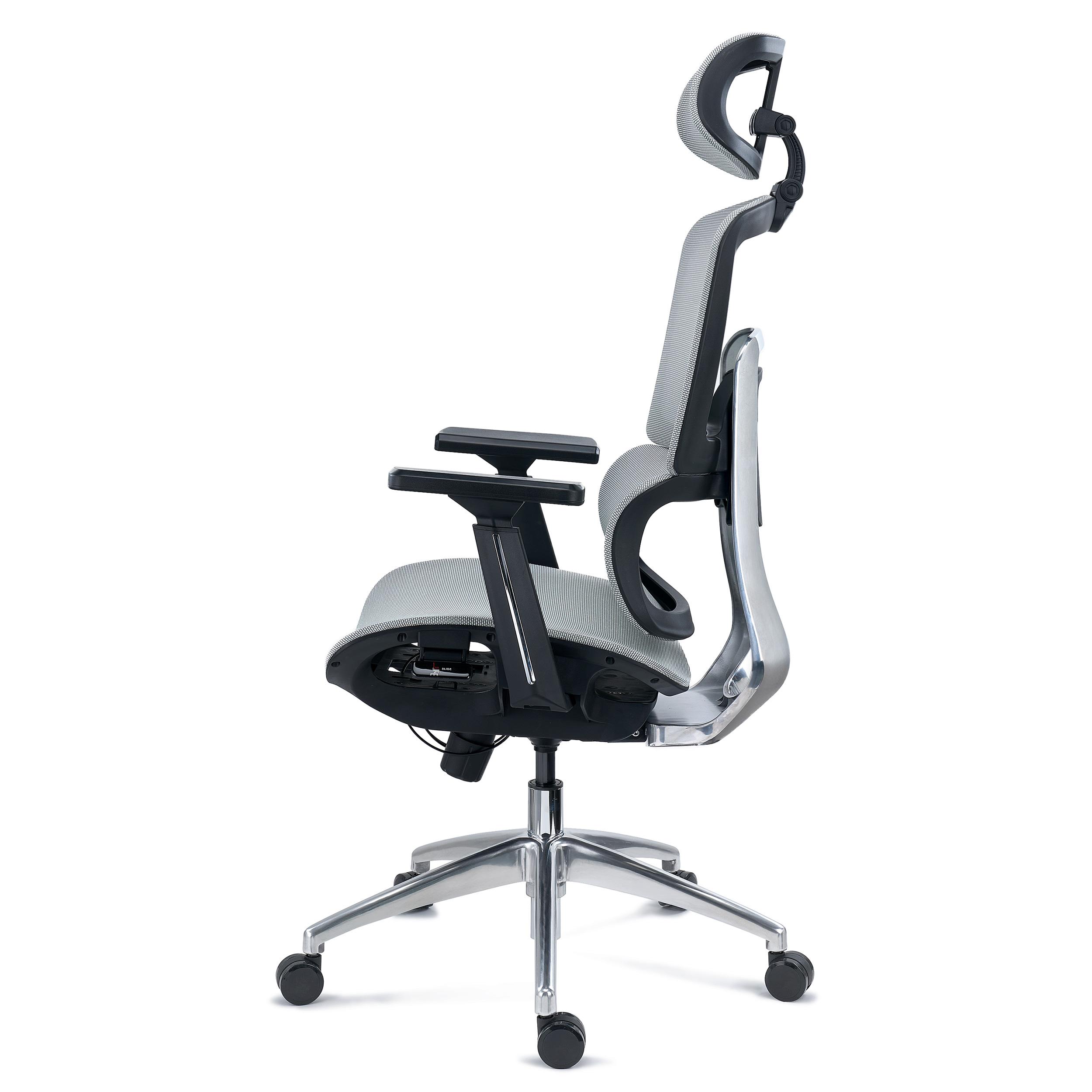 DEMO# Silla Ergonómica TITAN, Base y Marco Aluminio, Asiento Ajustable Profundidad, Brazos 3D, Gris