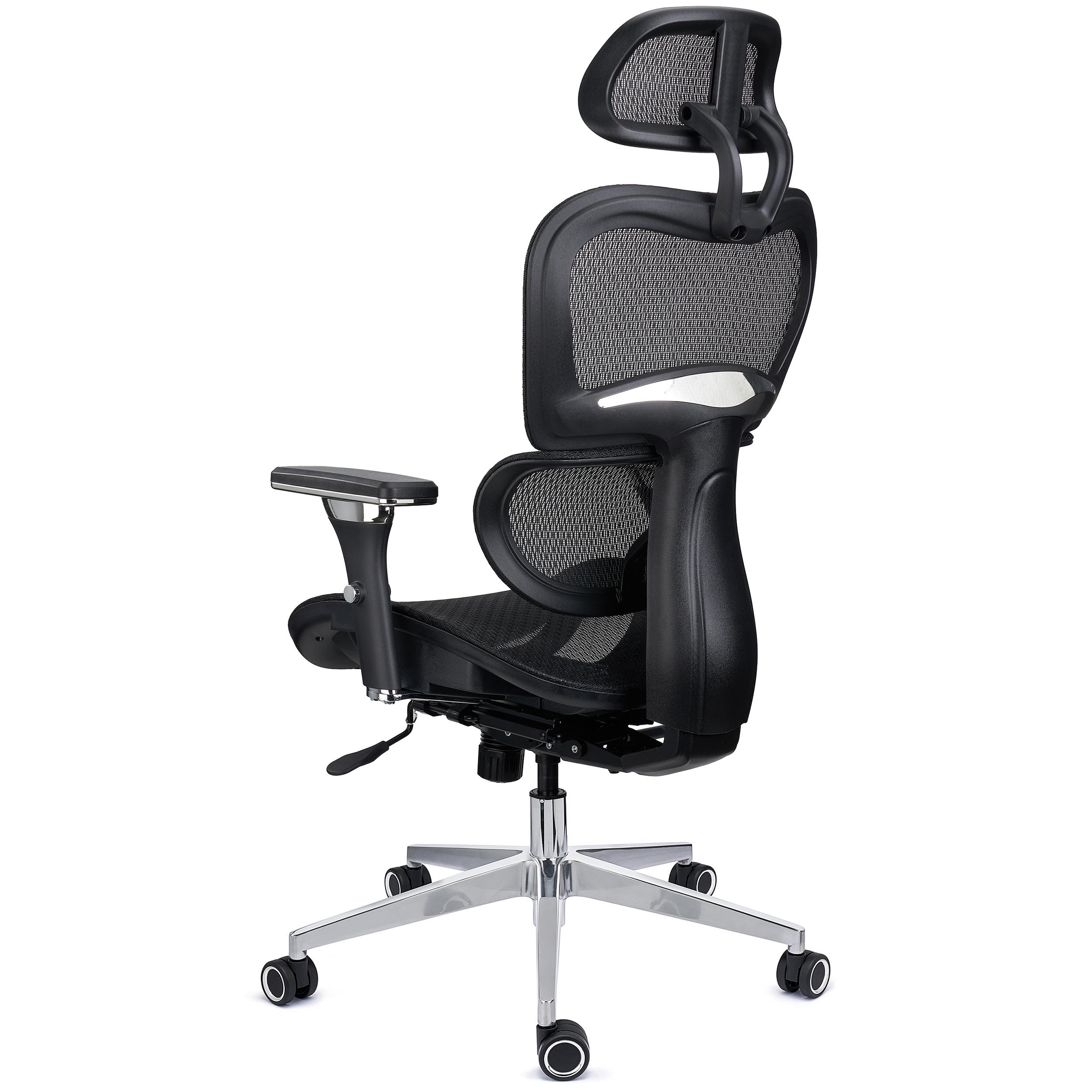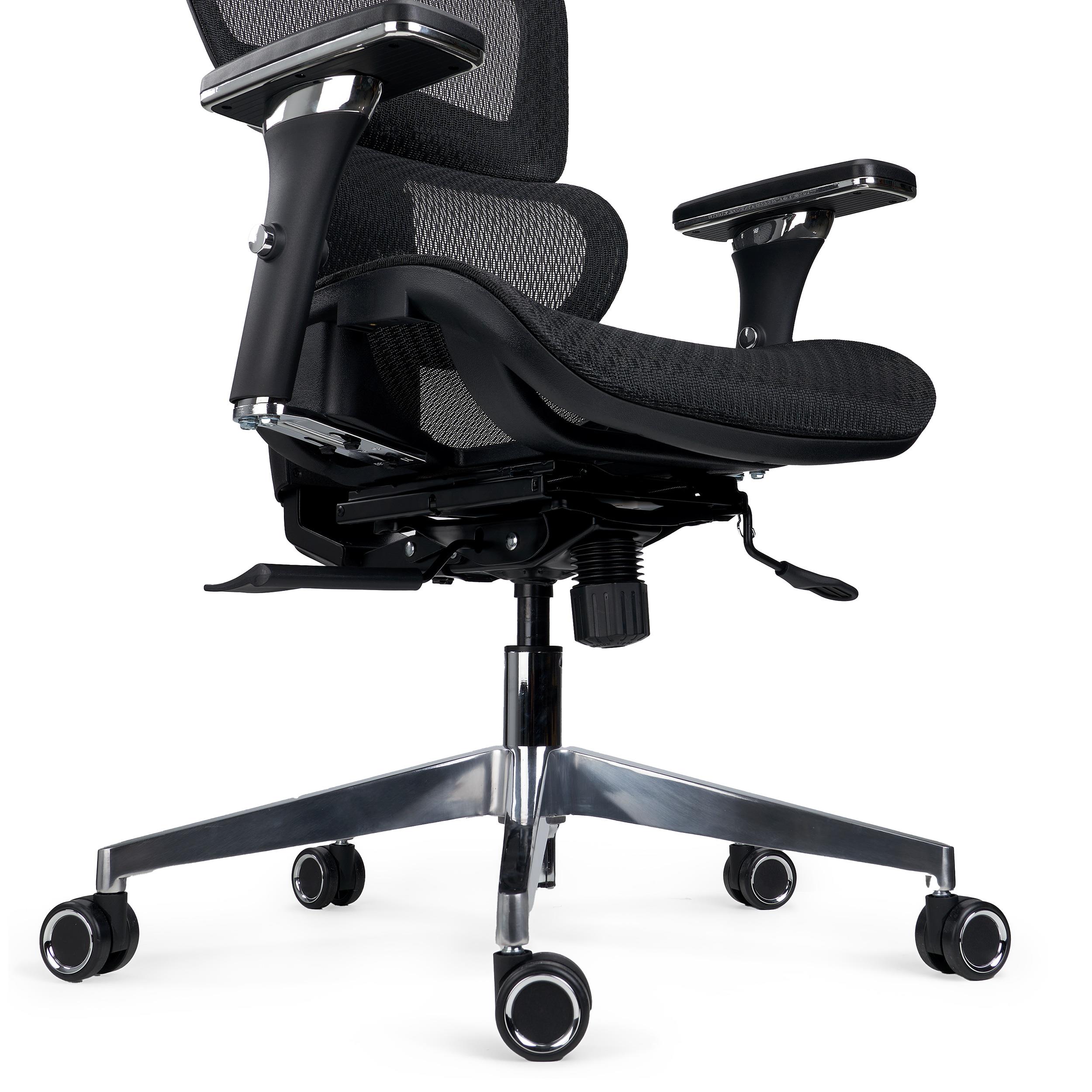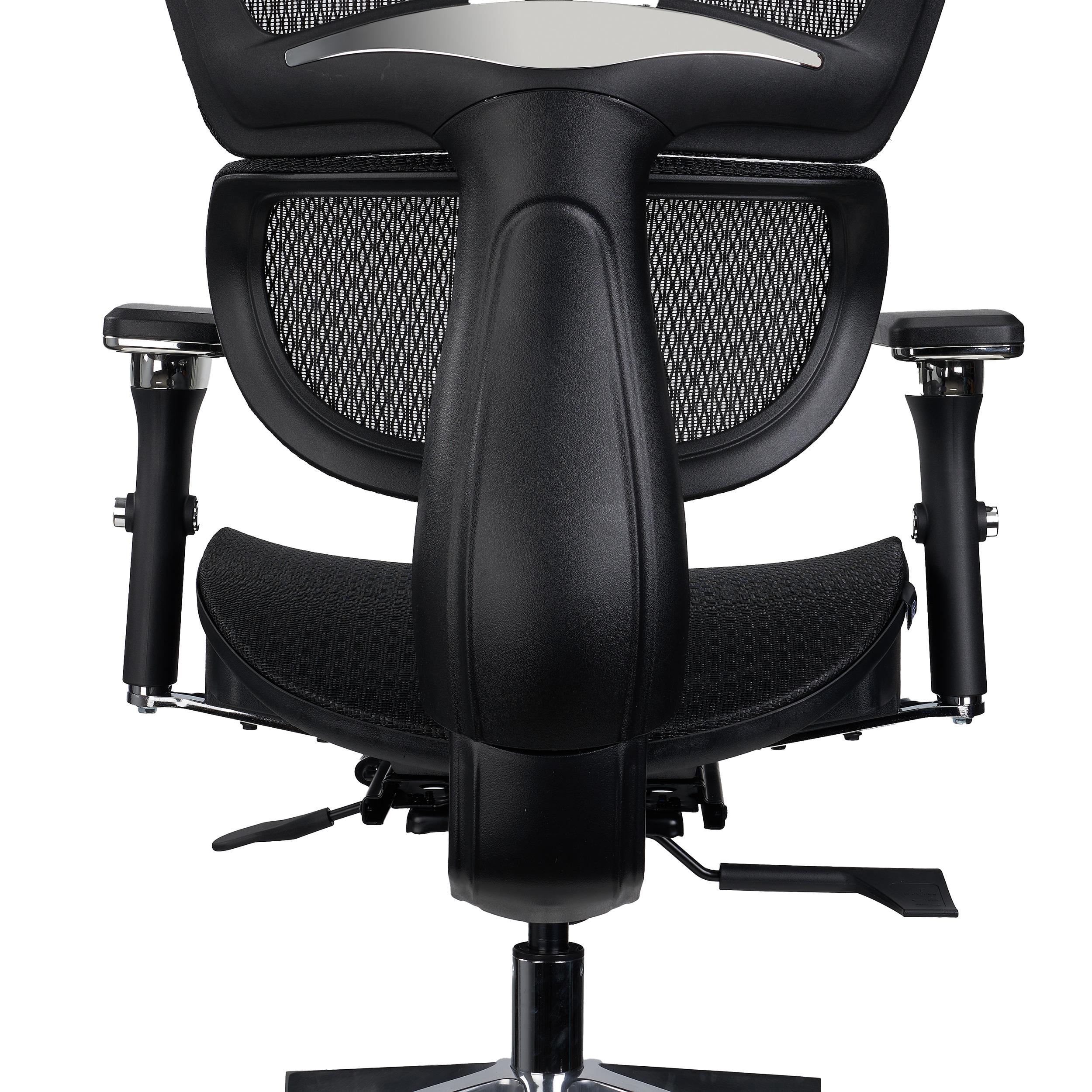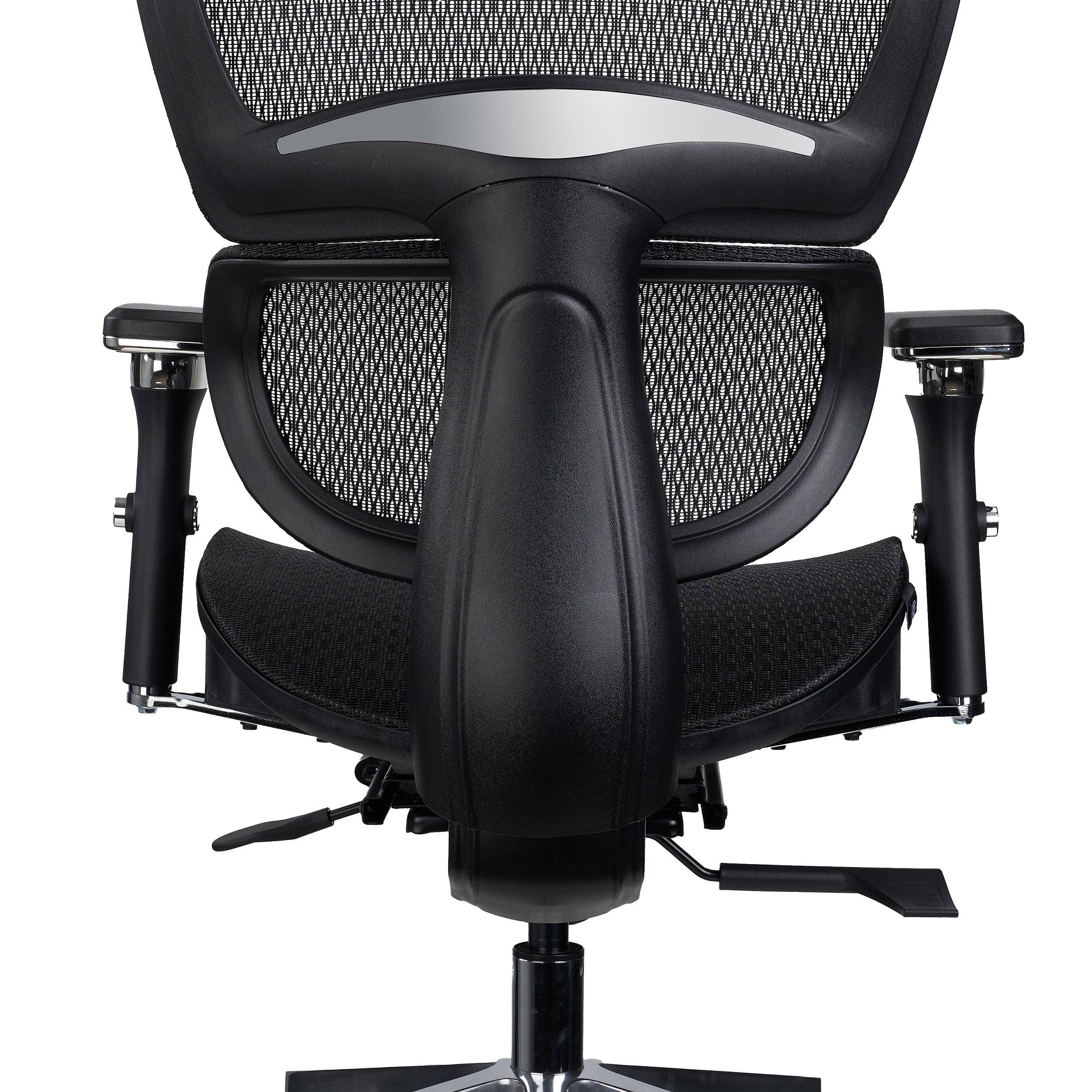 El avanzado diseño del respaldo es fruto de la más avanzada tecnología e investigación. Tiene forma totalmente ergonómica, está tapizado en malla transpirable e incluye un soporte lumbar adaptable. En este caso es además ajustable en altura, característica poco habitual y con la que se consigue una posición perfecta independientemente de la talla del usuario.