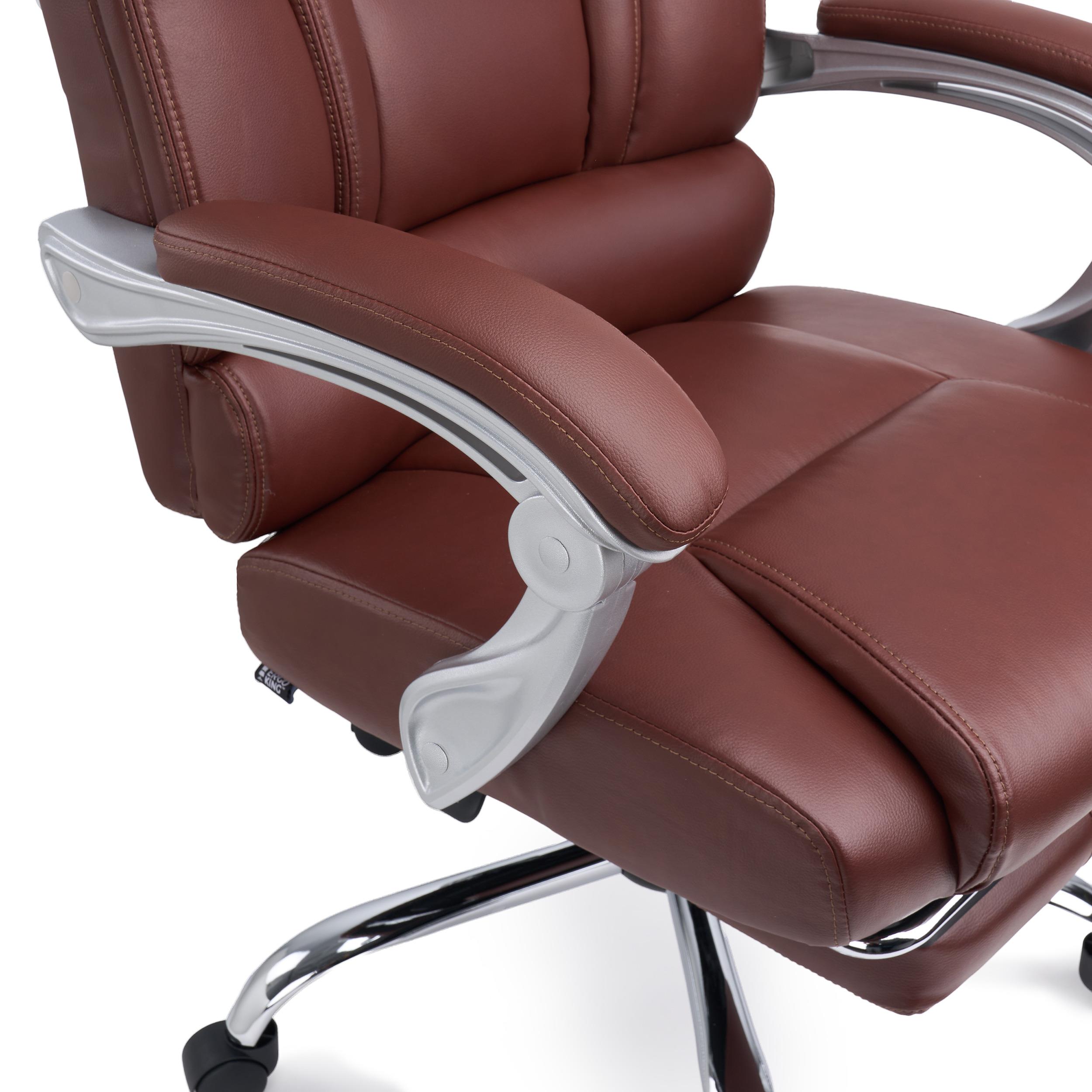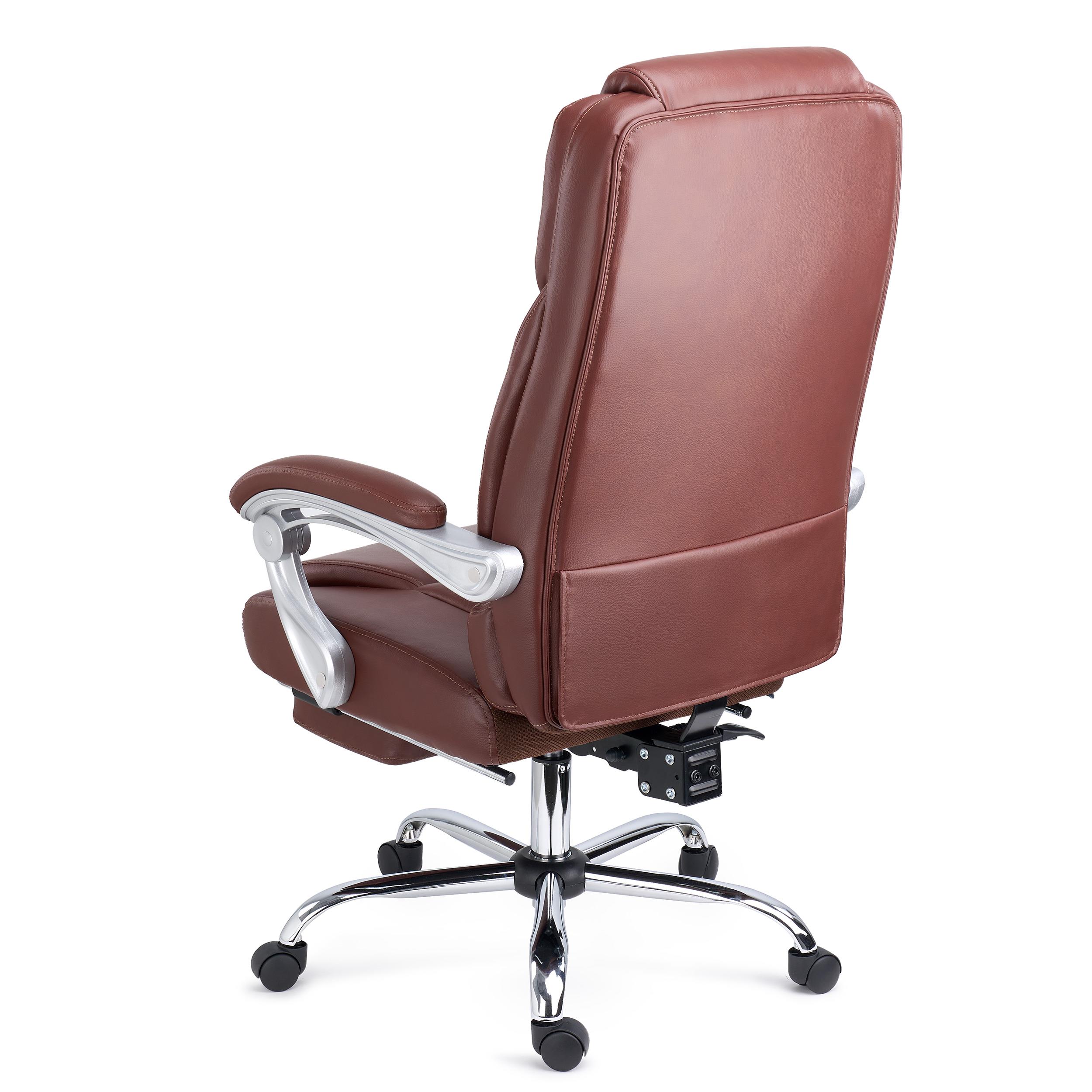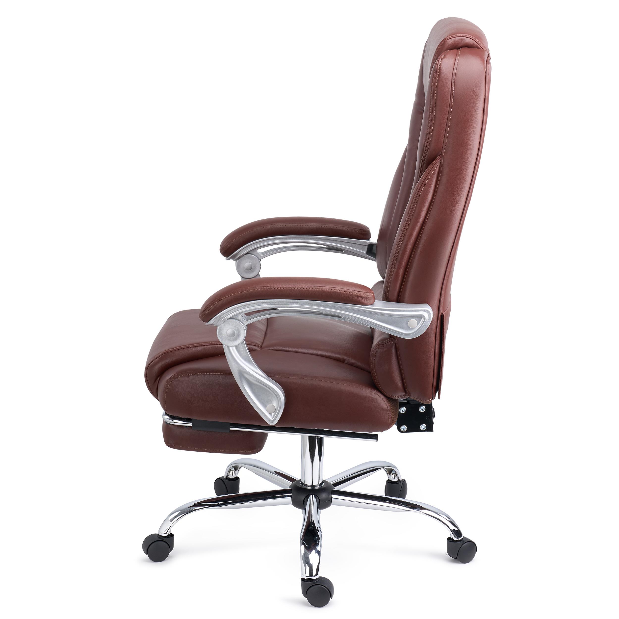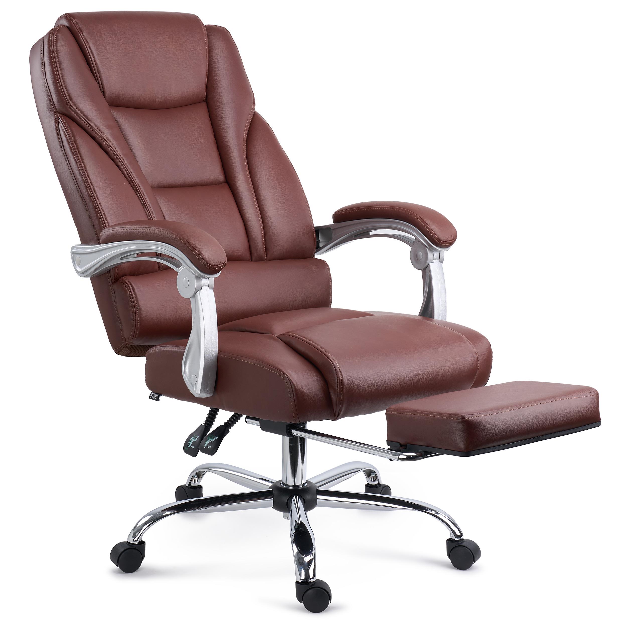 DEMO# Sillón de Oficina COMODITY, Grueso Acolchado, Reposapiés Extensible, en Piel Marrón