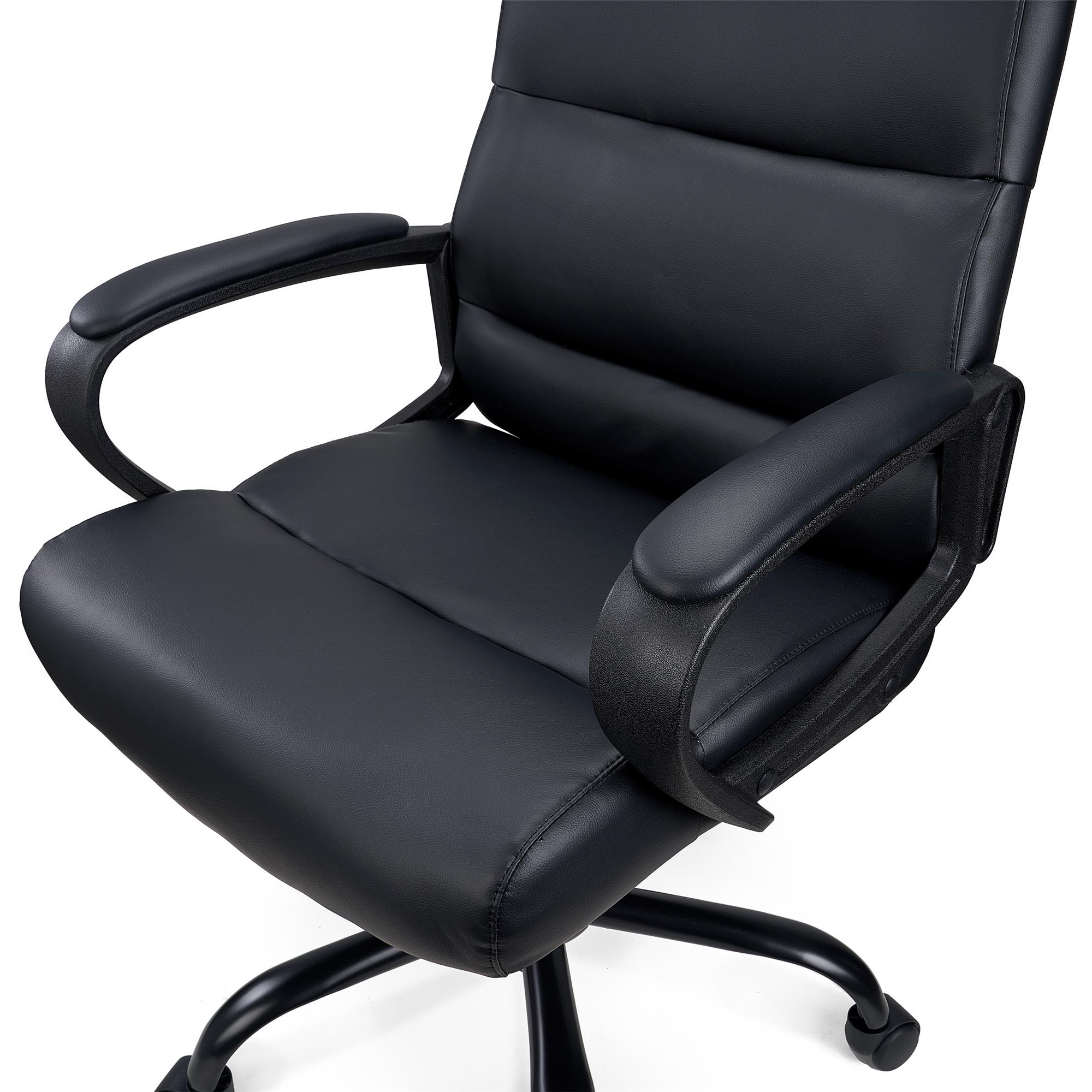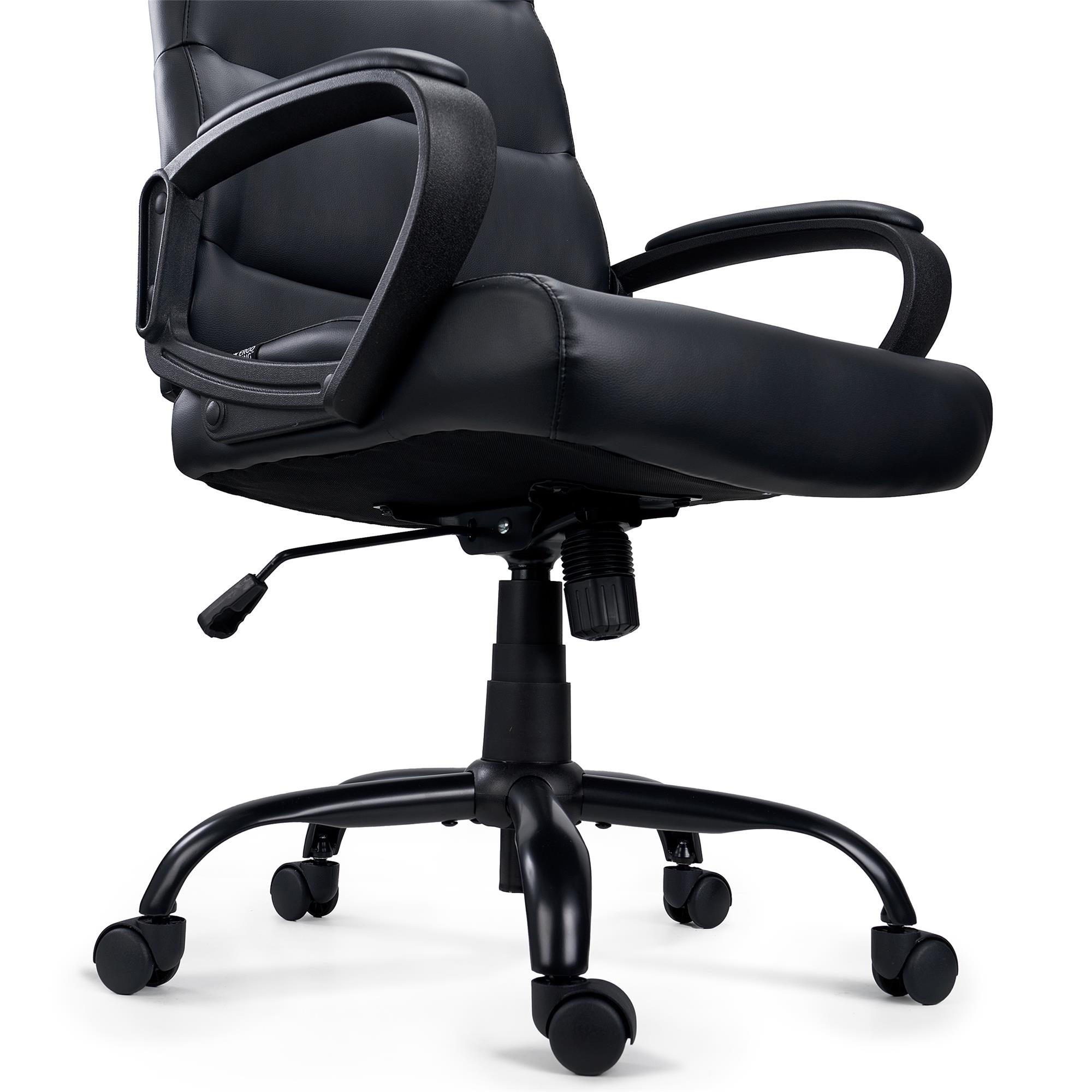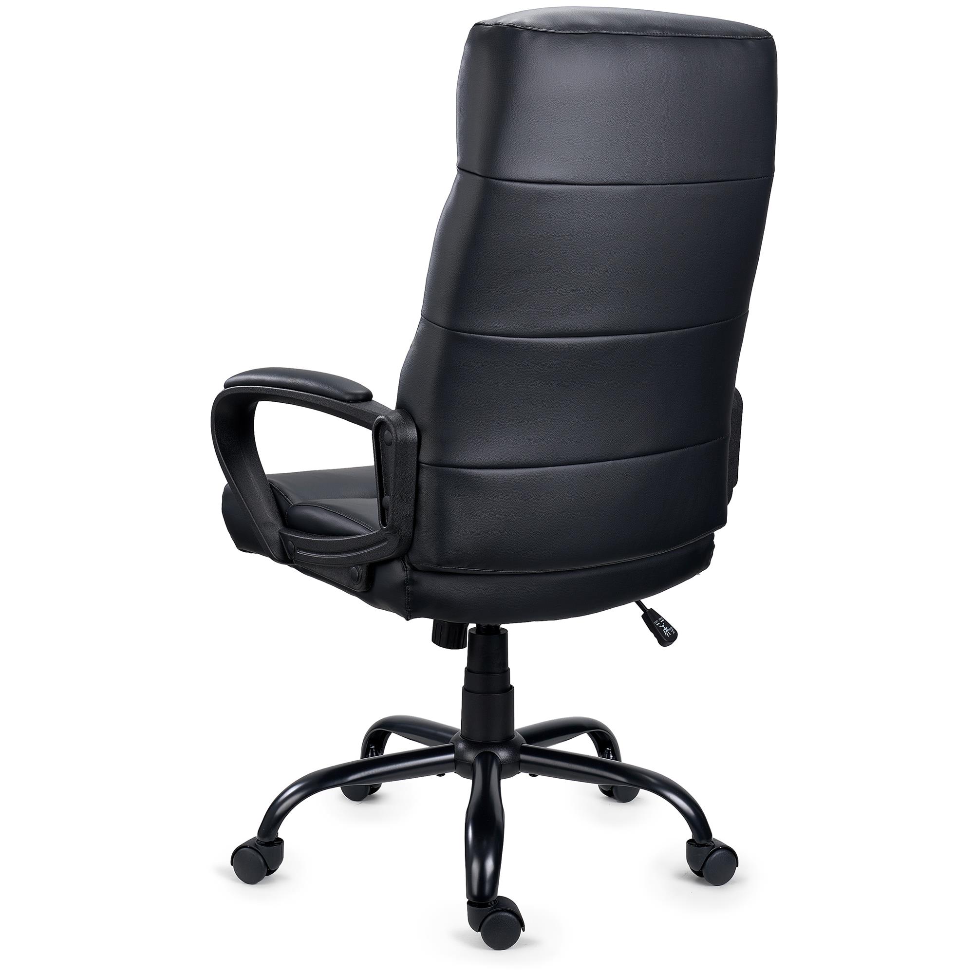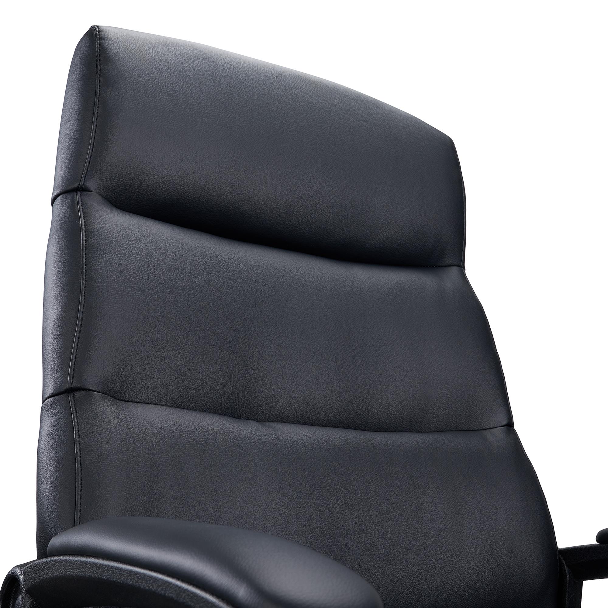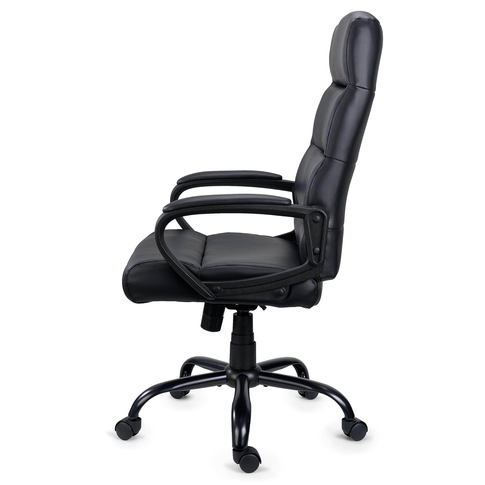 DEMO# Sillón de Oficina HUGO, Diseño Elegante, Confortable, Base Metálica, en Piel Negra