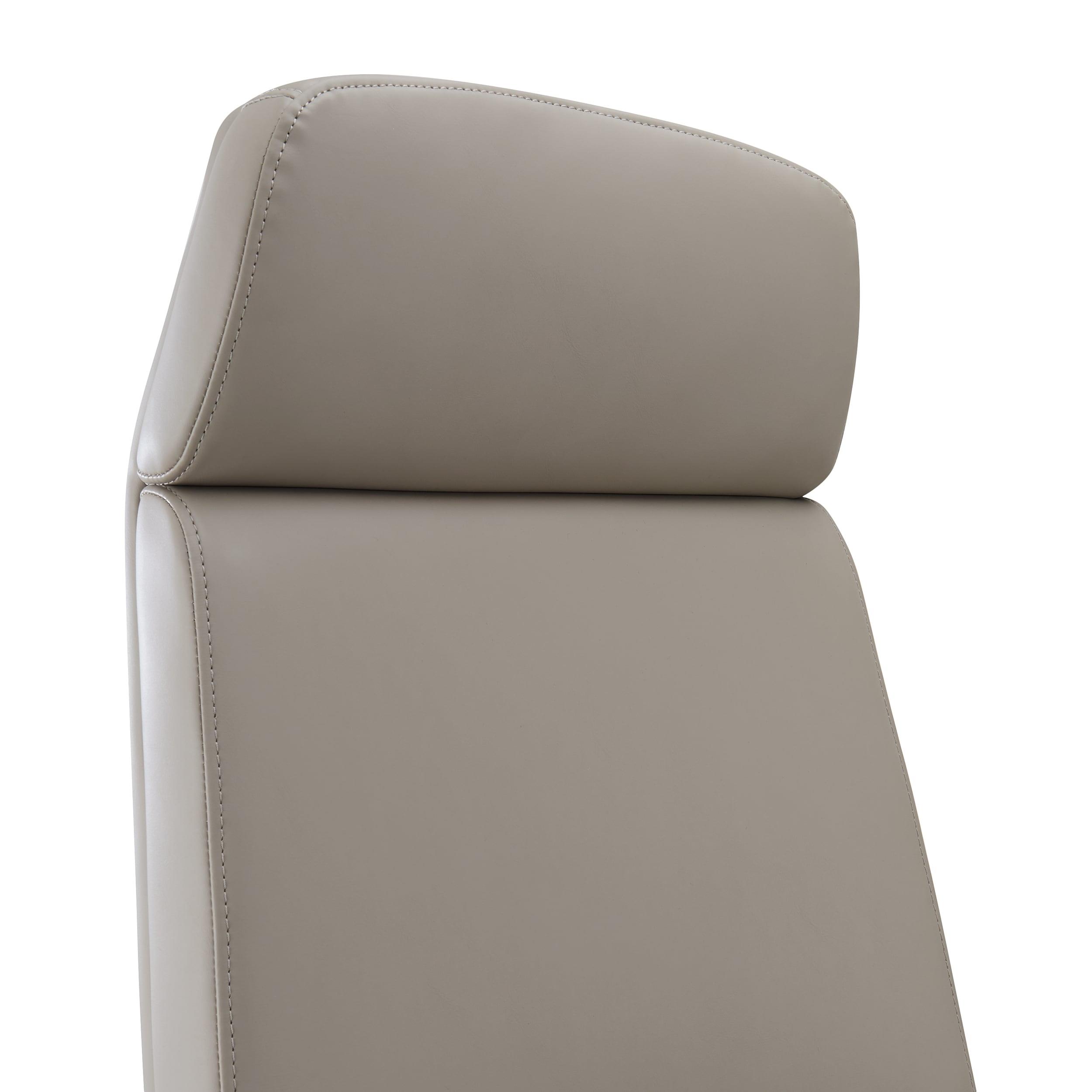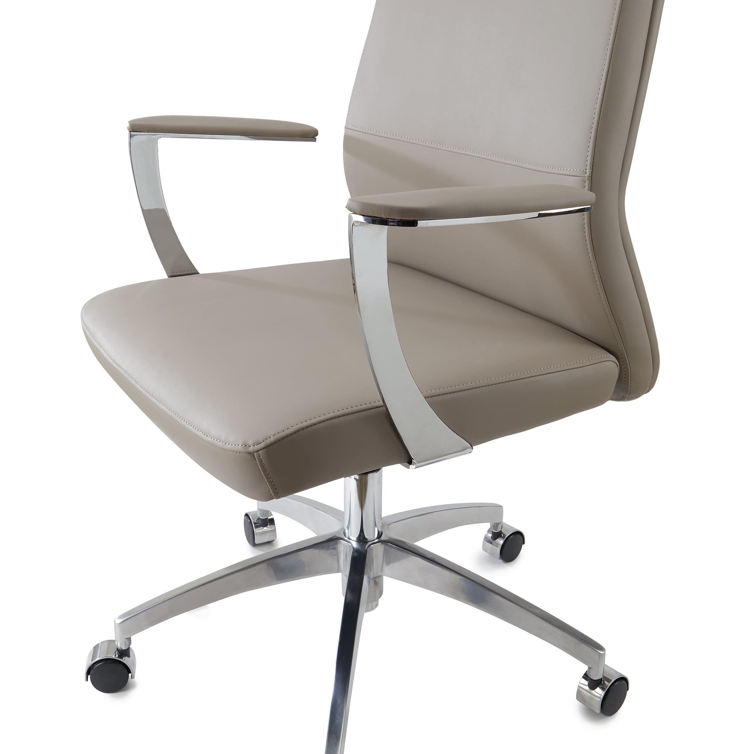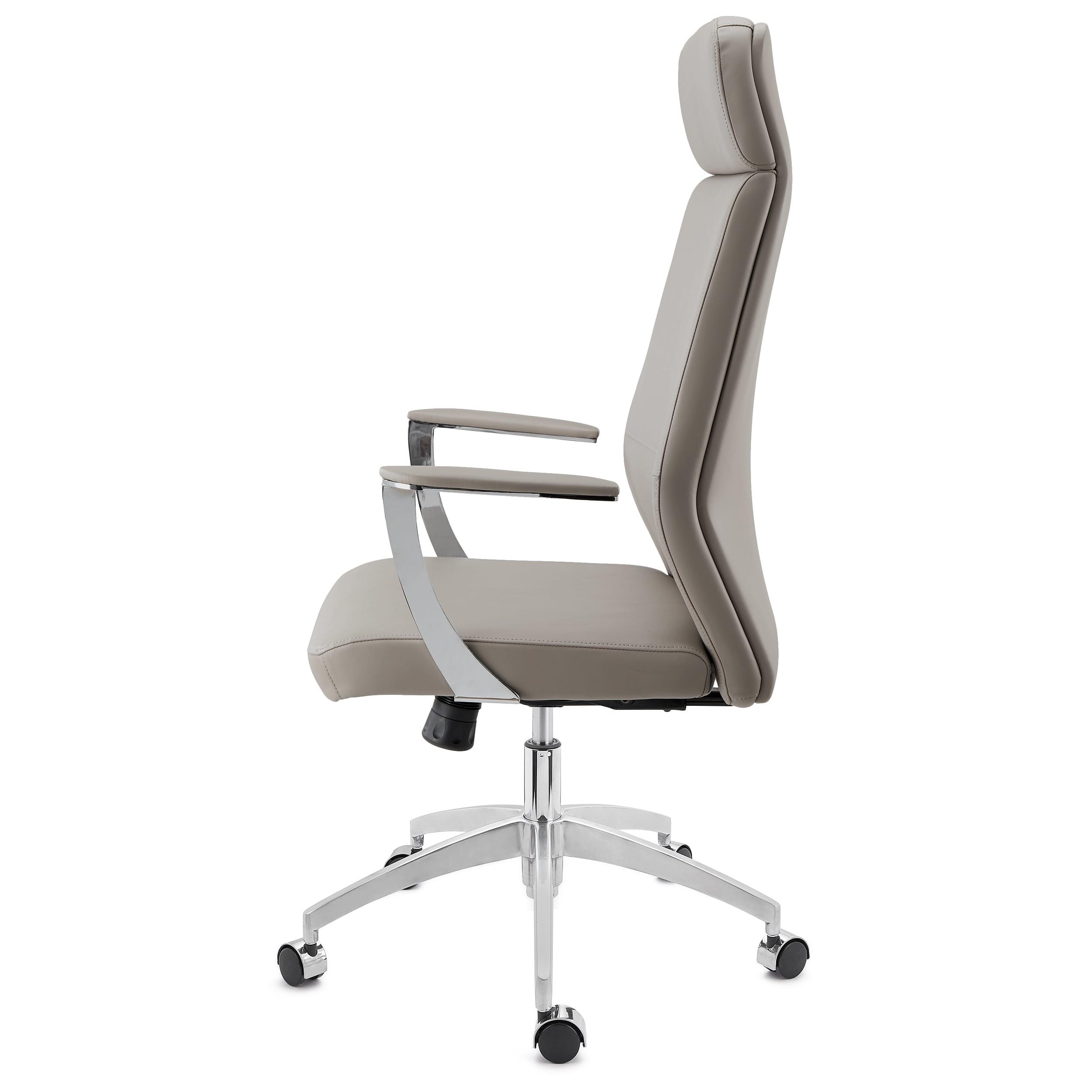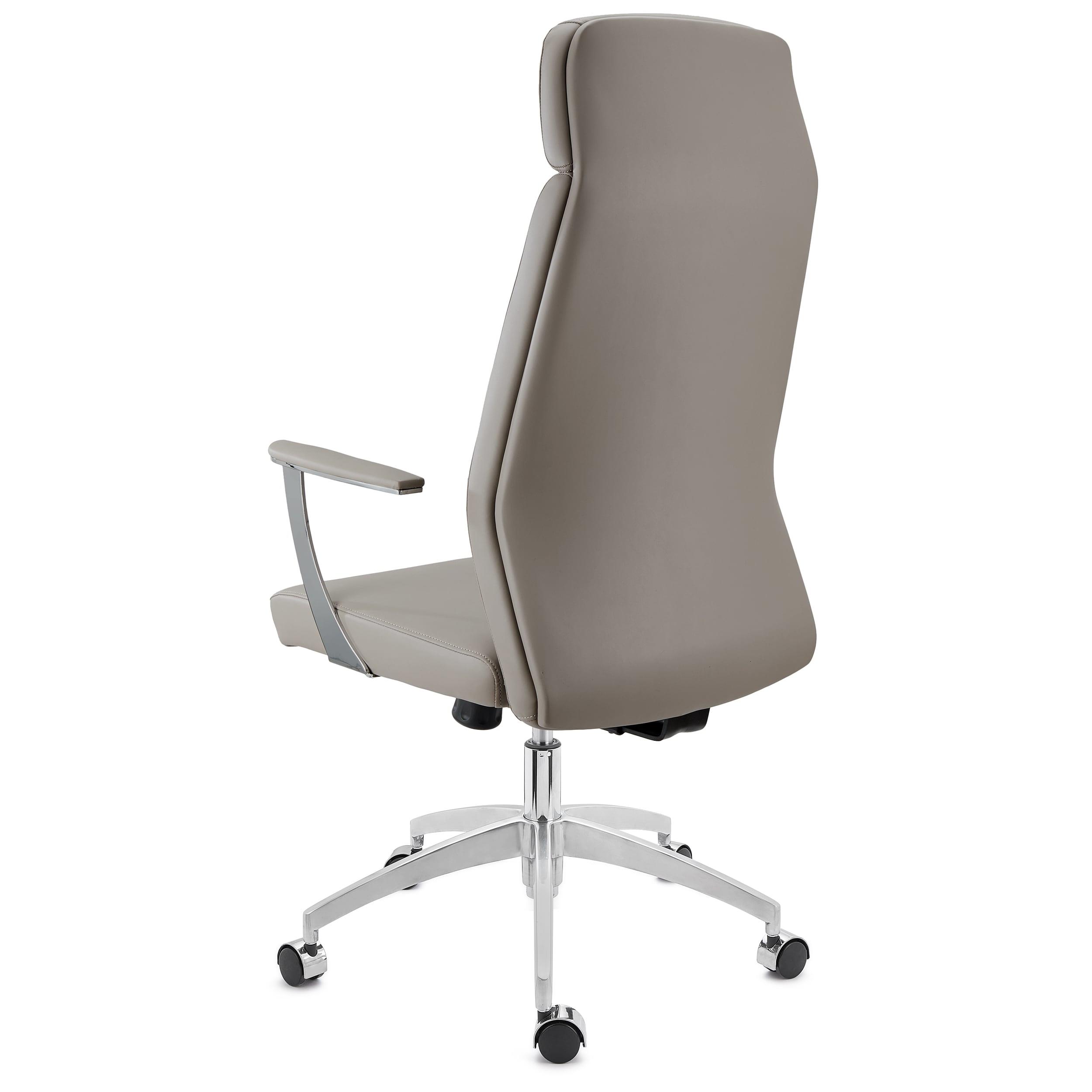A nivel estético, los reposabrazos de diseño en aluminio, con almohadilla tapizada en su parte superior, son las piezas estrella de este atractivo sillón. La base está realizada en este mismo material, al igual que la estructura de las ruedas, aptas para todo tipo de suelos.