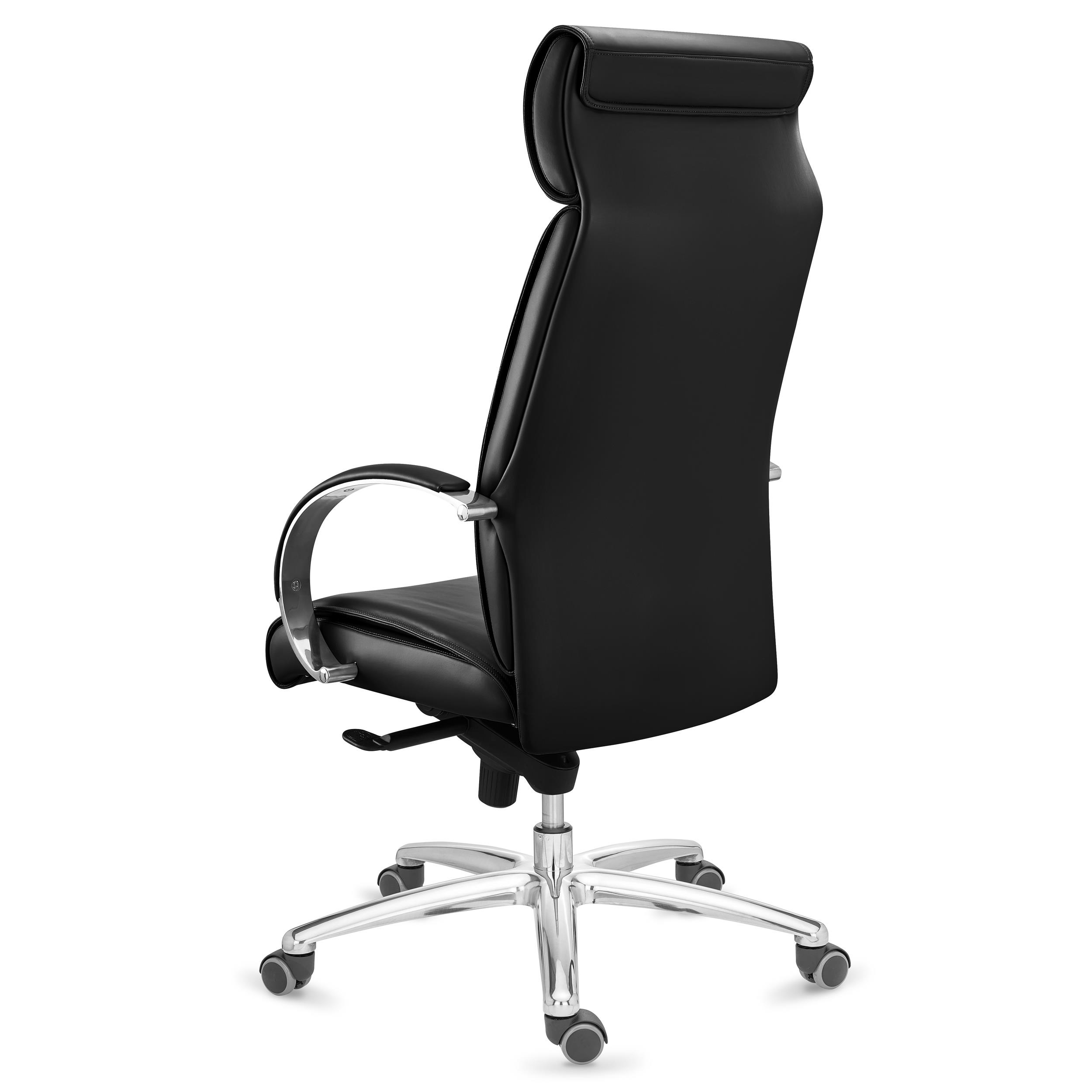 • Brazos en aluminio, con acolchado en piel