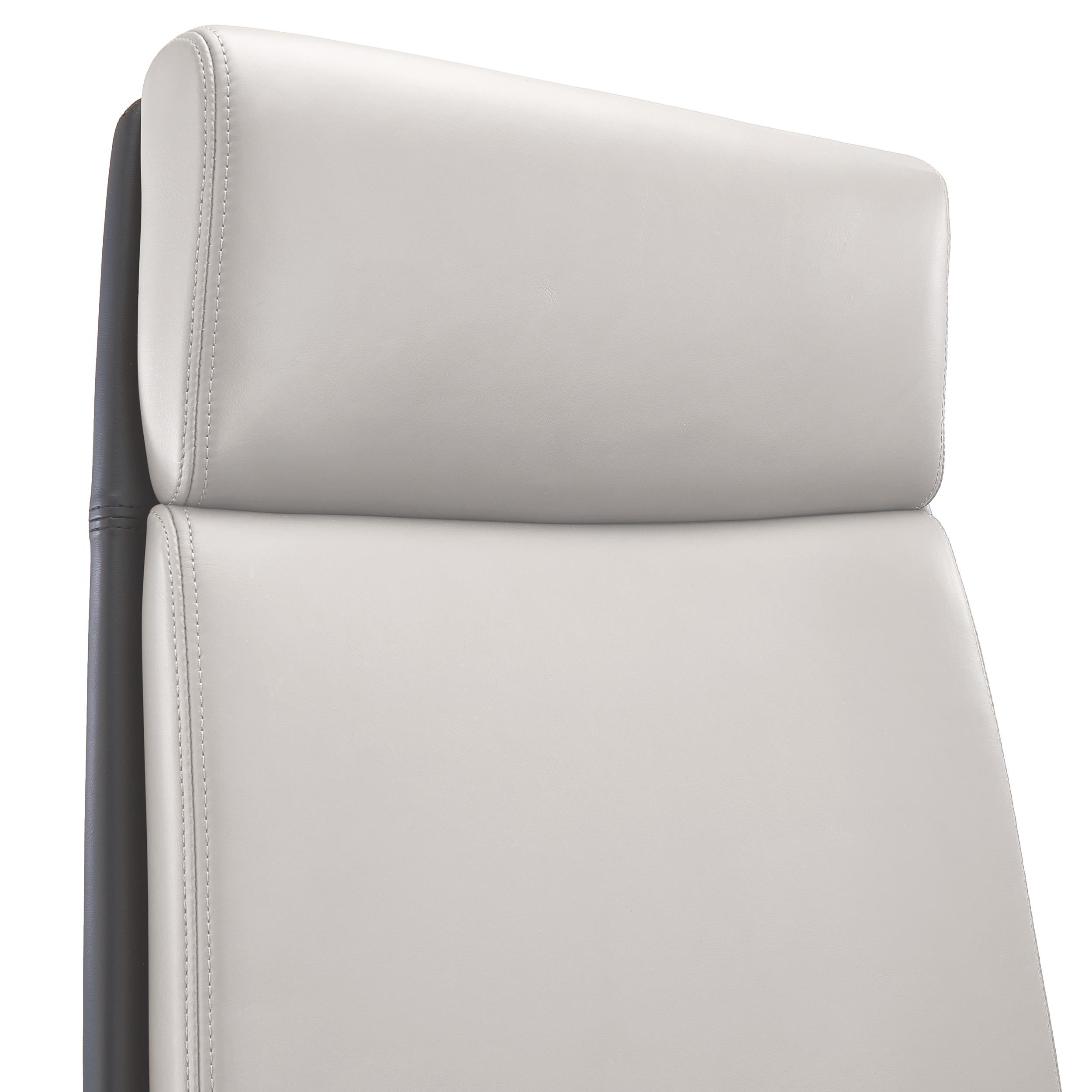 • Asiento y reposacabezas en cuero, respaldo sintético